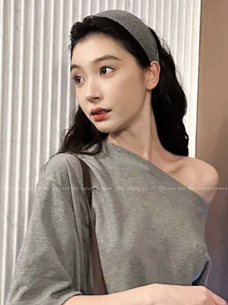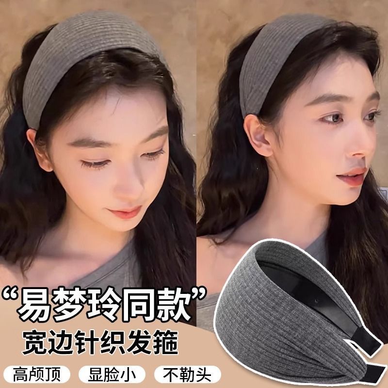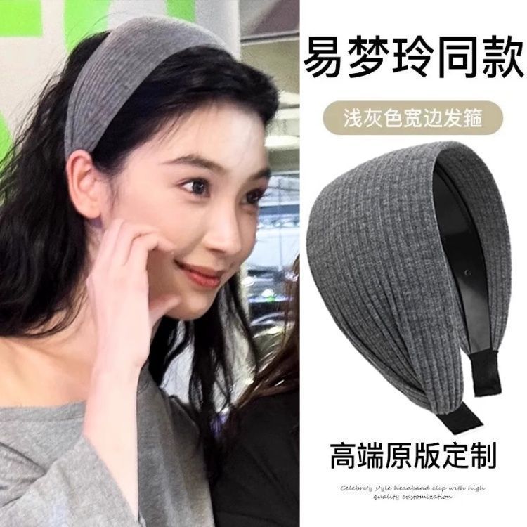 易梦玲同款法式灰色宽边发箍慵懒发带高颅顶显脸小头包脸发饰头箍