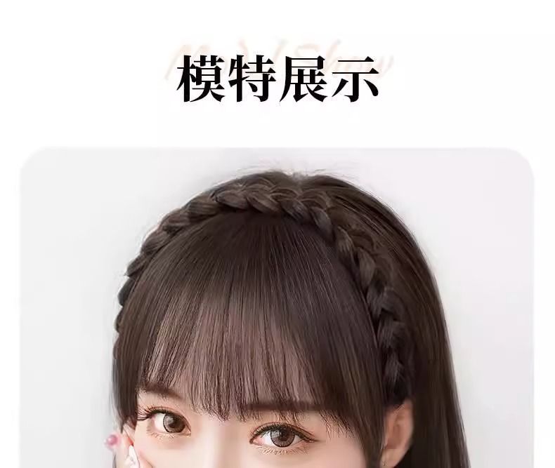 网红发箍女鱼骨辫刘海一体发箍高颅顶仿真发辫子2024年新款发卡
