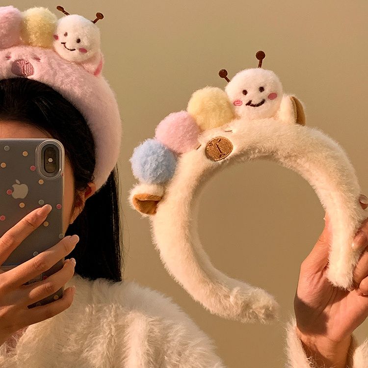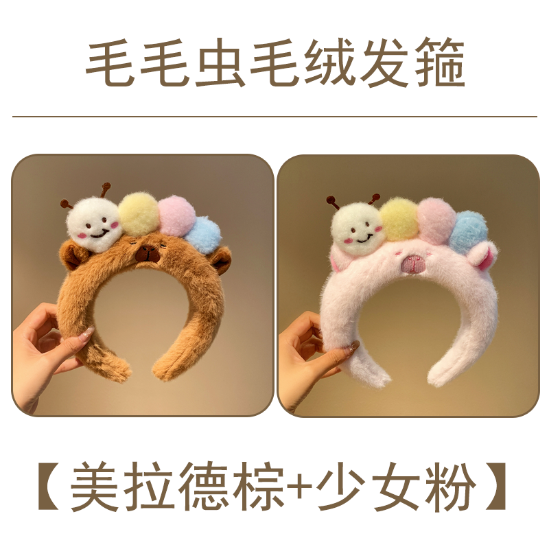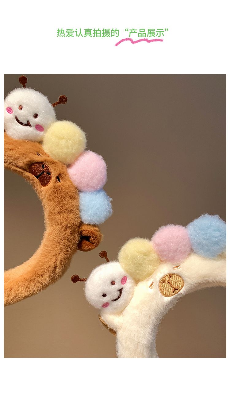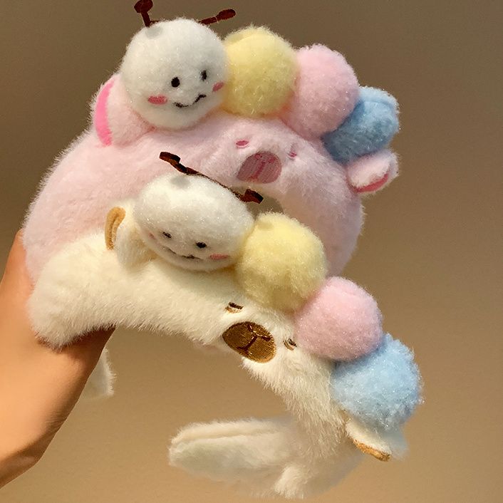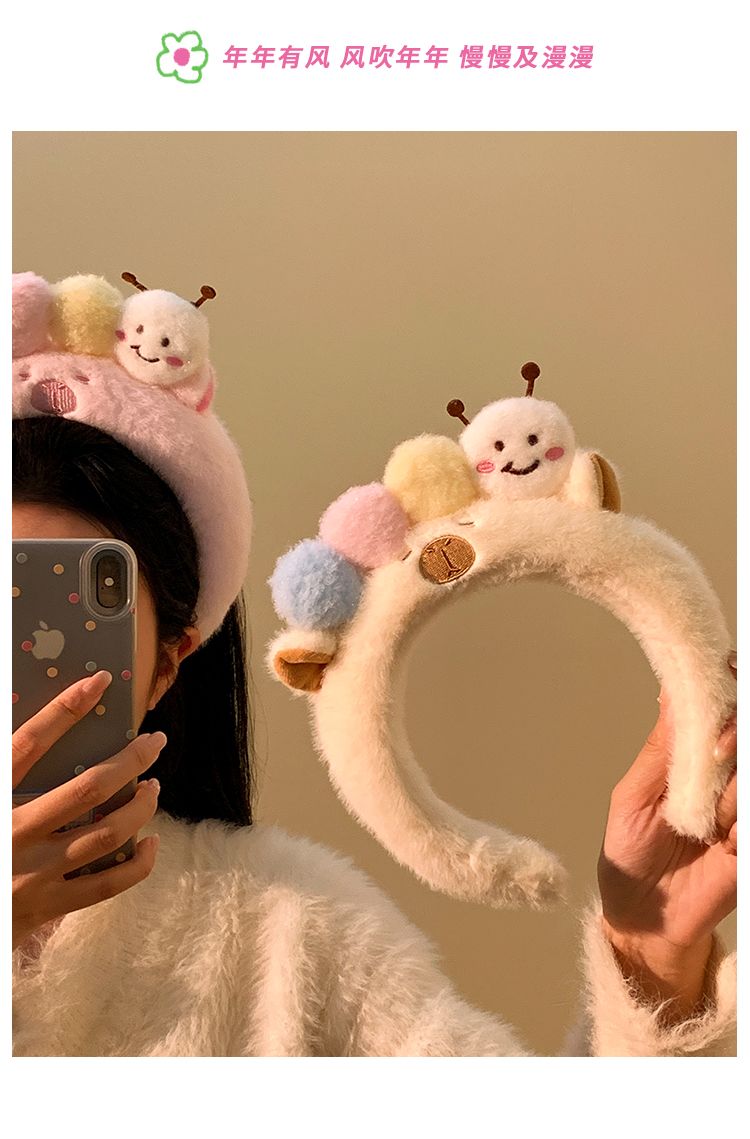 可爱毛毛虫毛绒发箍女款洗脸化妆专用卡通头箍不勒头秋冬发卡发饰