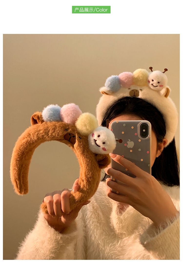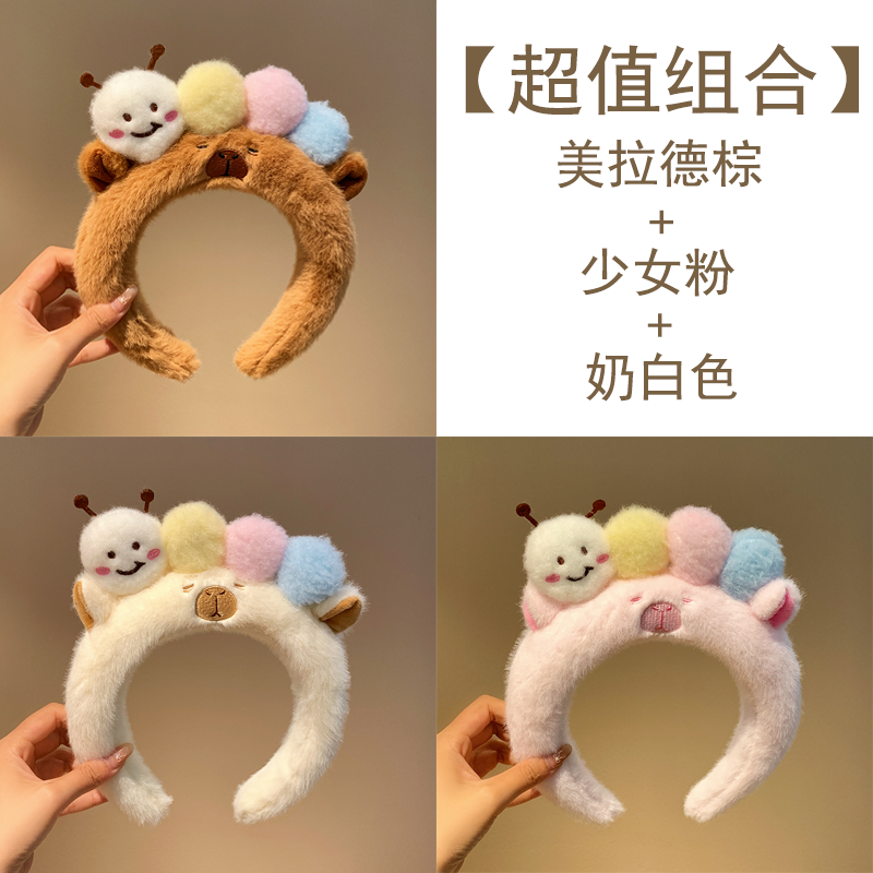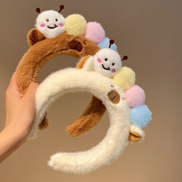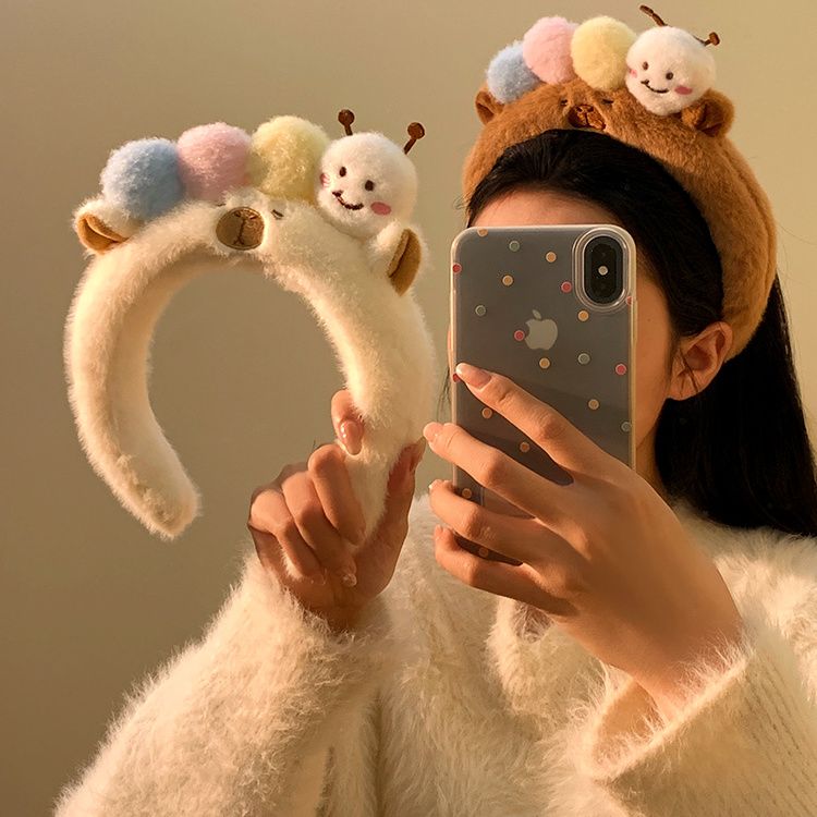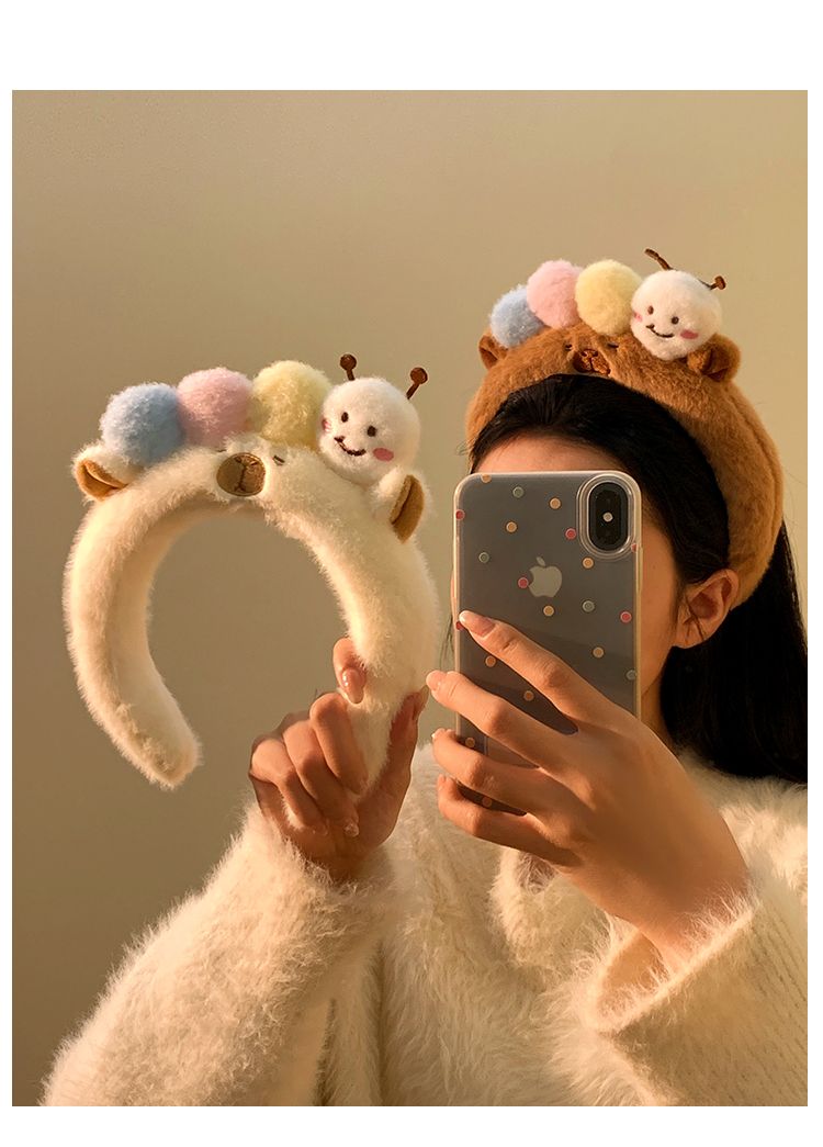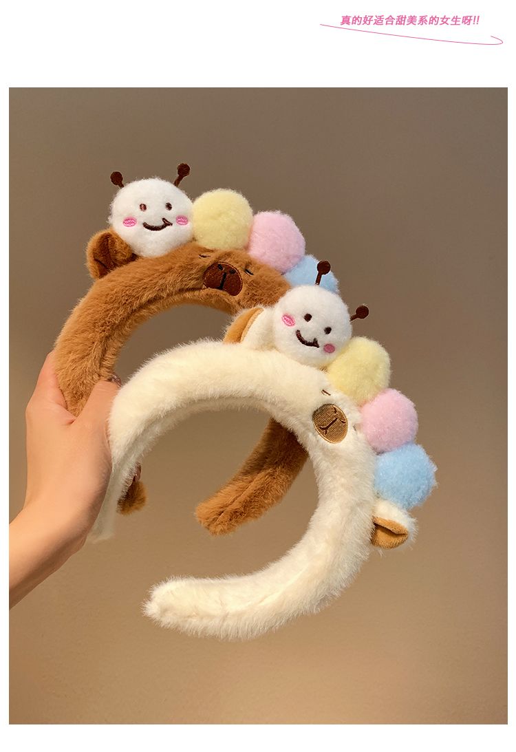 可爱毛毛虫毛绒发箍女款洗脸化妆专用卡通头箍不勒头秋冬发卡发饰