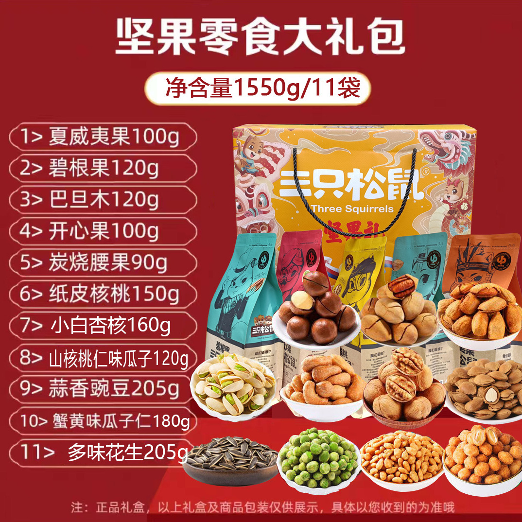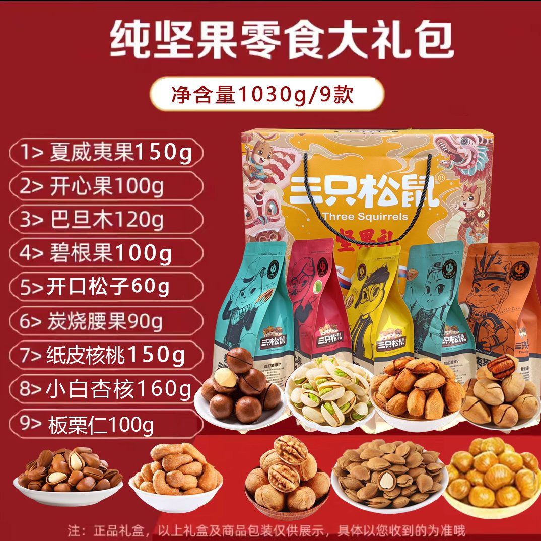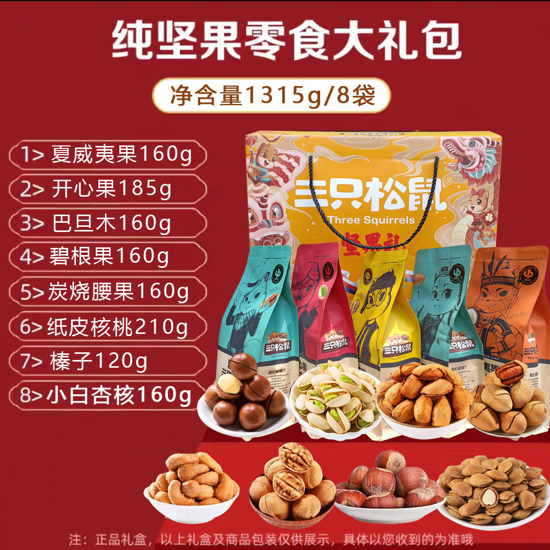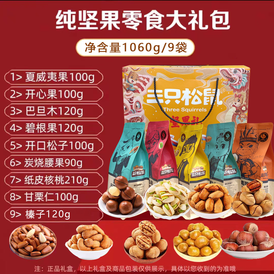 三只松鼠坚果礼盒大礼包夏威夷碧根果开心果松子多款袋装礼盒可选