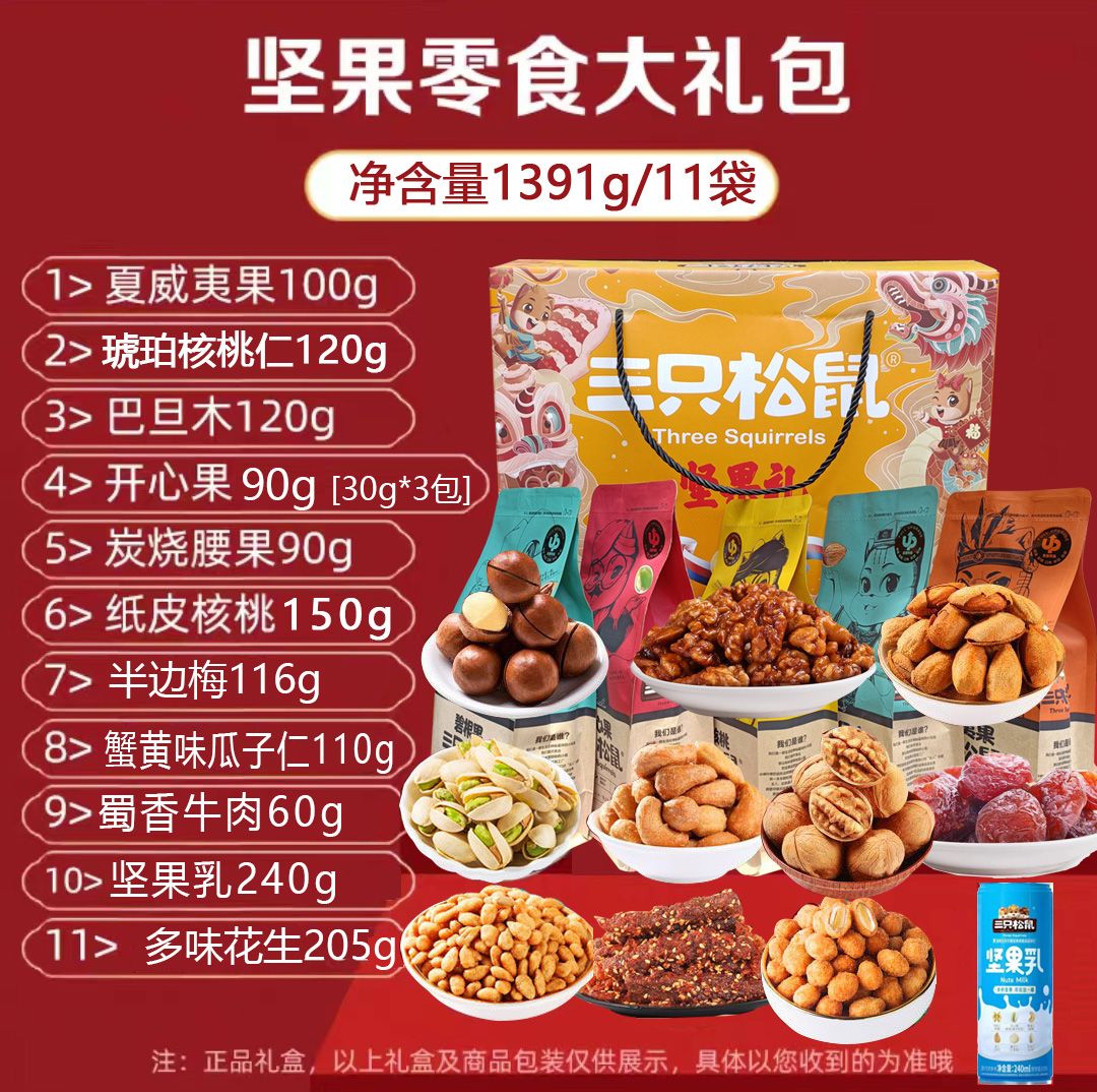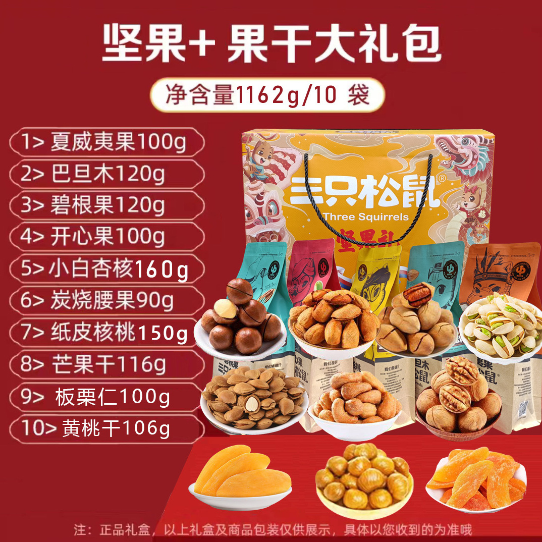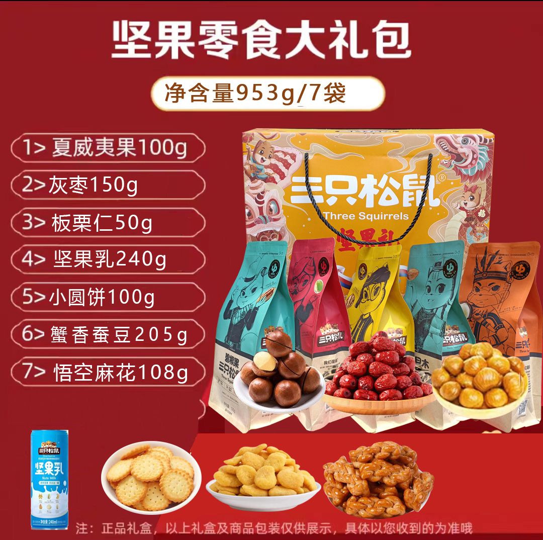 三只松鼠坚果礼盒大礼包夏威夷碧根果开心果松子多款袋装礼盒可选