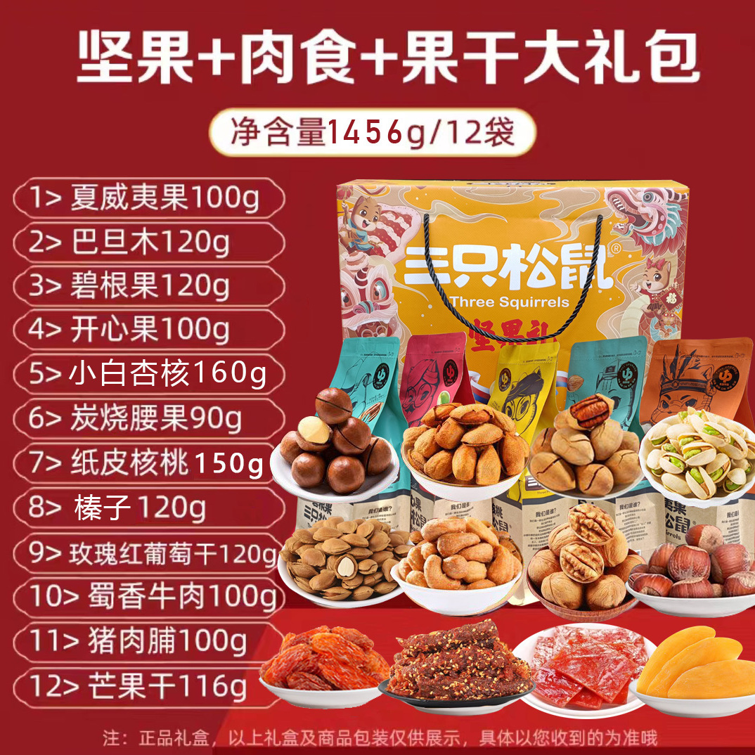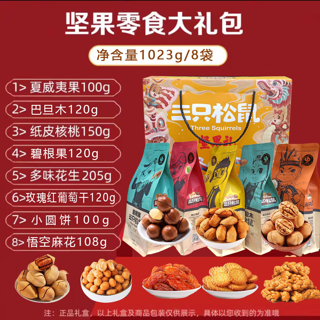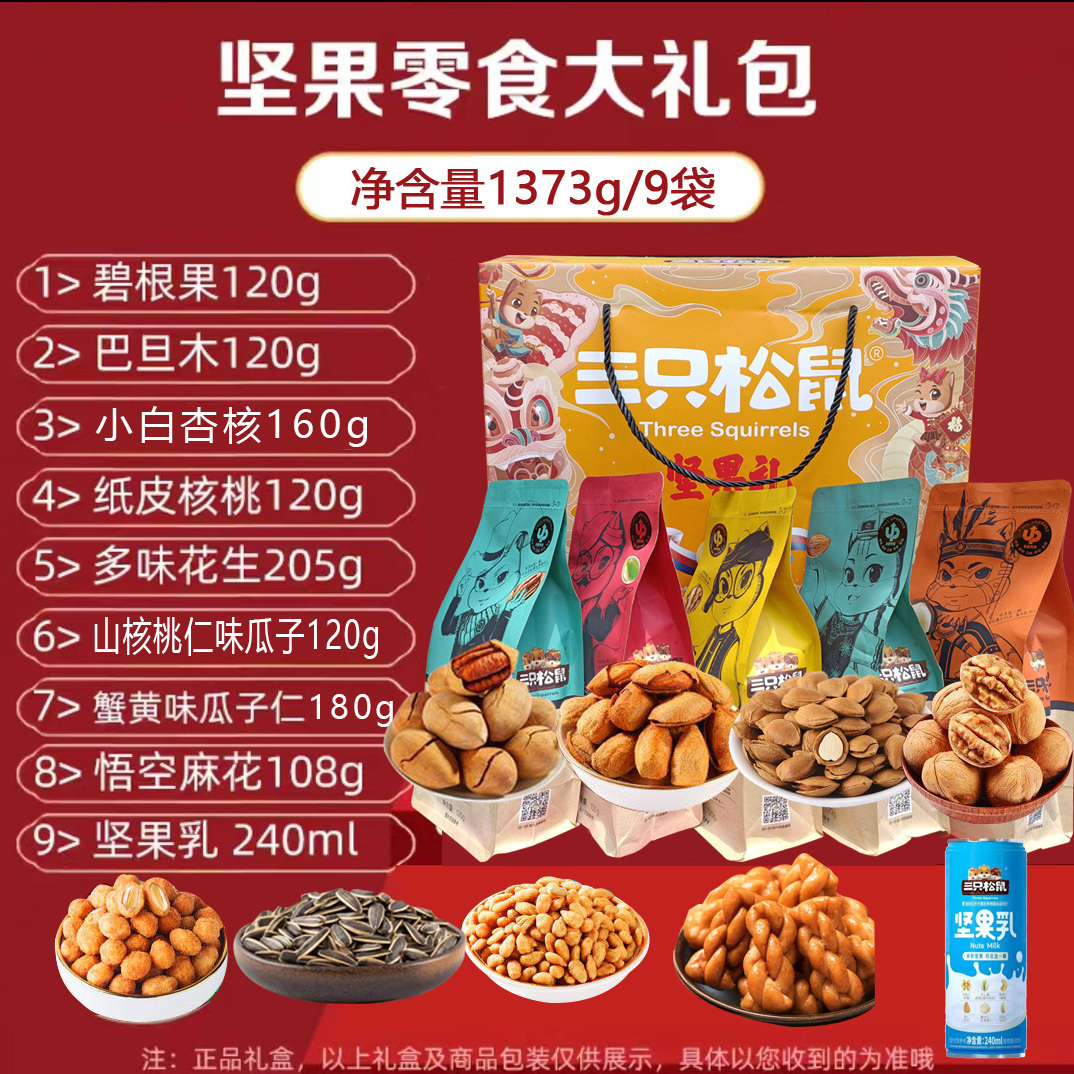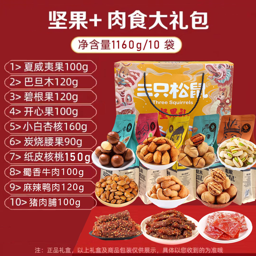 三只松鼠坚果礼盒大礼包夏威夷碧根果开心果松子多款袋装礼盒可选