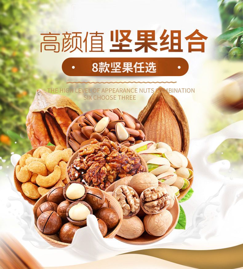 | gift box (luxury big bag 8 bags of pure nuts package 1340g)(礼盒装(豪华大袋装8袋纯坚果套餐1340g)) | USD $34.86 | 999999 piece available |