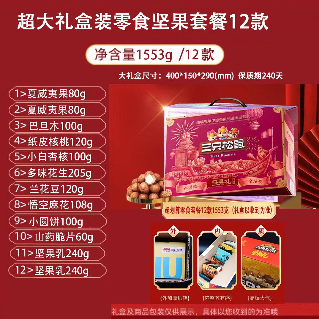 | super large gift box: 13 snacks and nuts package 2025g(超大礼盒装:13款零食坚果套餐2025g) | USD $34.86 | 999999 piece available |