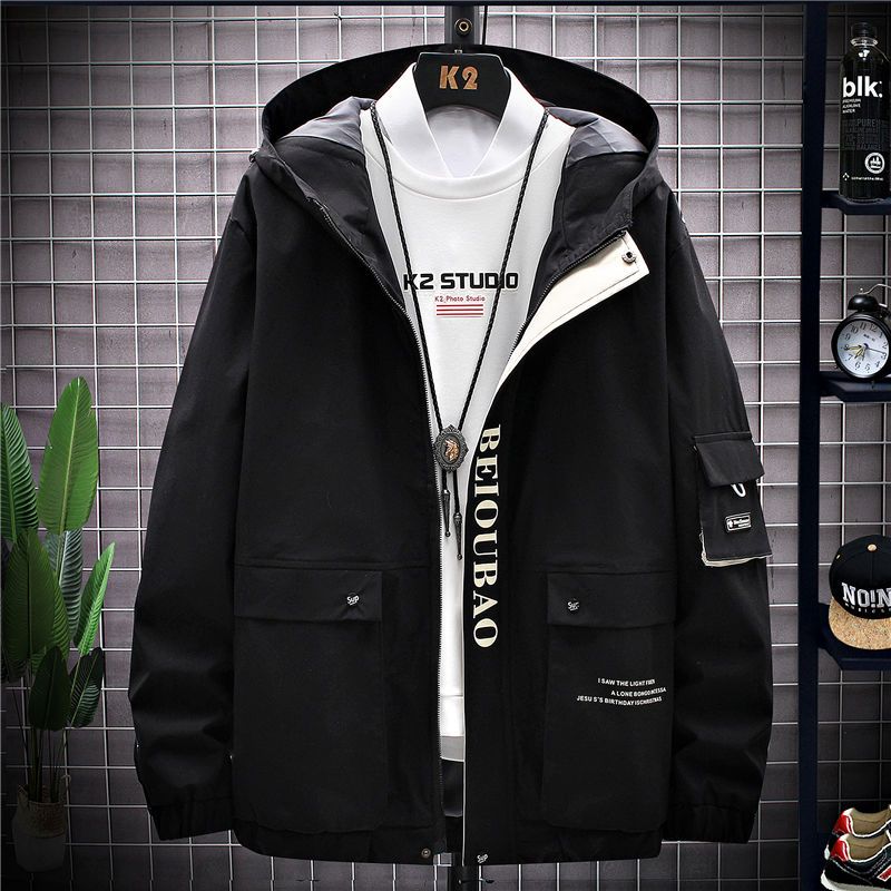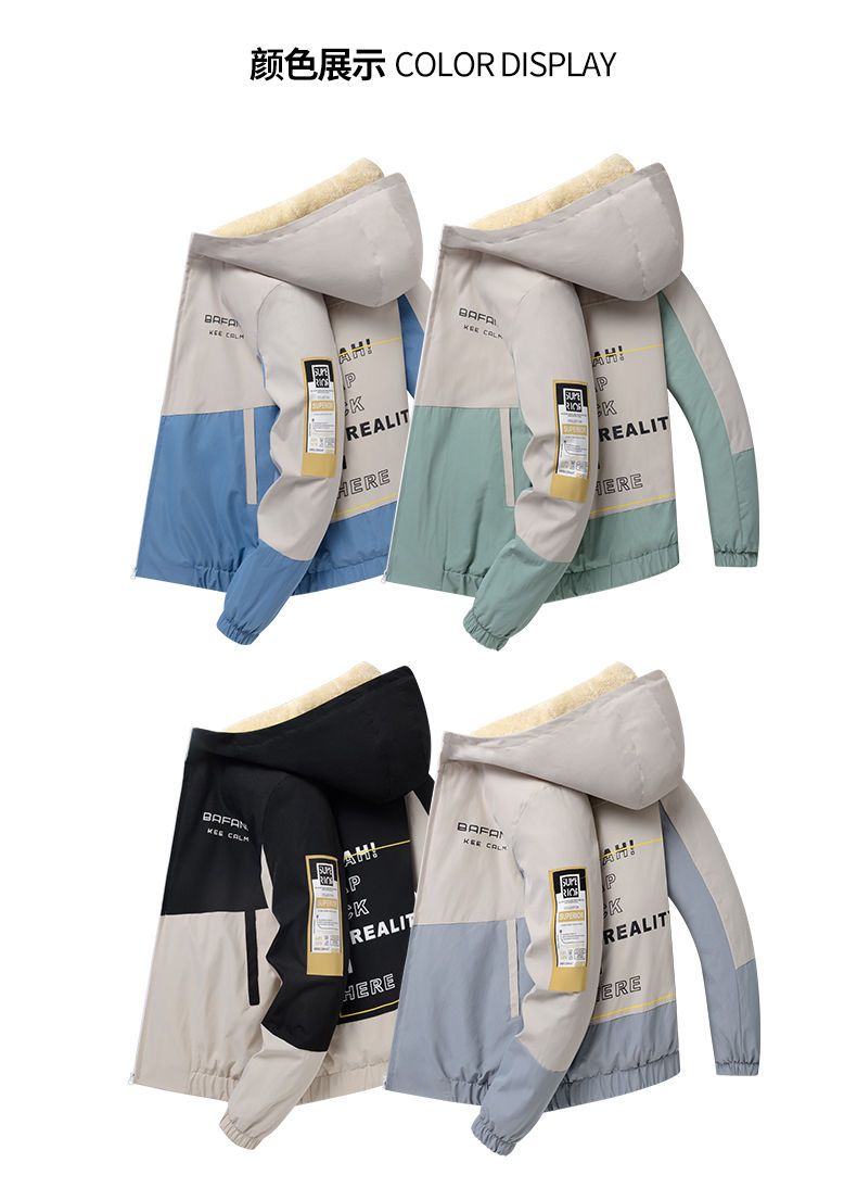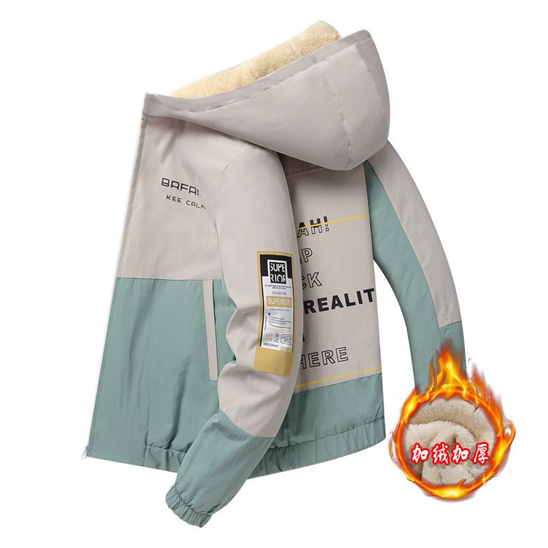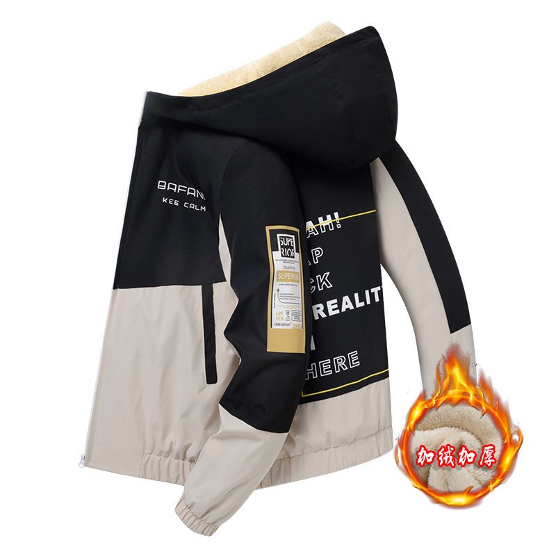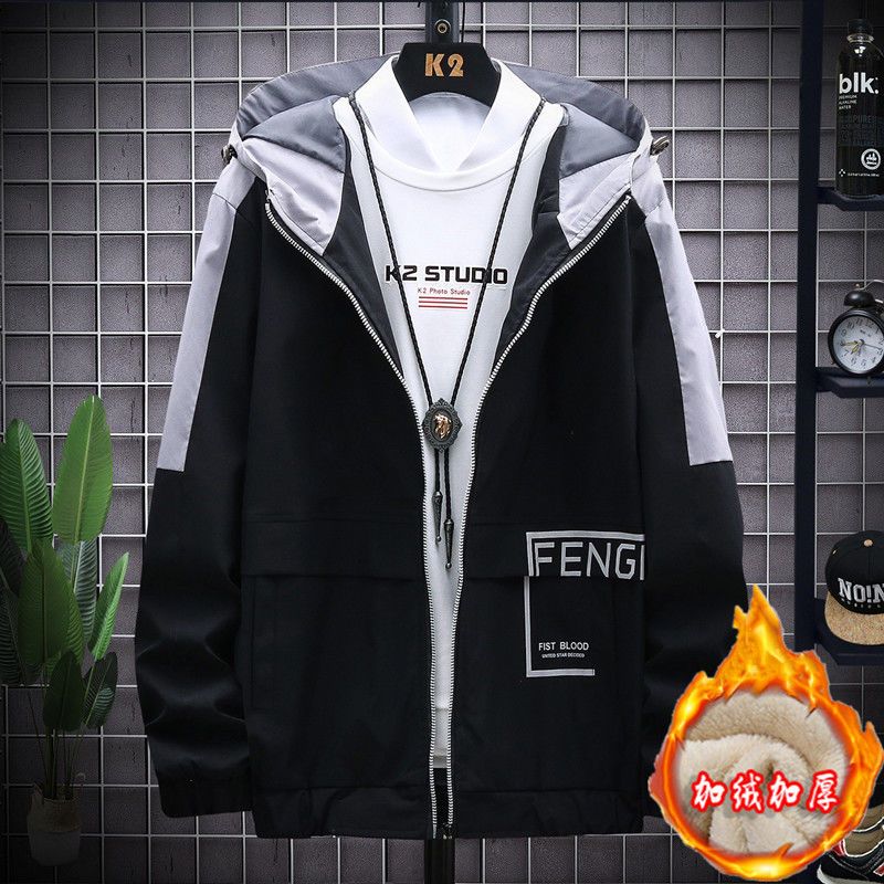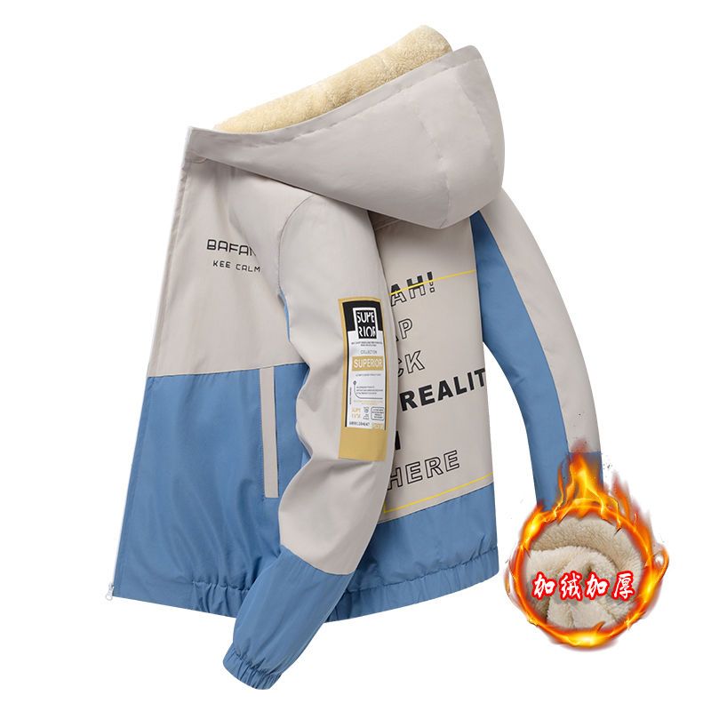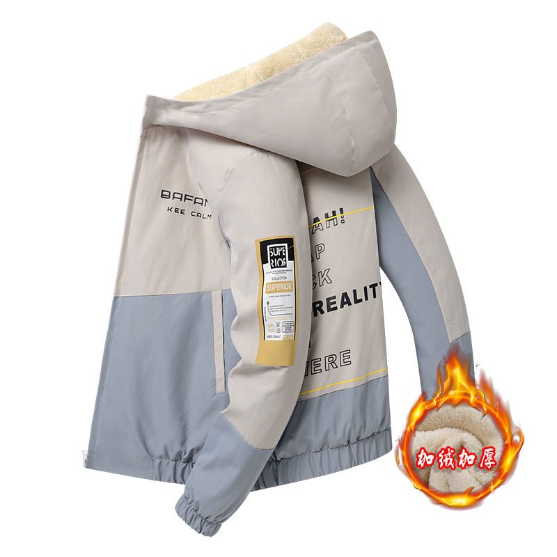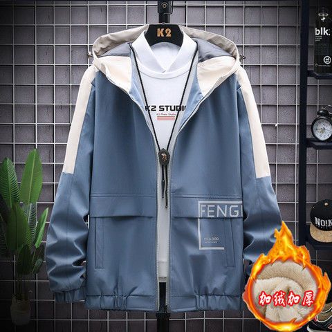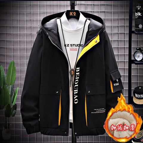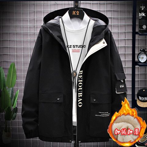 常规/加绒加厚秋冬季男士连帽夹克宽松韩版工装外套青年潮流上衣