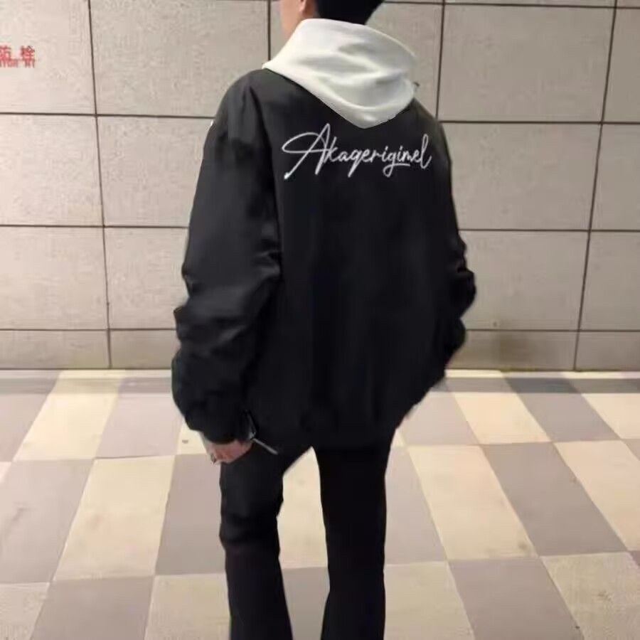 新款春秋季2025印花外套潮牌高街棒球服韩版飞行员复古美式夹克男