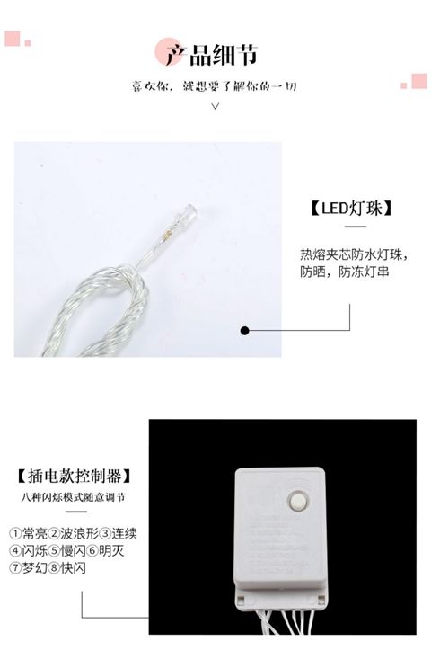 | [remote control plug-in type] 10 m 100 lights(【遥控插电款】10米100灯) | USD $1.98 | 999999 piece available |