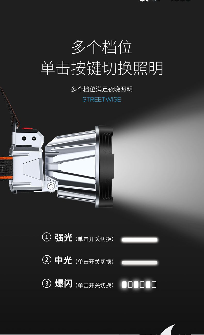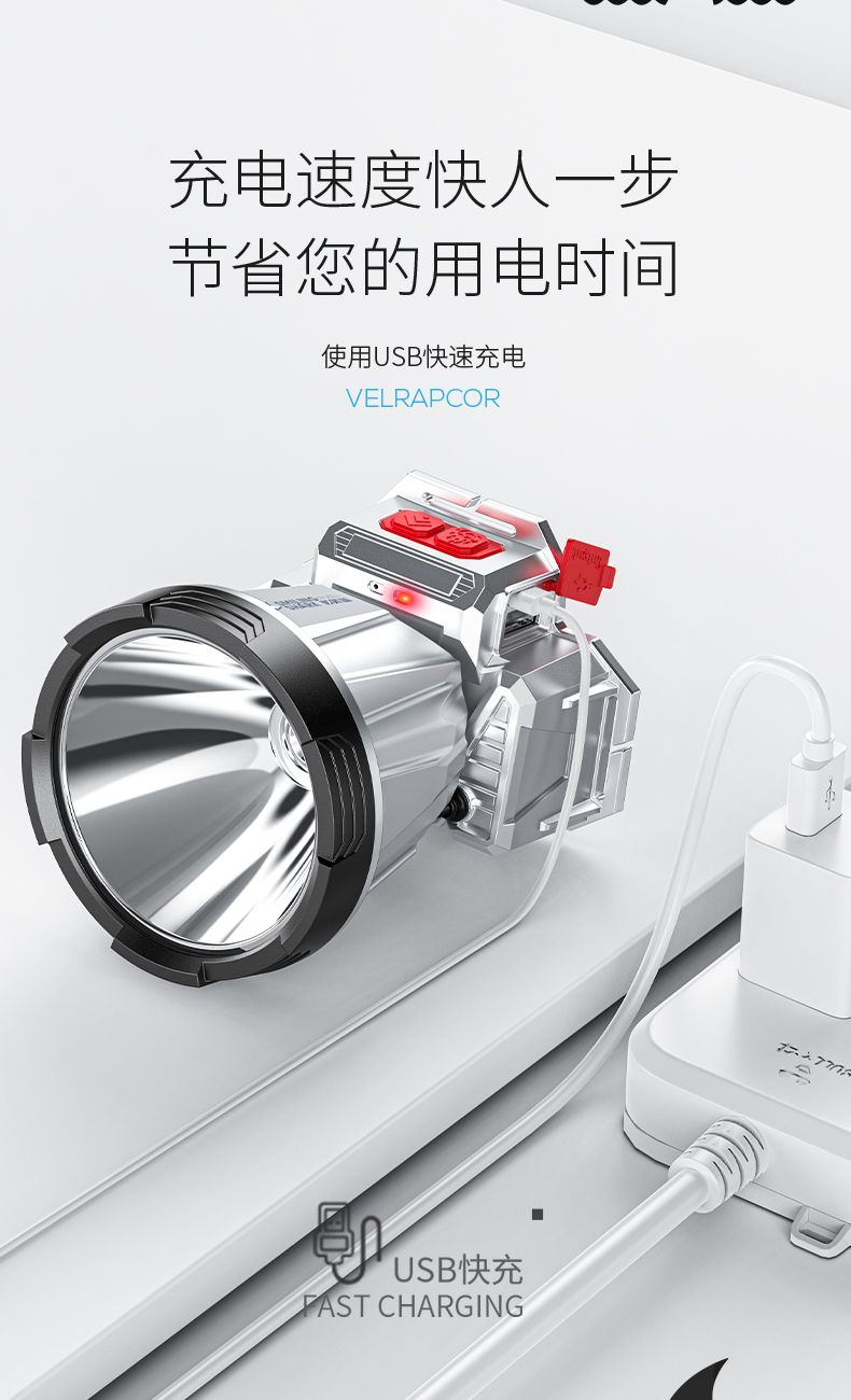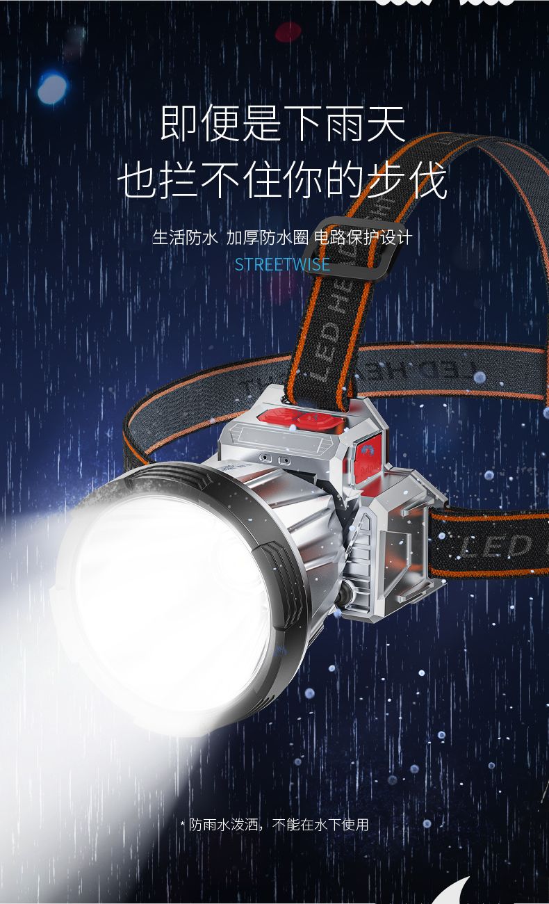 矿灯感应夜钓头灯头戴式强光充电超亮钓鱼专用超长续航锂电手电筒