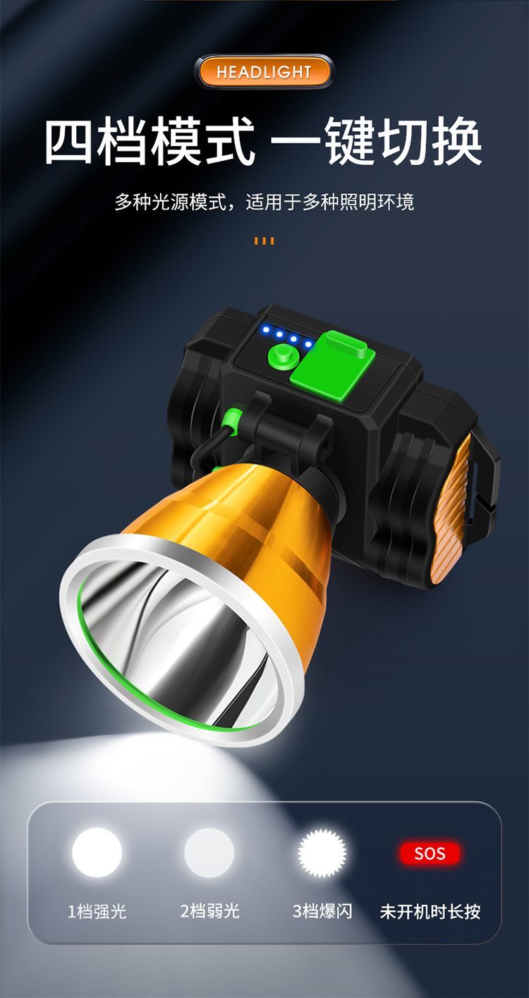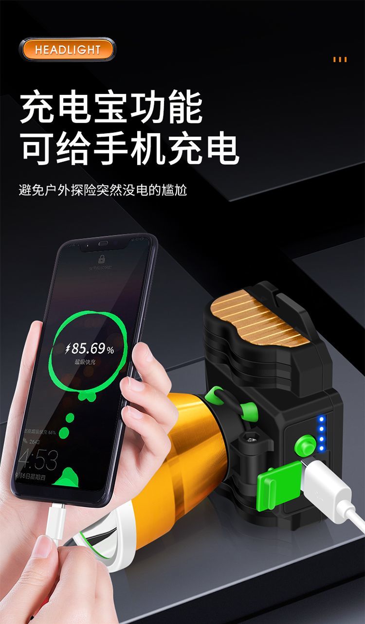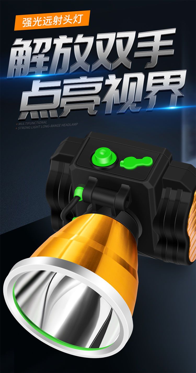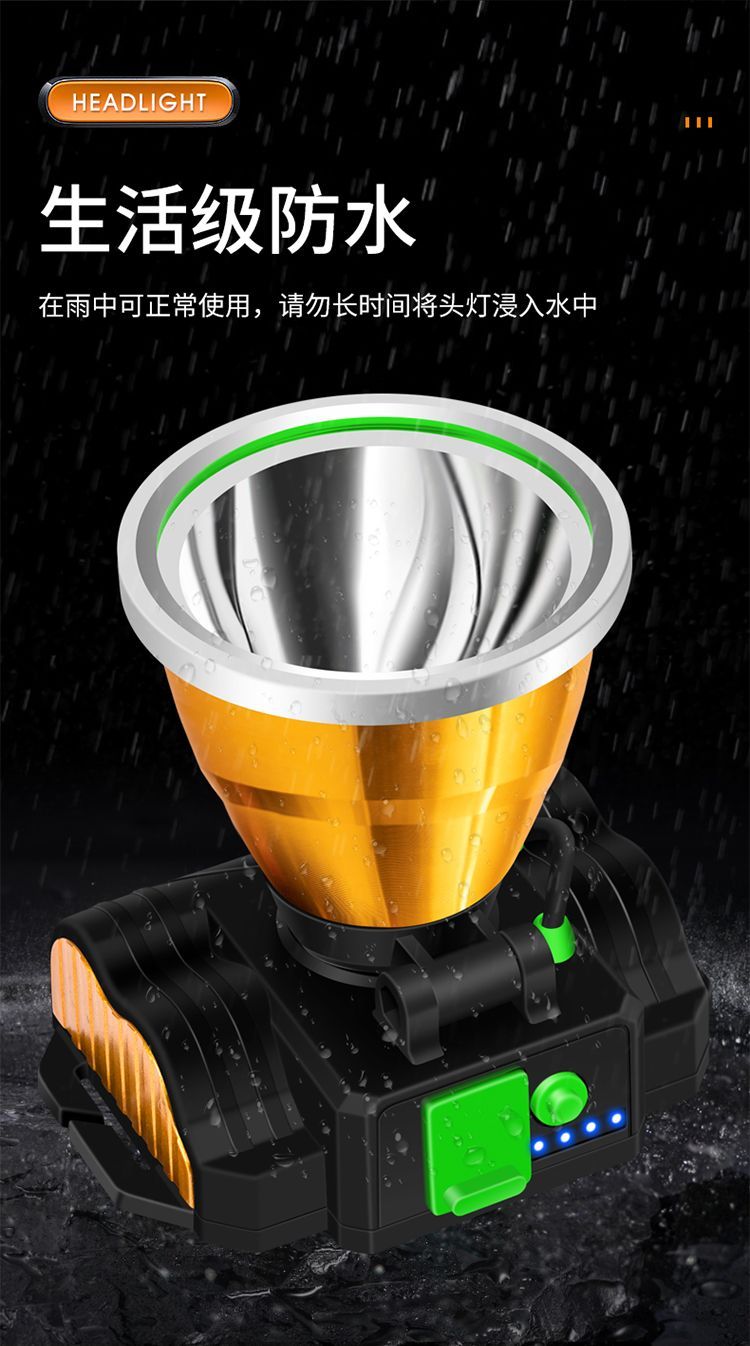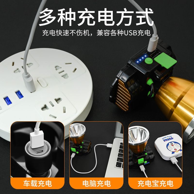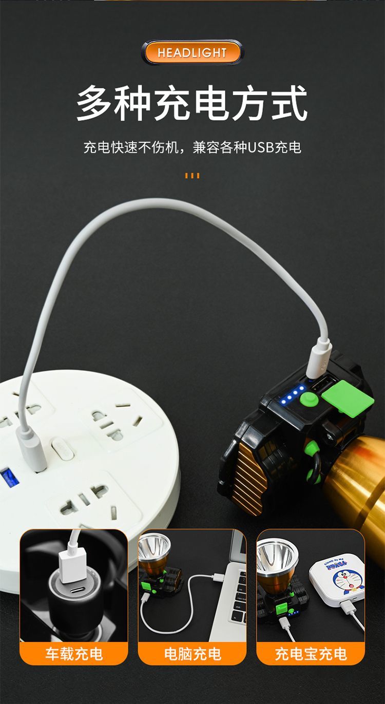 LED头灯强光可充电式夜钓鱼灯 户外头戴式防水手电筒远射矿灯台灯
