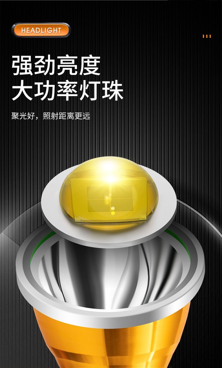 | golden [strong light 99w] lithium battery + sos signal(金色【强光99W】双锂电+SOS信号) | USD $6.5 | 999999 piece available |