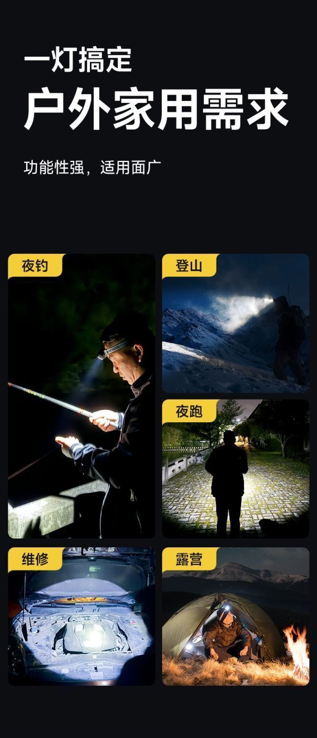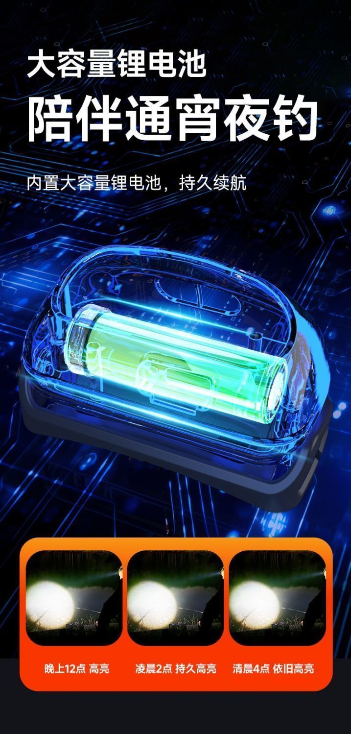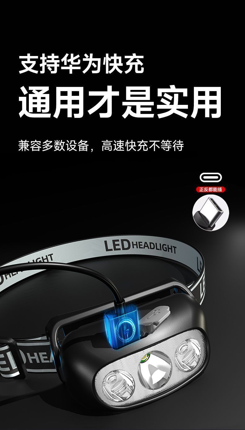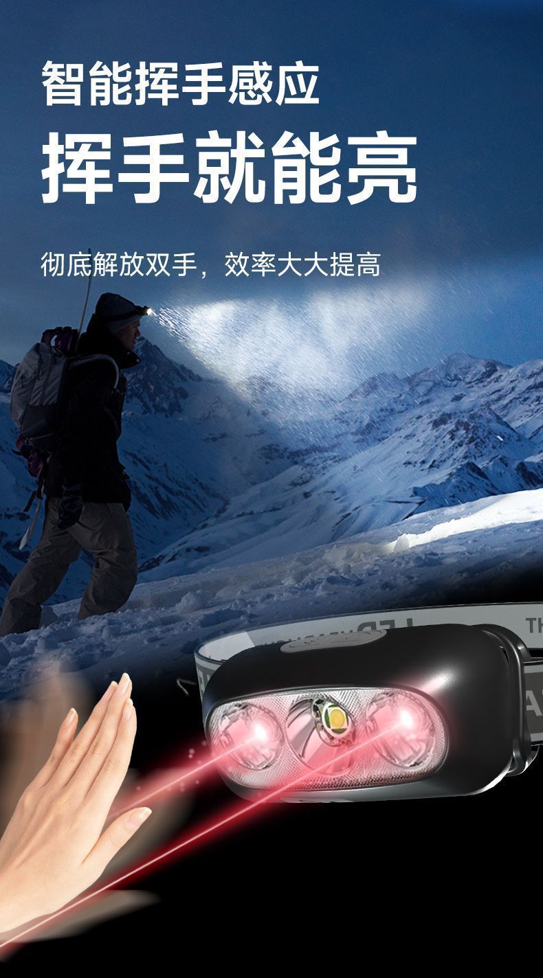 超亮感应头灯头戴式强光头灯可充电夜钓鱼专用超轻便携式防水头灯