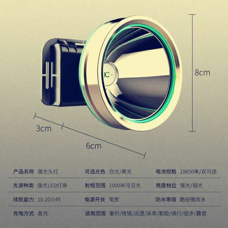 头灯强光可充电远射头戴式LED手电筒超亮户外夜钓钓鱼矿灯探照灯