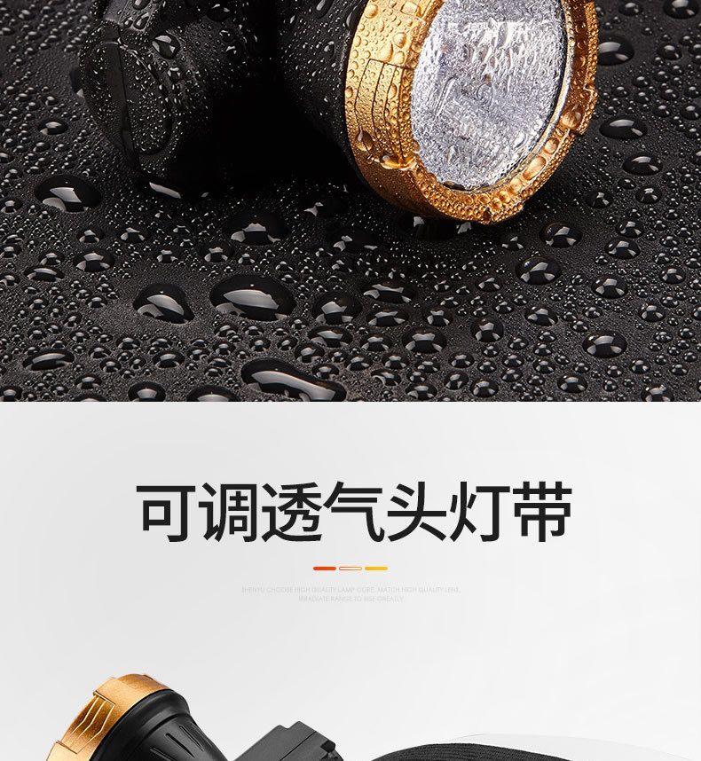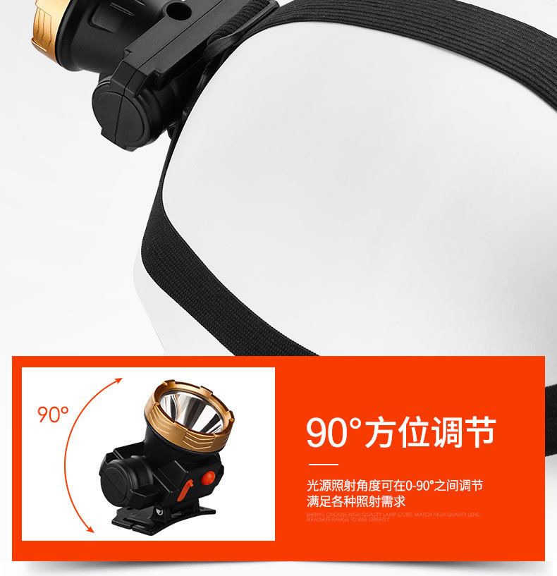 强光头灯防水可充电LED锂电小头灯夜钓户外巡逻露营头戴式手电筒