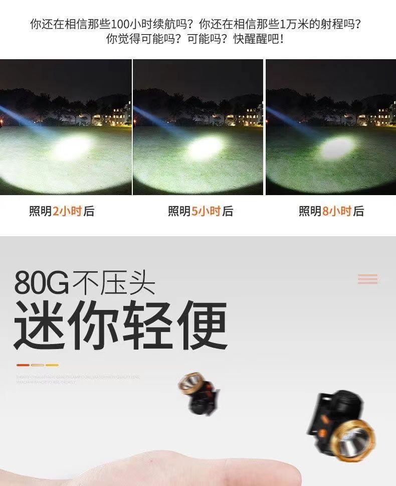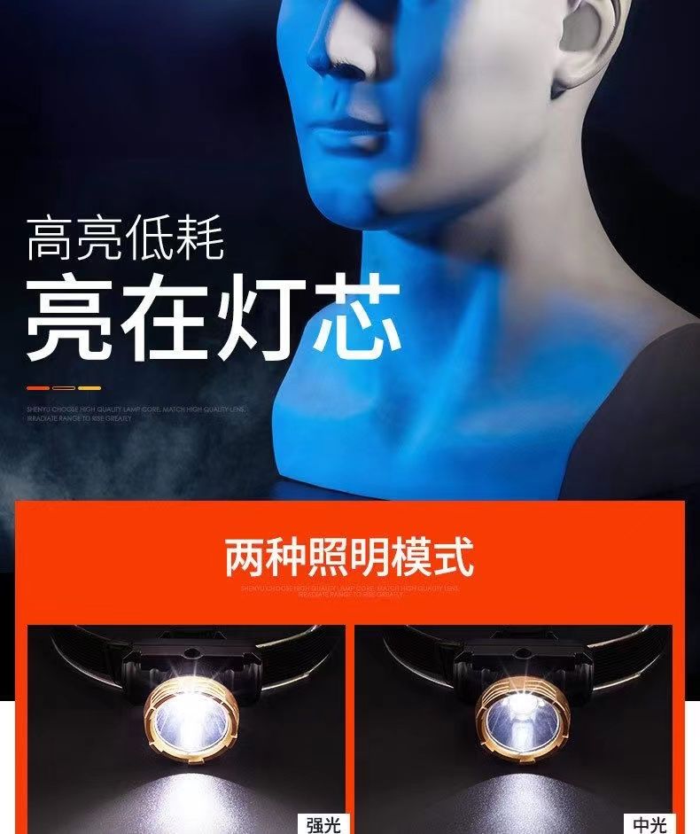 强光头灯防水可充电LED锂电小头灯夜钓户外巡逻露营头戴式手电筒