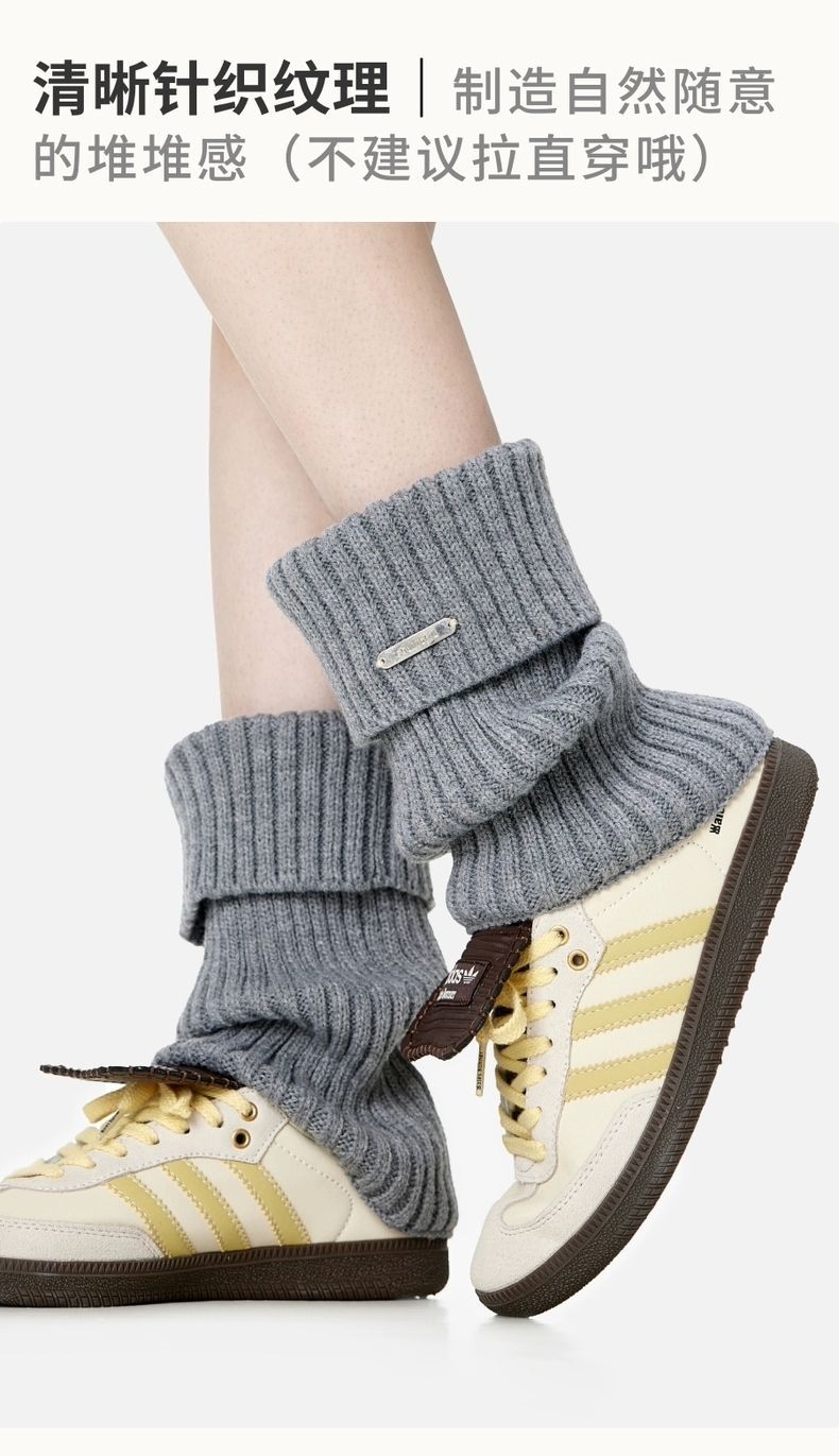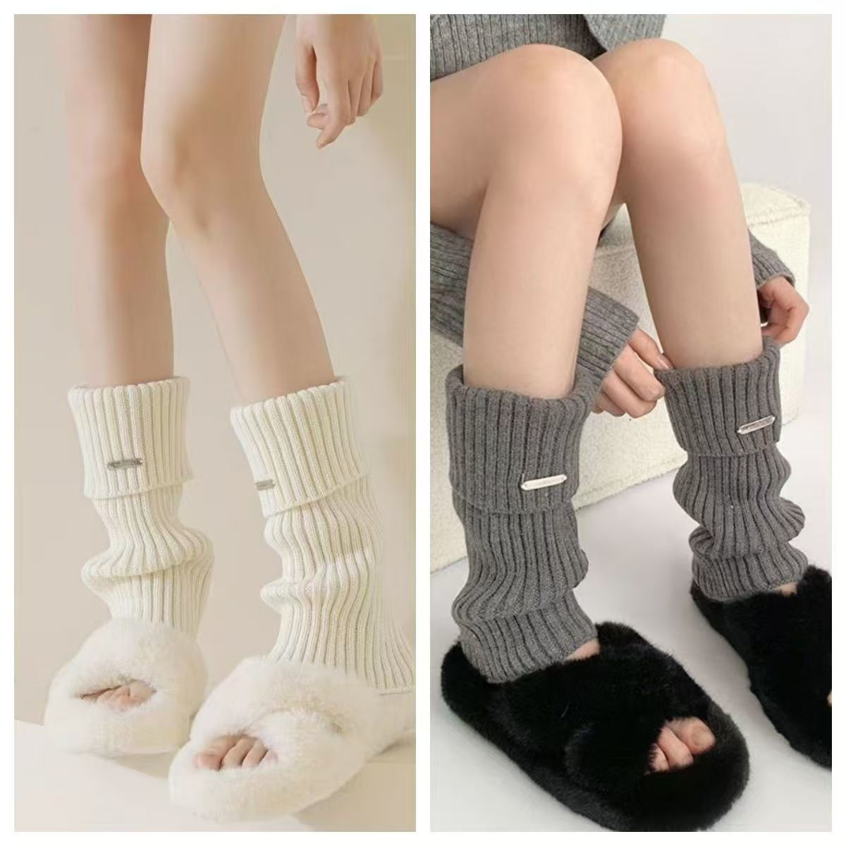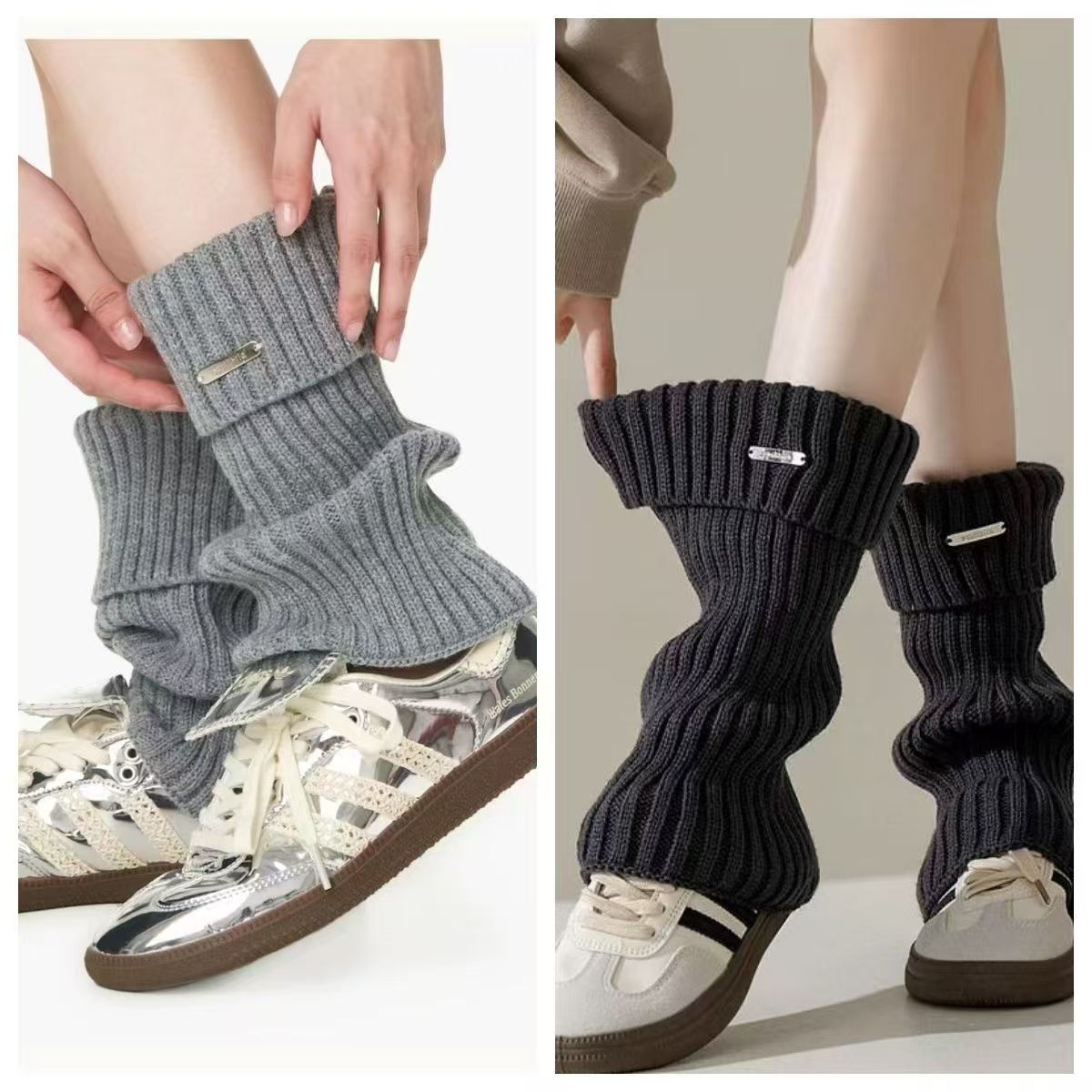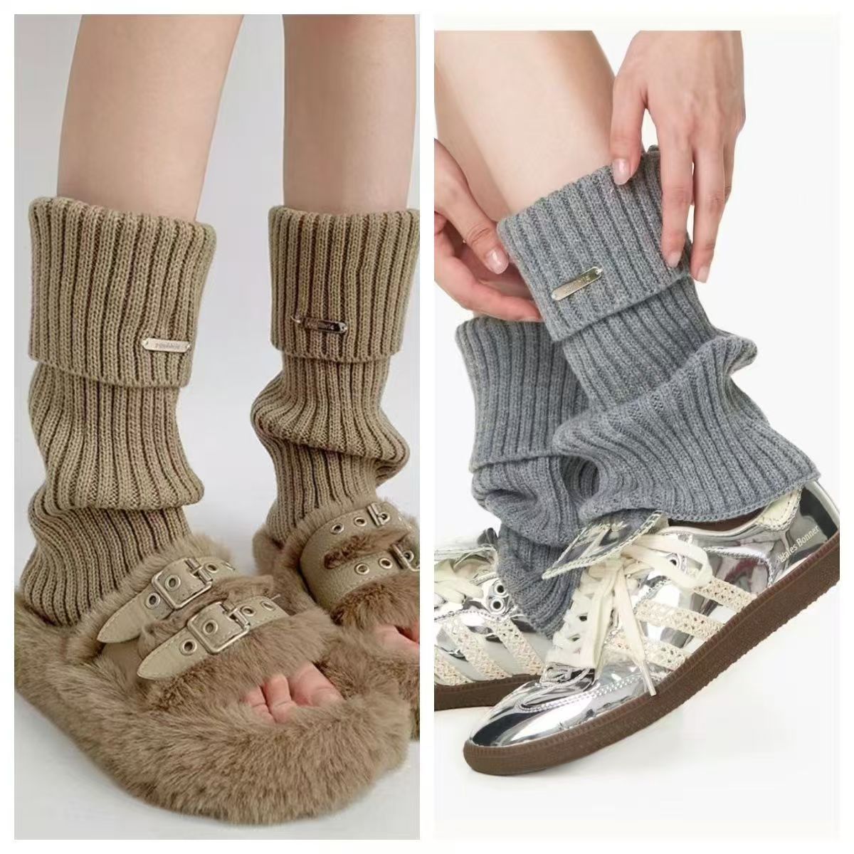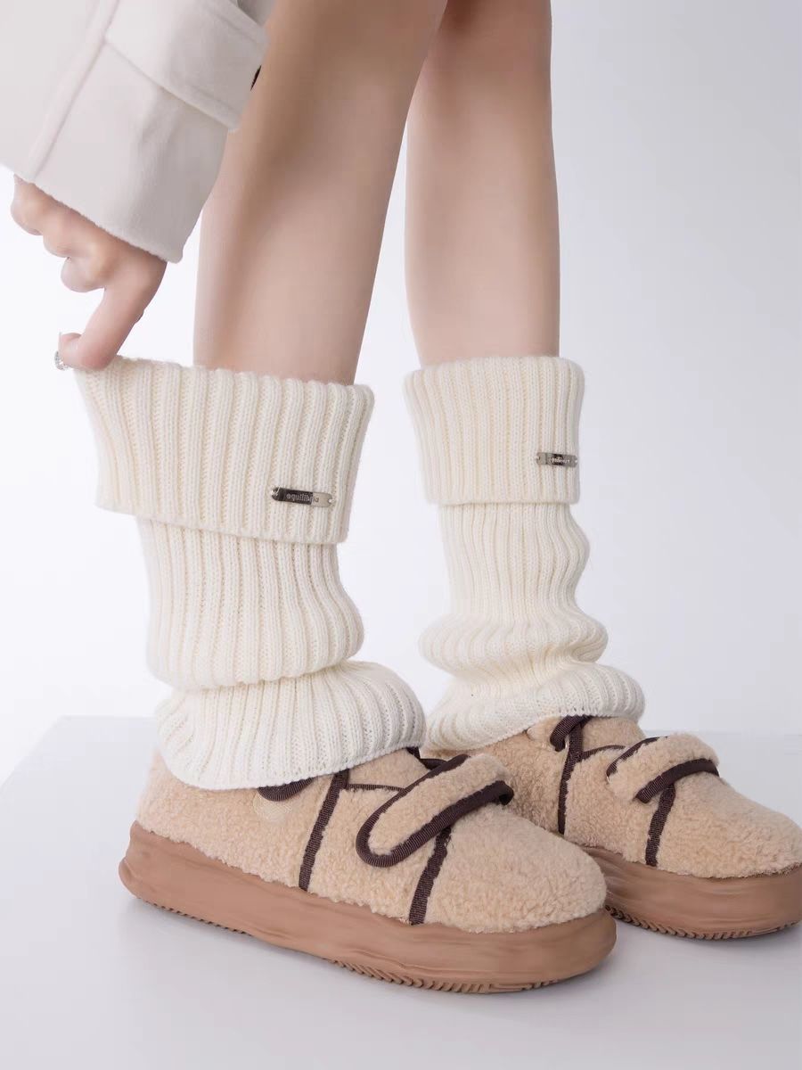 加厚秋冬季堆堆袜女宽松日系少女金属标堆堆百搭袜套保暖针织小腿