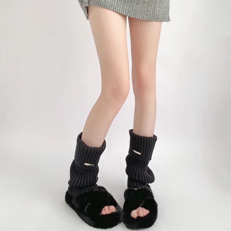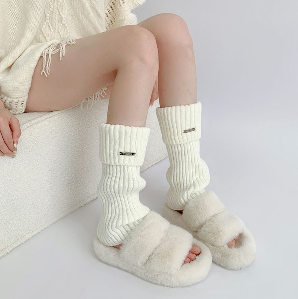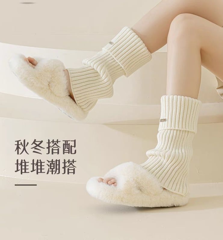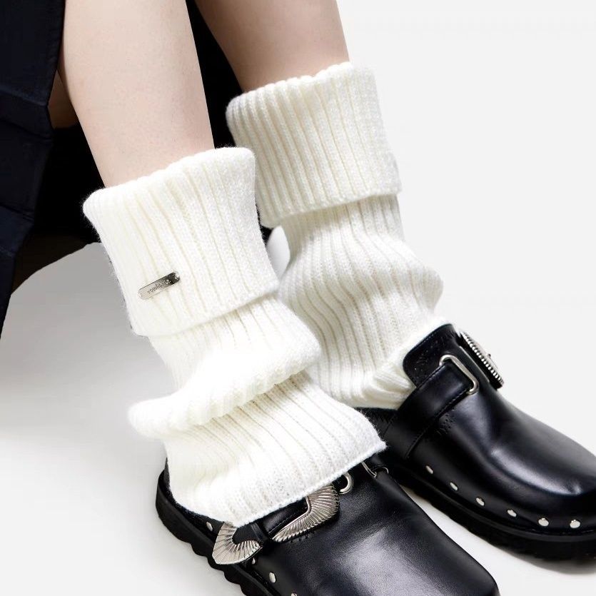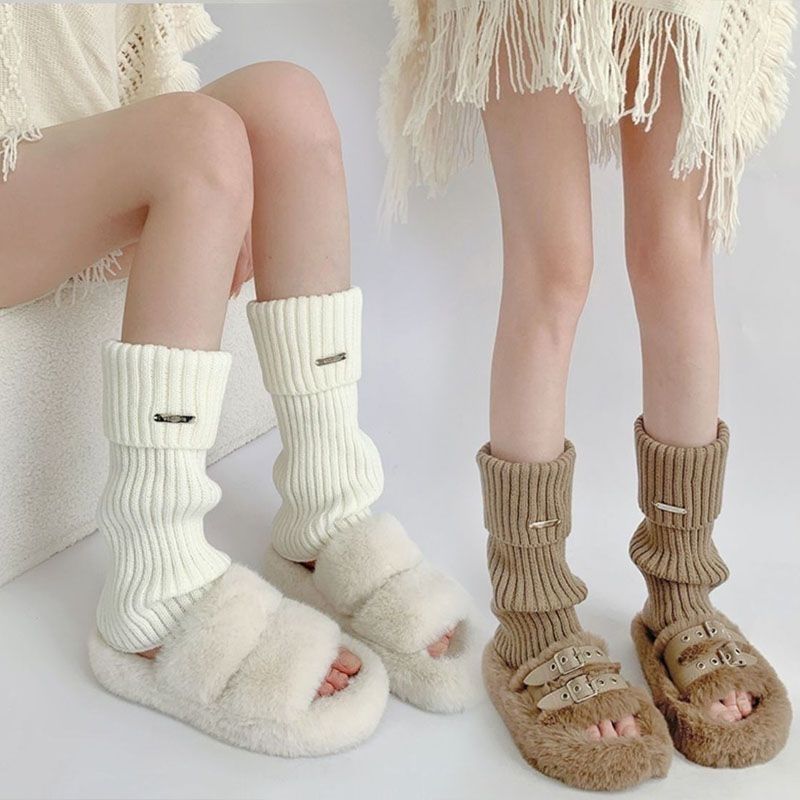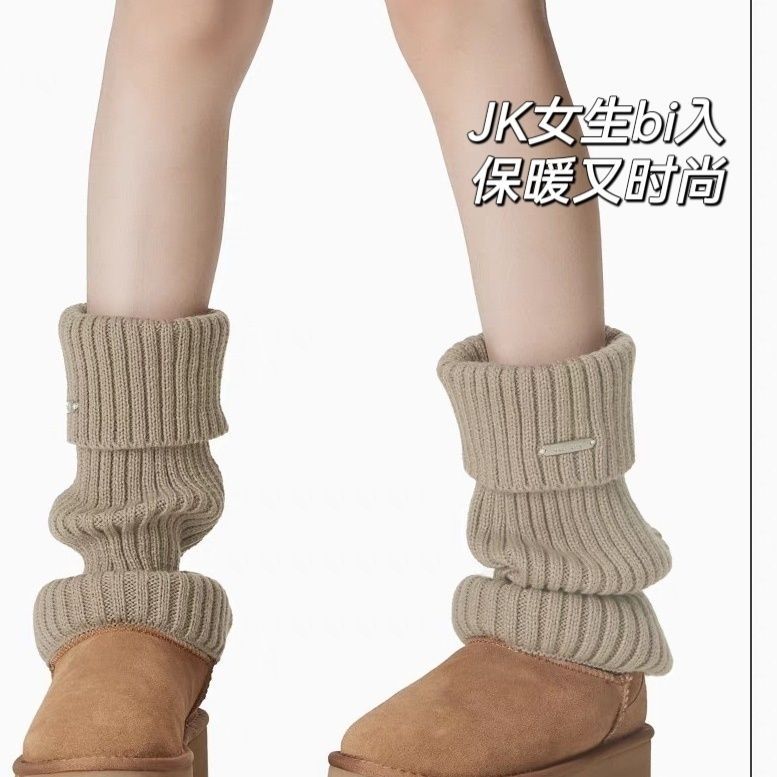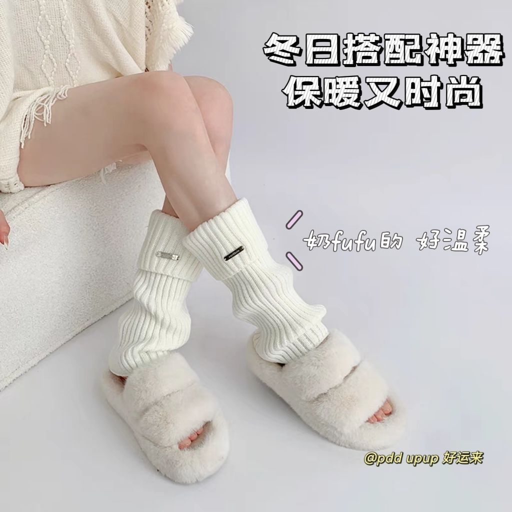 加厚秋冬季堆堆袜女宽松日系少女金属标堆堆百搭袜套保暖针织小腿