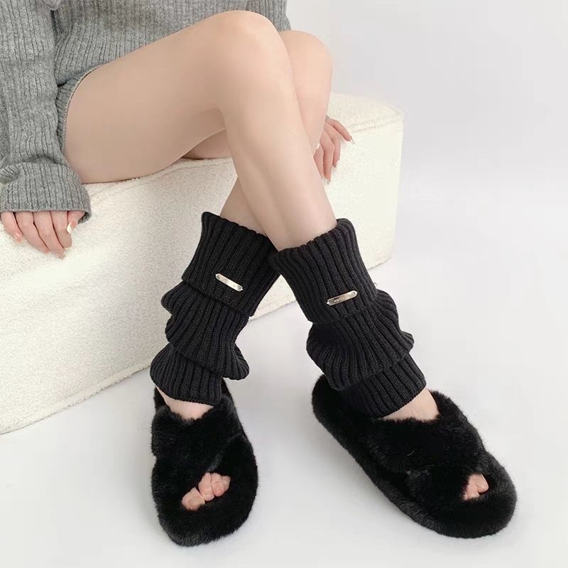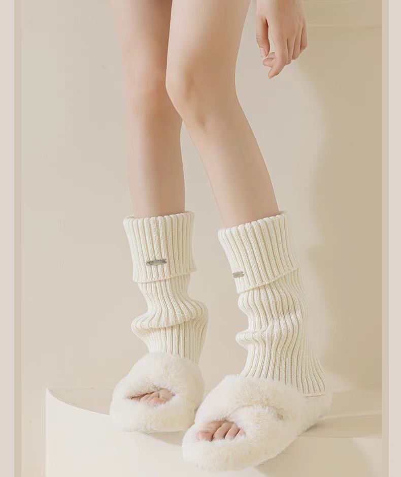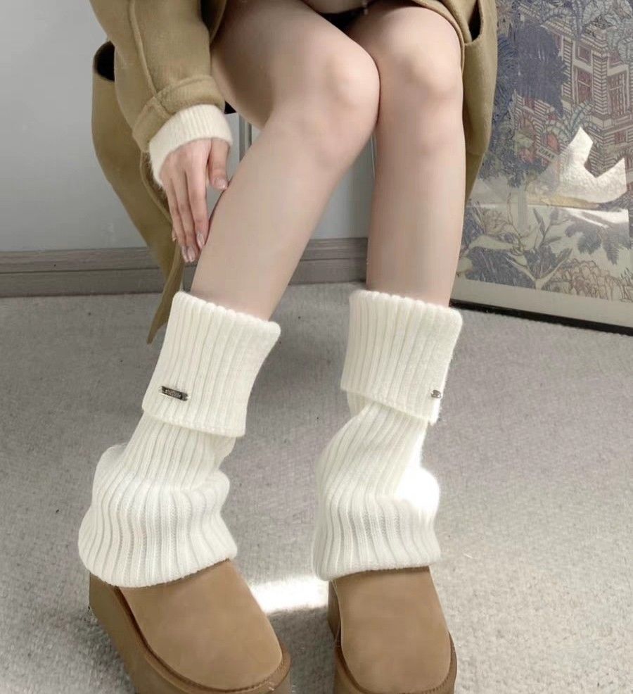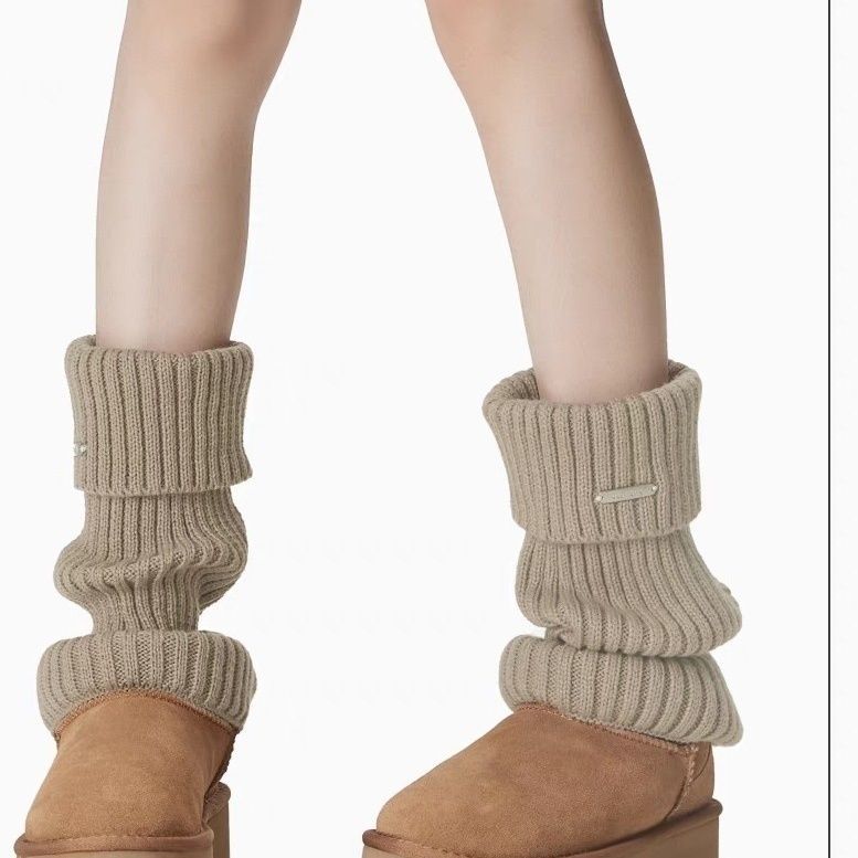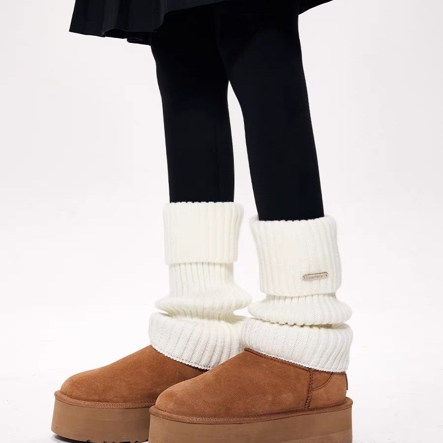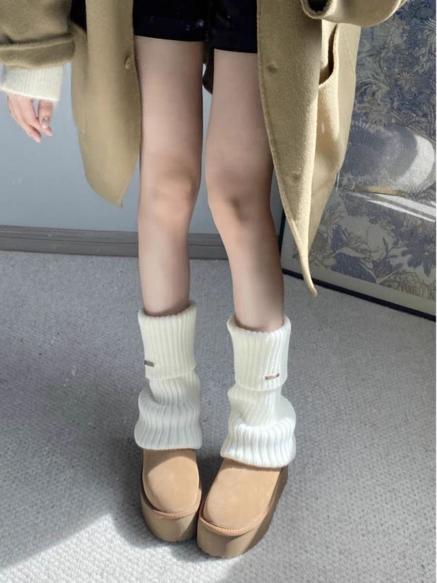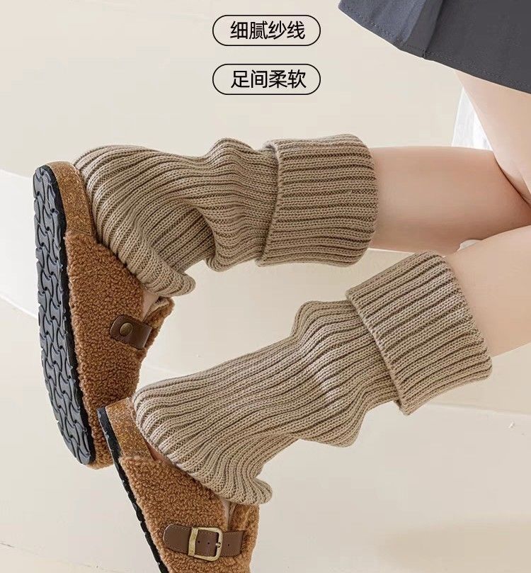 加厚秋冬季堆堆袜女宽松日系少女金属标堆堆百搭袜套保暖针织小腿