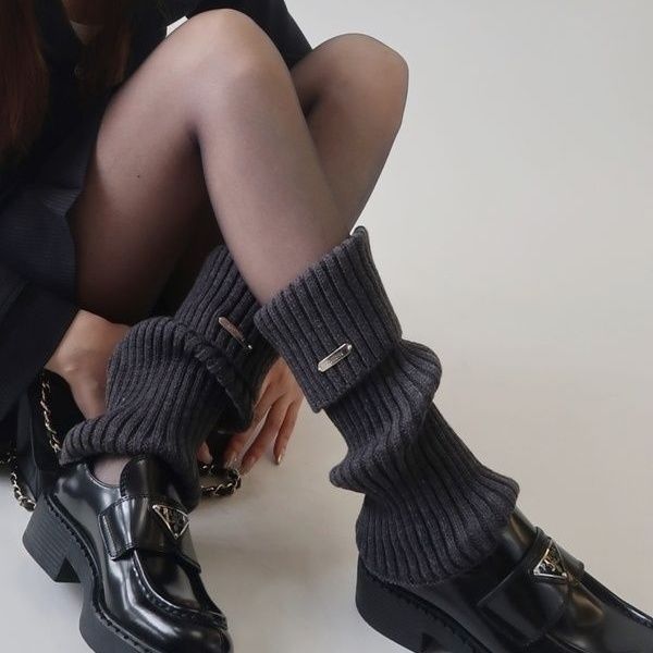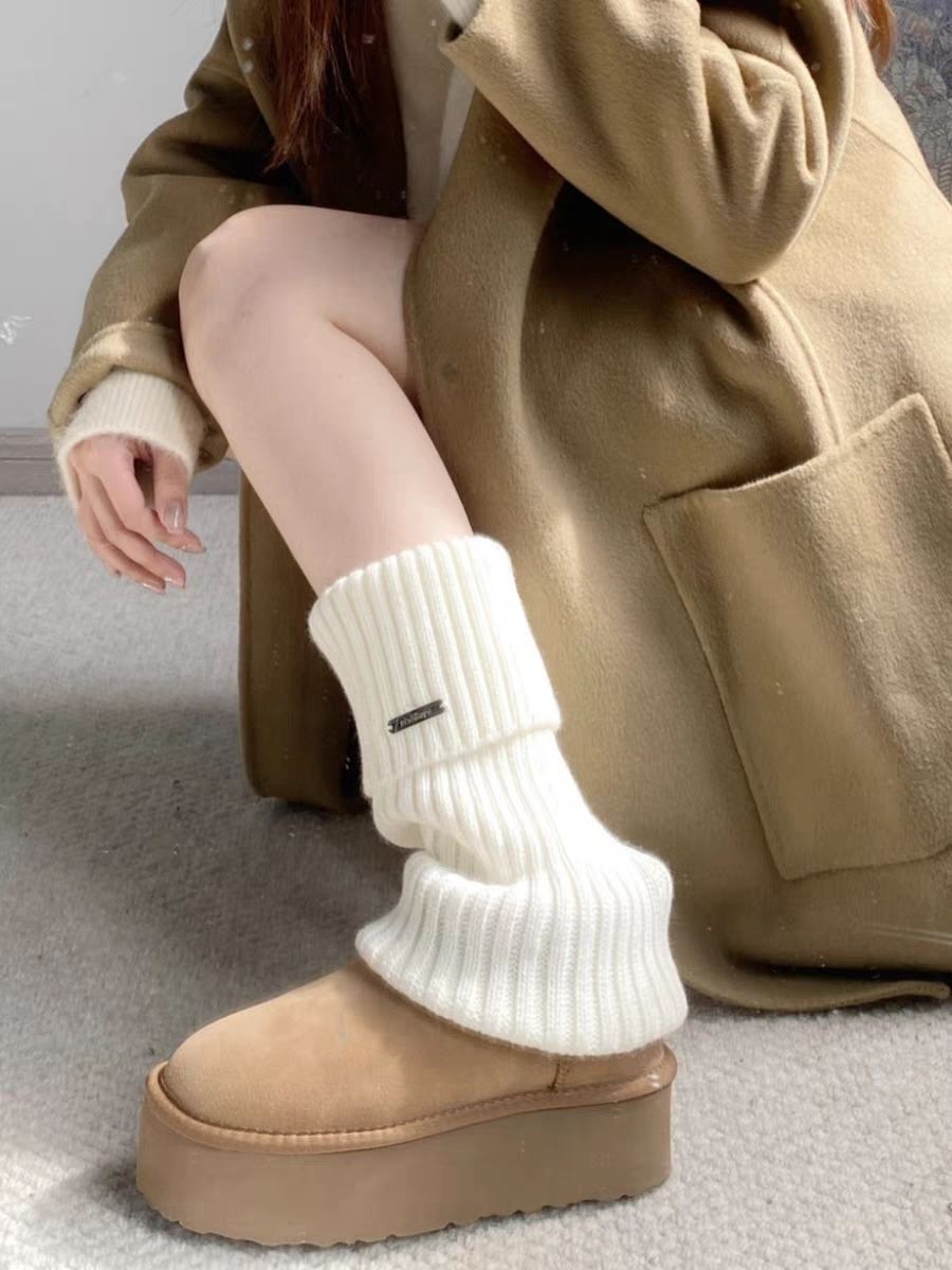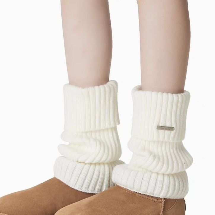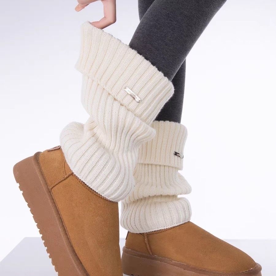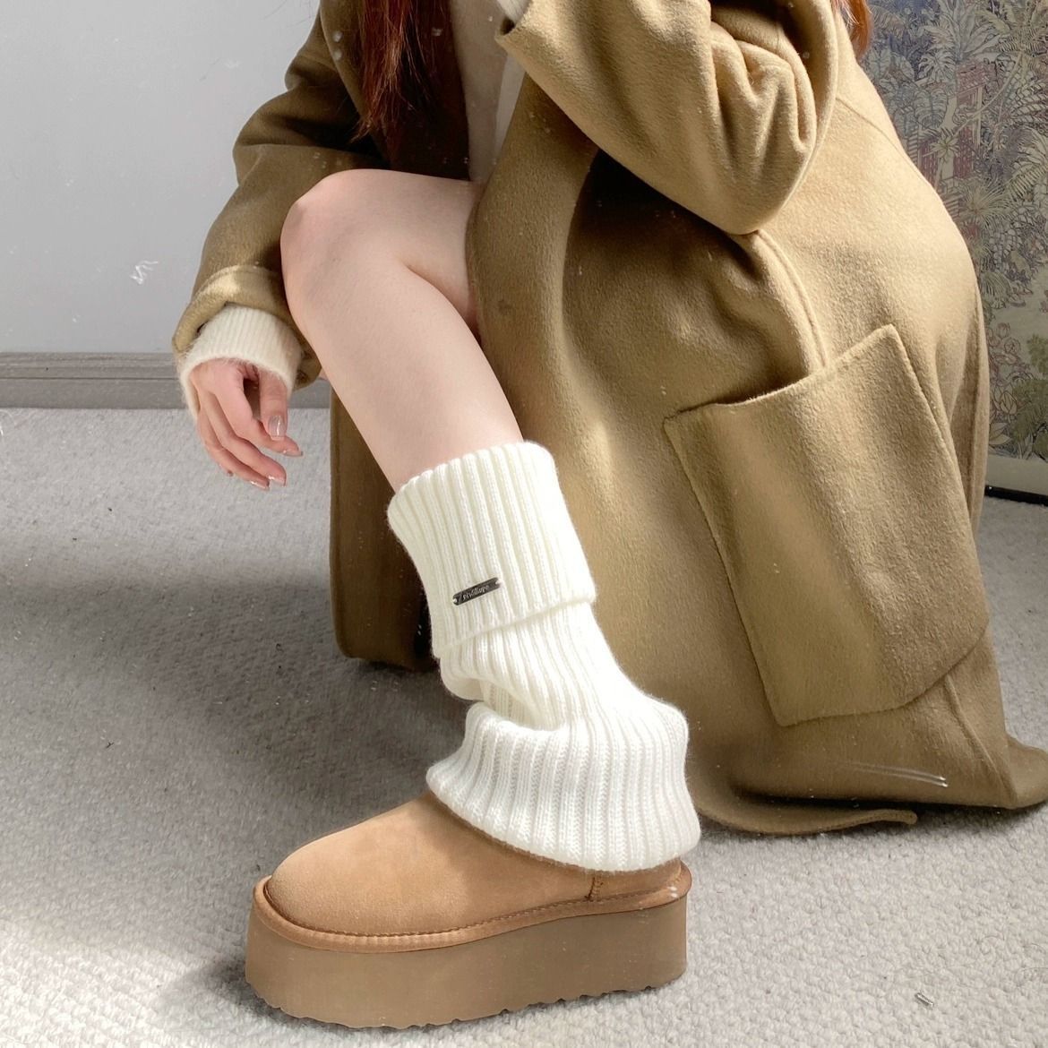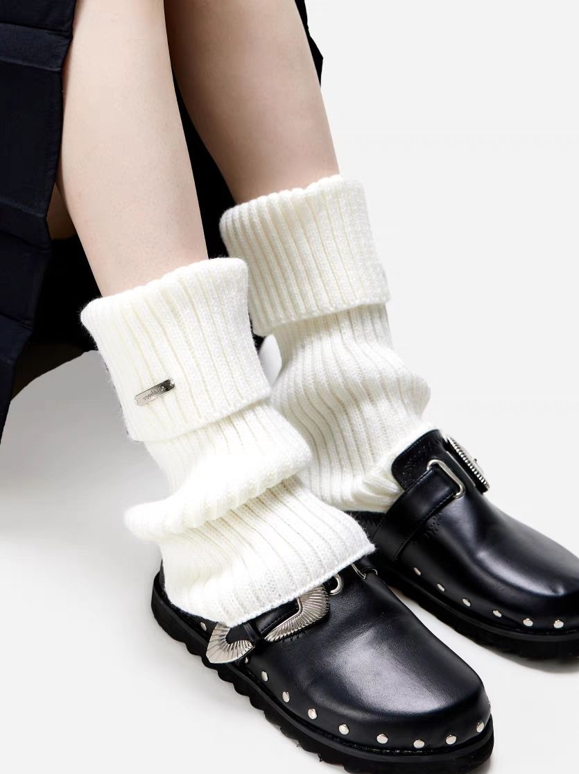 加厚秋冬季堆堆袜女宽松日系少女金属标堆堆百搭袜套保暖针织小腿
