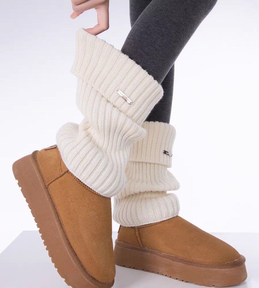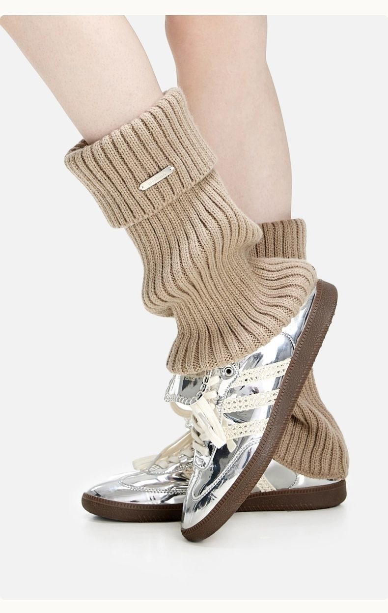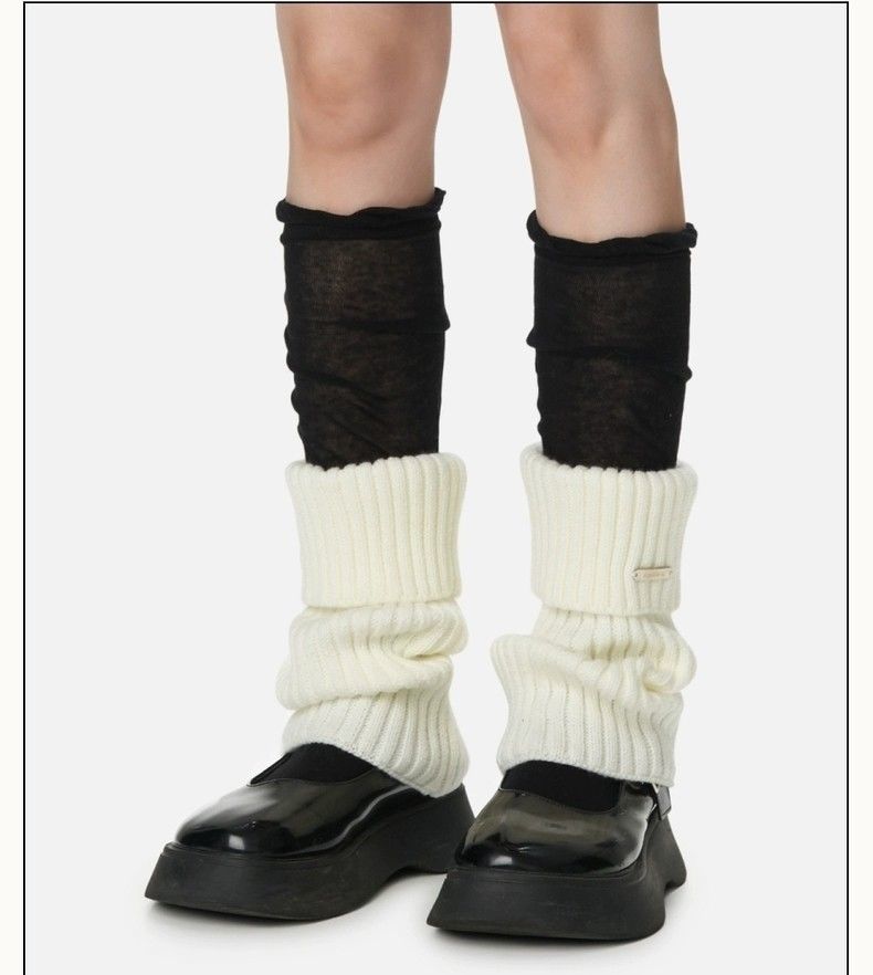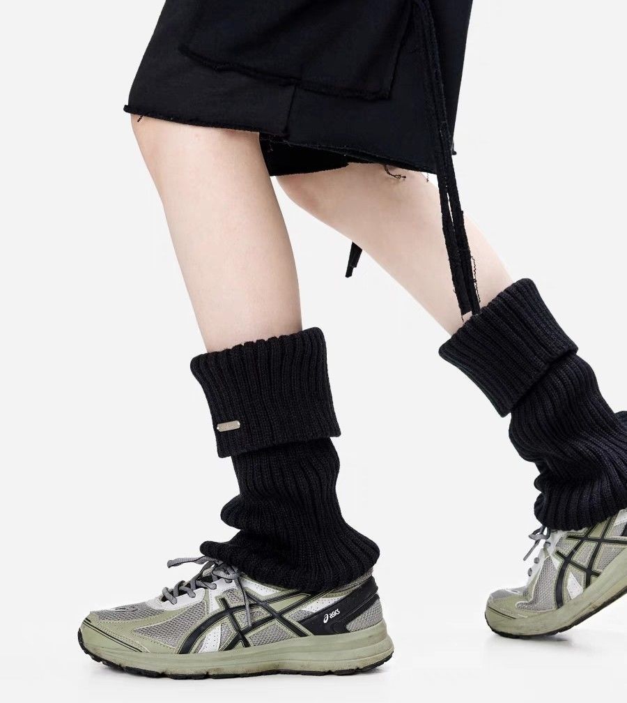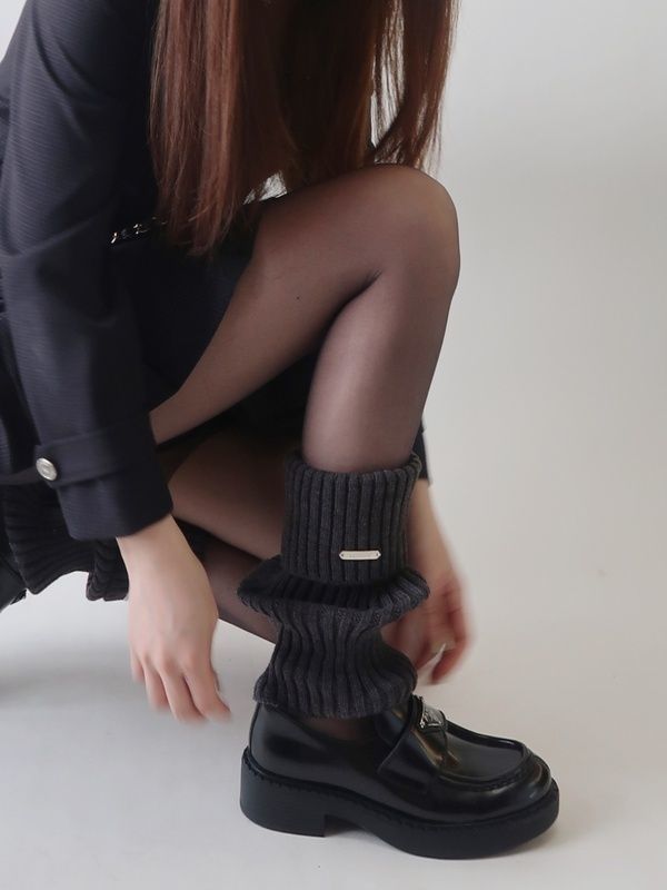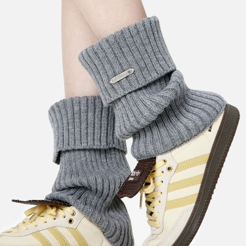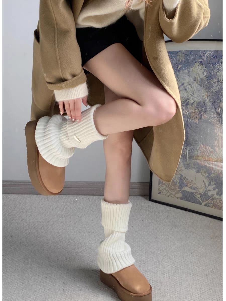 加厚秋冬季堆堆袜女宽松日系少女金属标堆堆百搭袜套保暖针织小腿