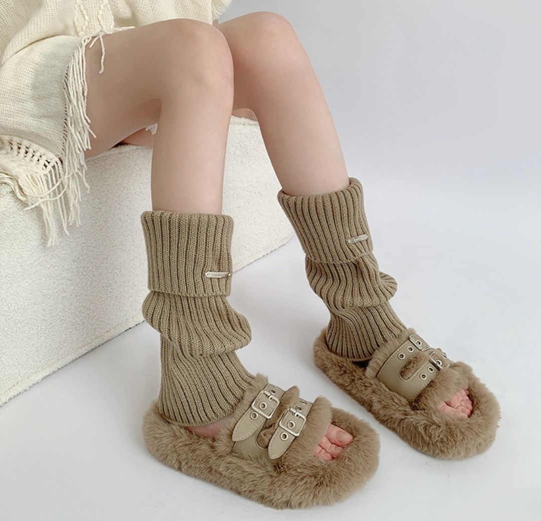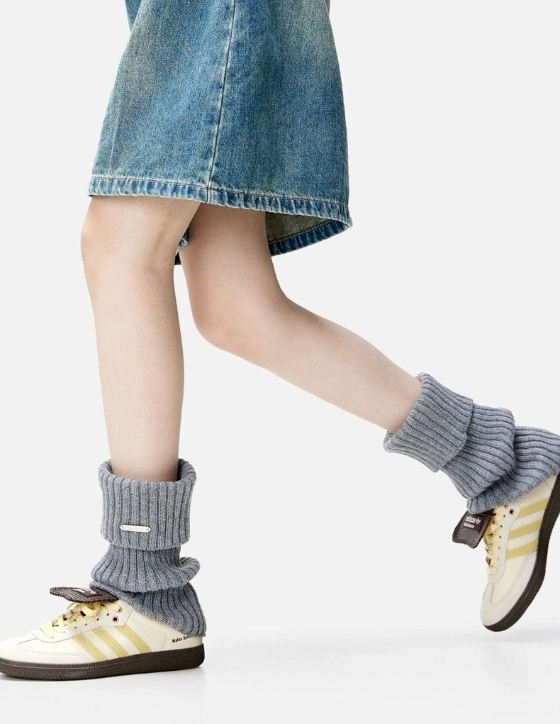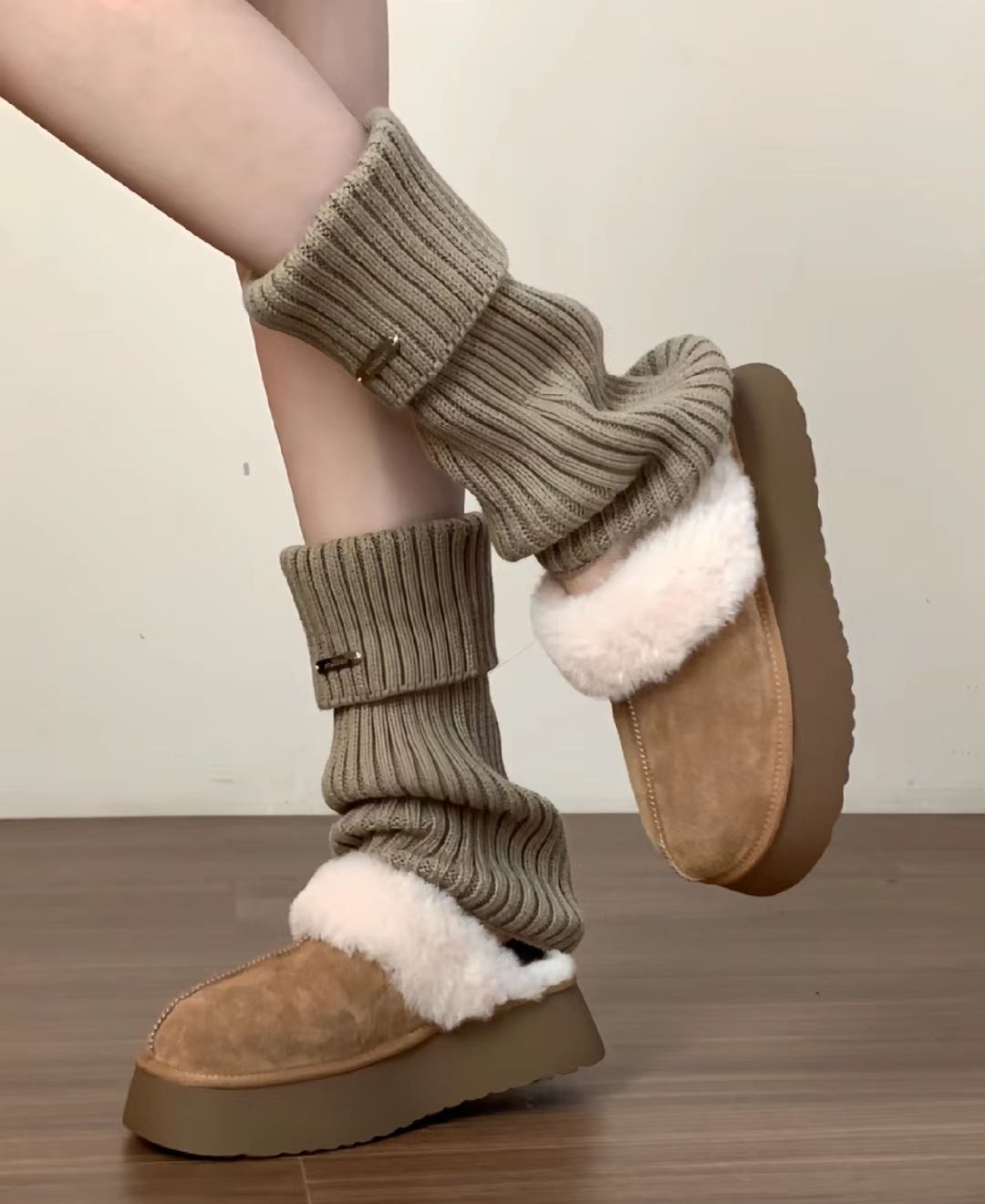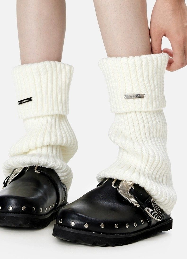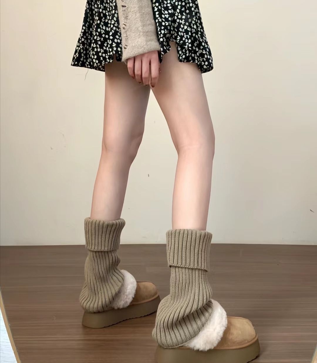 加厚秋冬季堆堆袜女宽松日系少女金属标堆堆百搭袜套保暖针织小腿