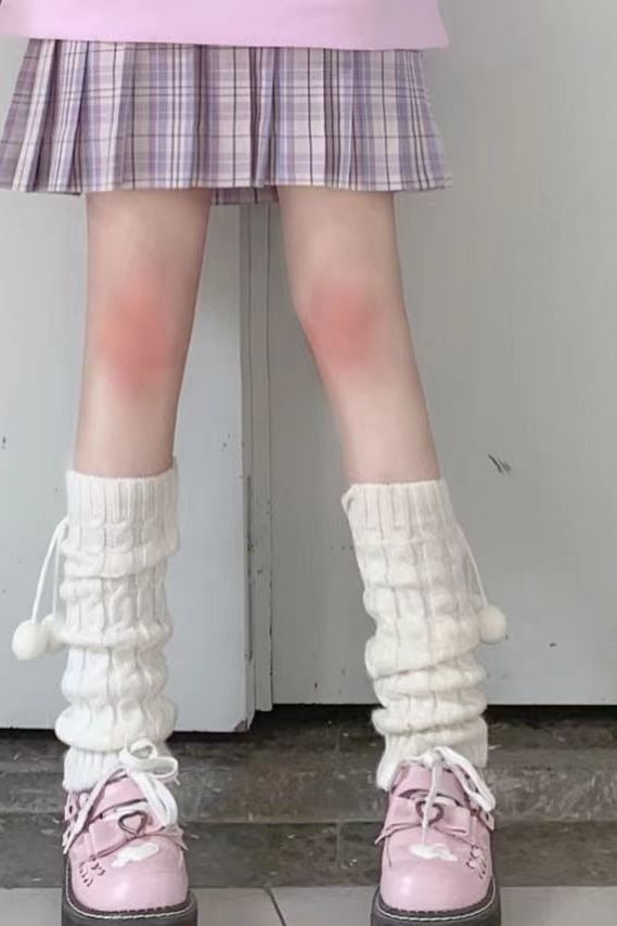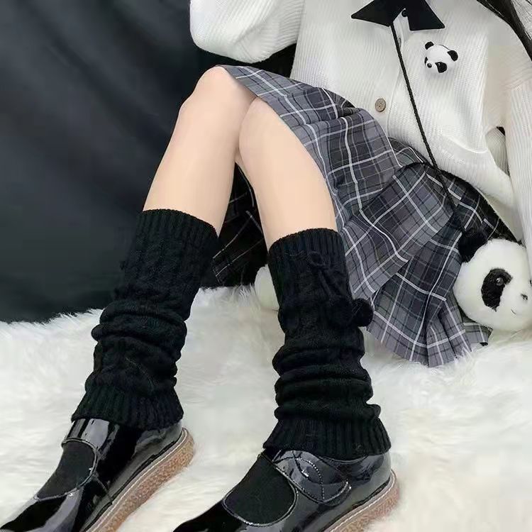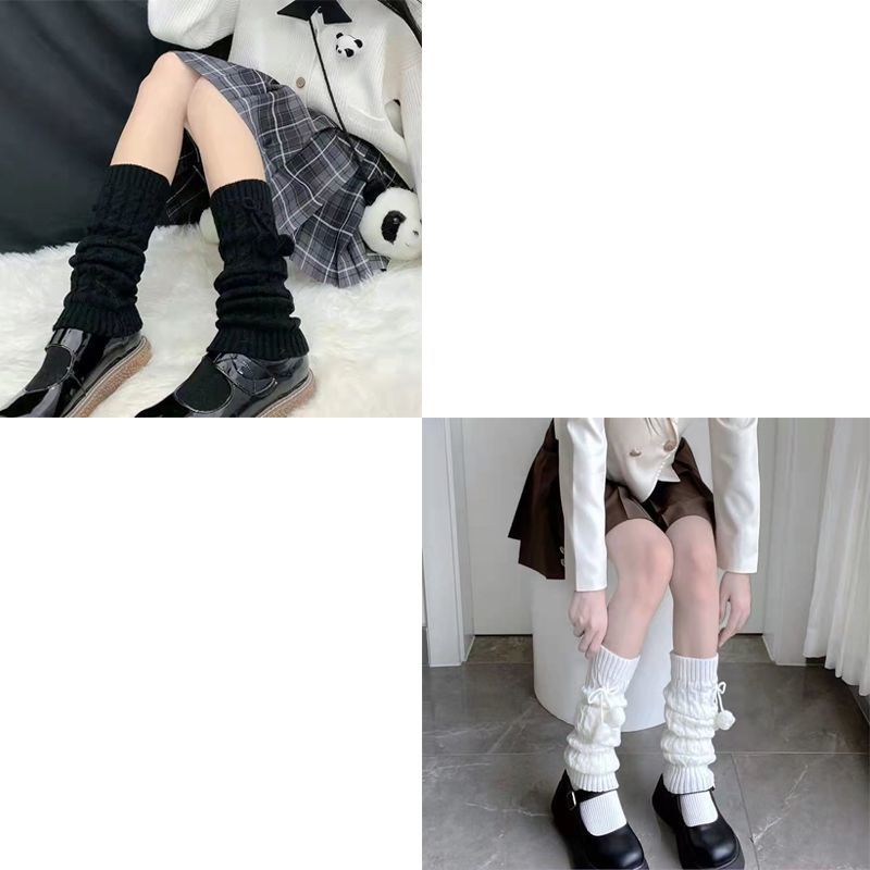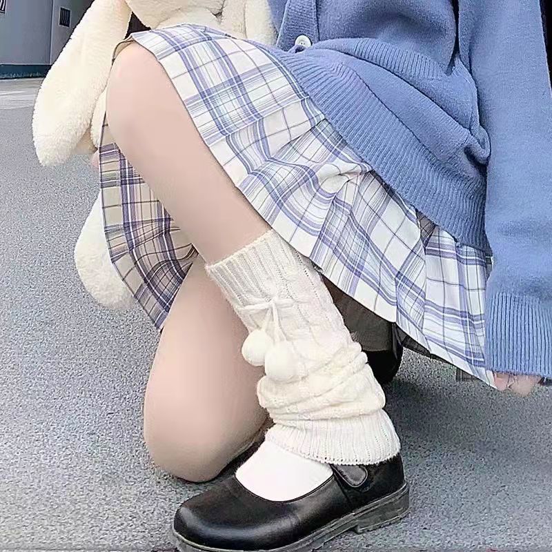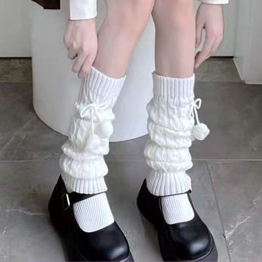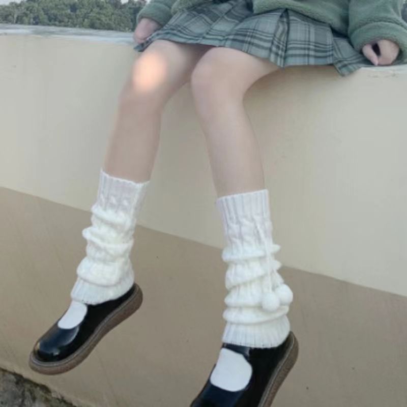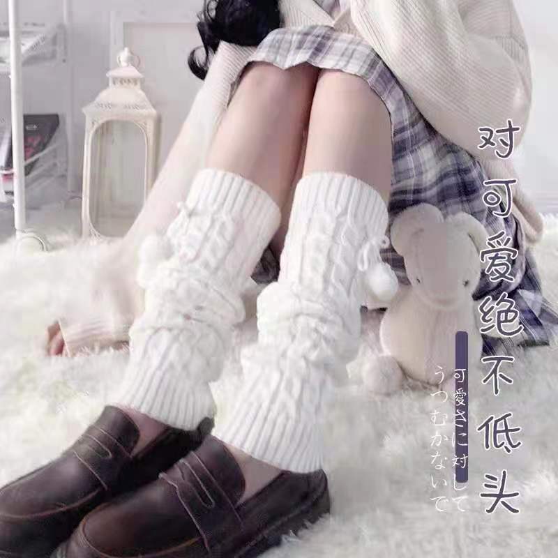 女秋冬日系针织堆堆袜护膝韩版学生毛球袜套可爱洛丽塔jk长筒腿套