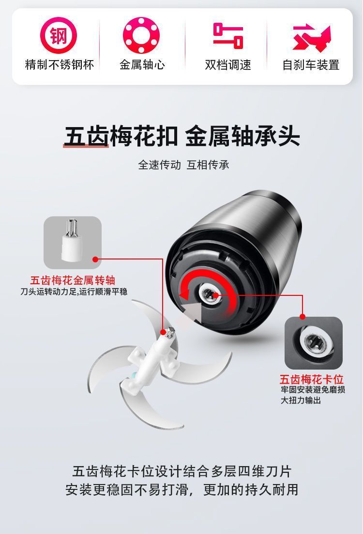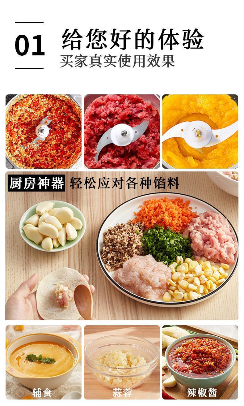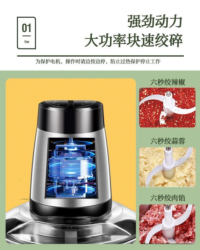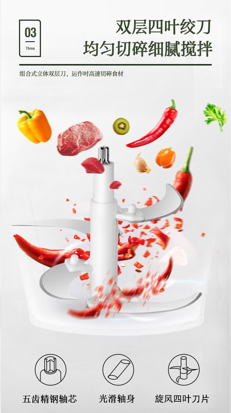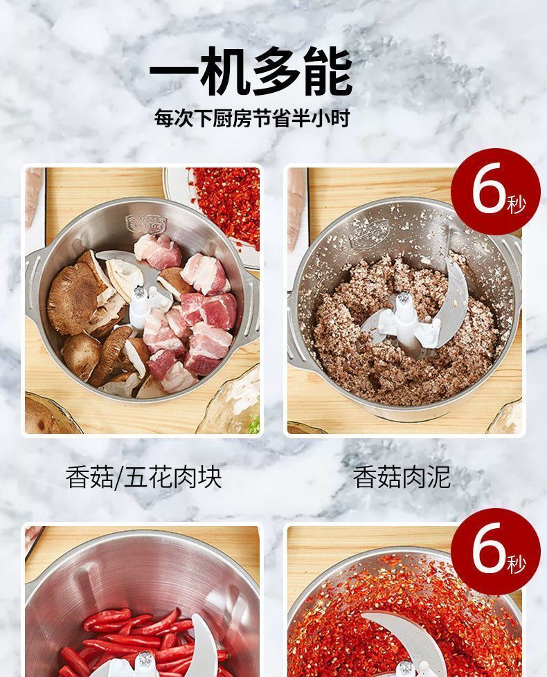 | 5 liters 3 gears [large capacity] a total of 4 sets of knives + dough(5升3档【大容量】共4套刀+可和面) | USD $25.17 | 999999 piece available |