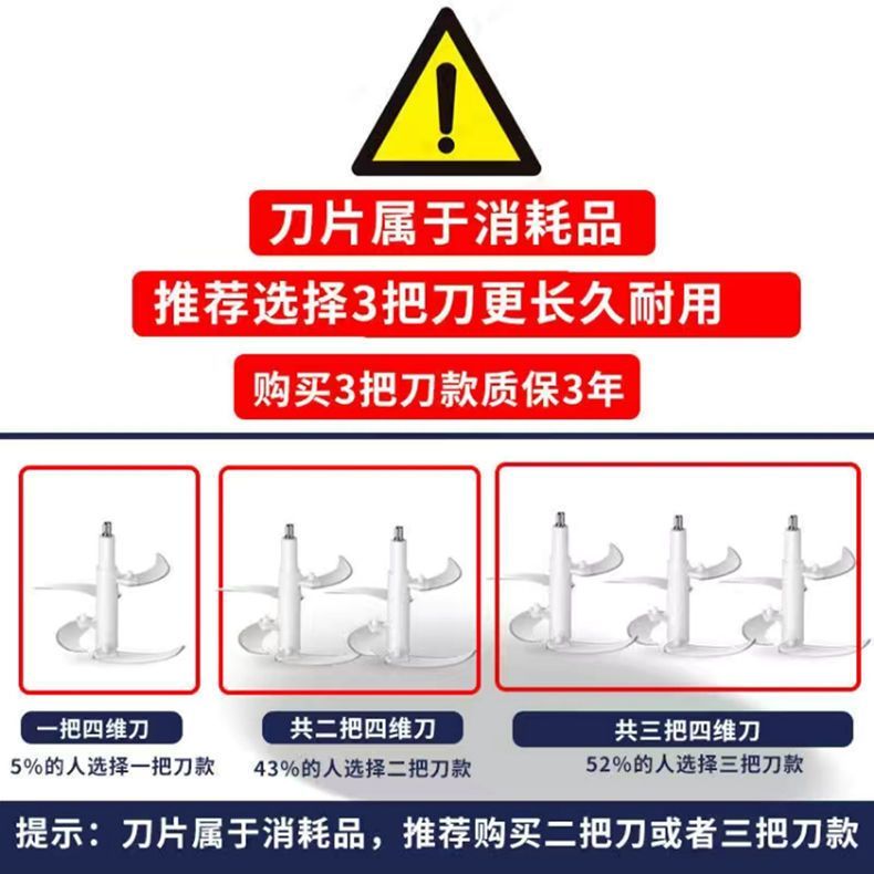 | 5 liters 3 gears [large capacity] 1 set of knives (no spare knives)(5升3档【大容量】1套刀(无备用刀)) | USD $19.74 | 999999 piece available |