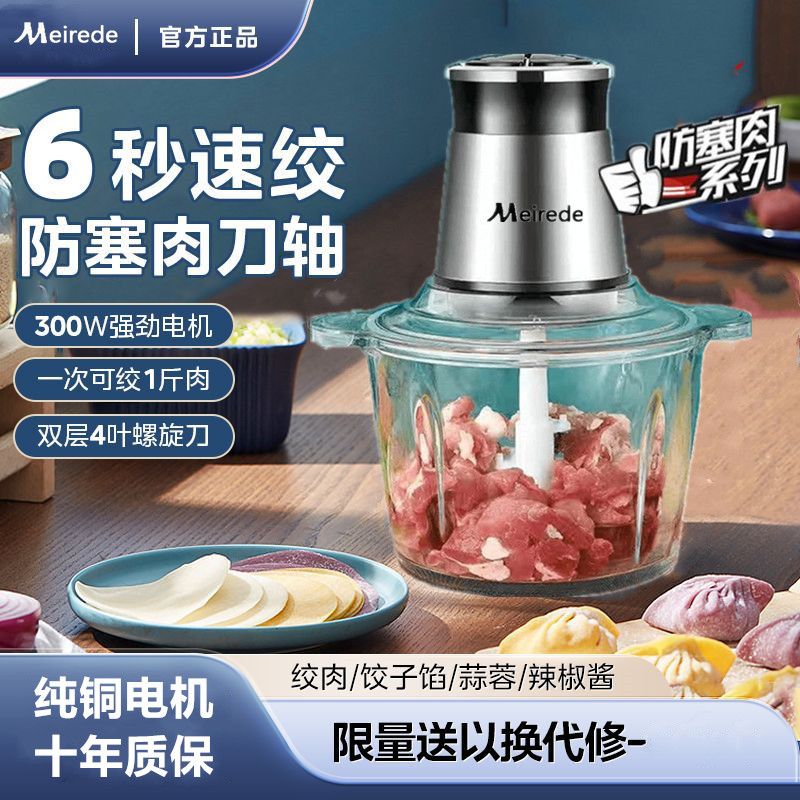 绞肉机家用全自动多功能电动玻璃碗小型绞陷料理机搅拌和面辅食机