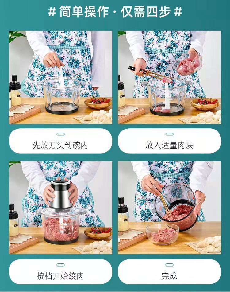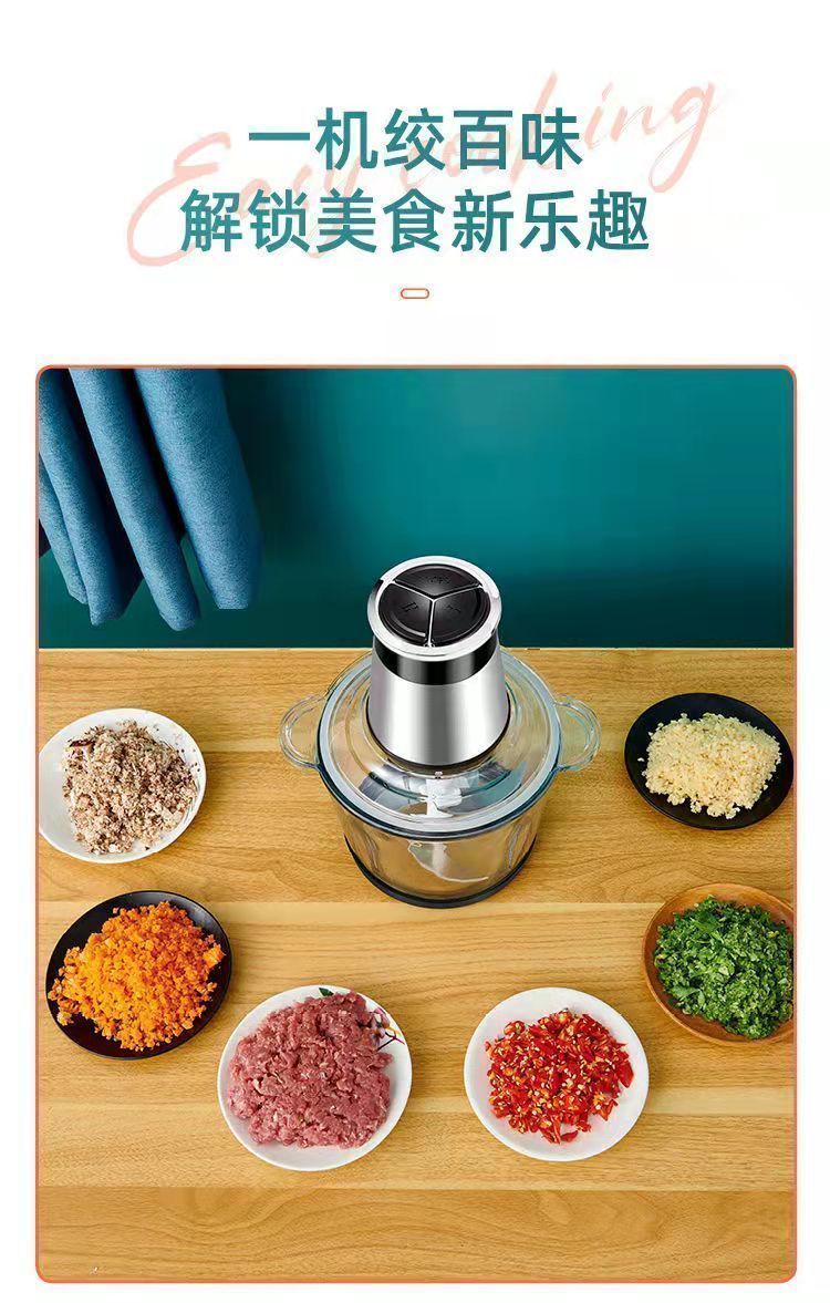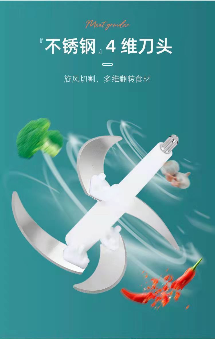 | 3 liters, 2 gears, 5 sets of knives [stainless steel bowl] (can be mixed with noodles)(3升2档五套刀【不锈钢碗】(可和面)) | USD $18.11 | 999999 piece available |