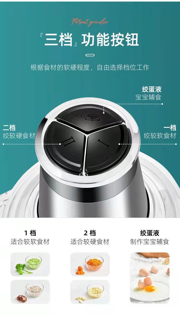 | 2 liters 2 gears 3 sets of knives [stainless steel bowl] small capacity(2升2档三套刀 【不锈钢碗】小容量) | USD $13.4 | 999999 piece available |