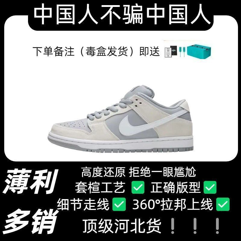 白黑气垫透气北极狐板鞋生胶男女aj耐磨Dunk学生纯原情侣低帮防滑