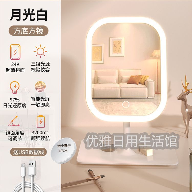 网红女LED化妆镜桌面补光小镜子卧室学生ins风便携小型梳妆镜智能