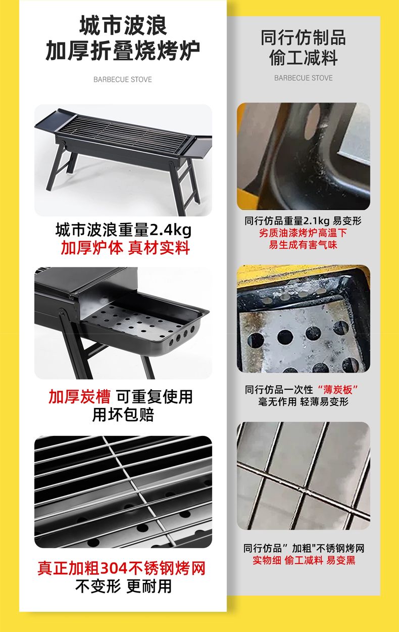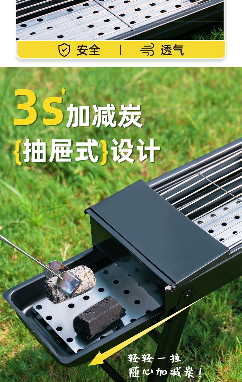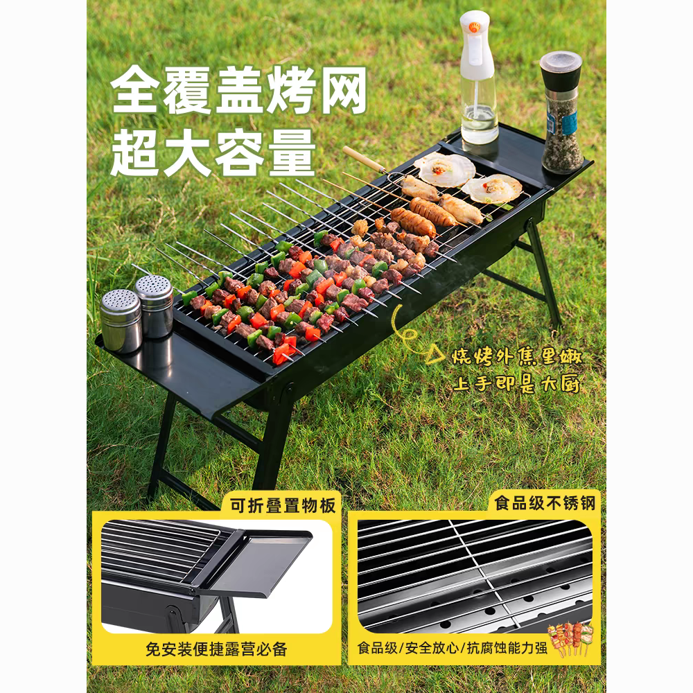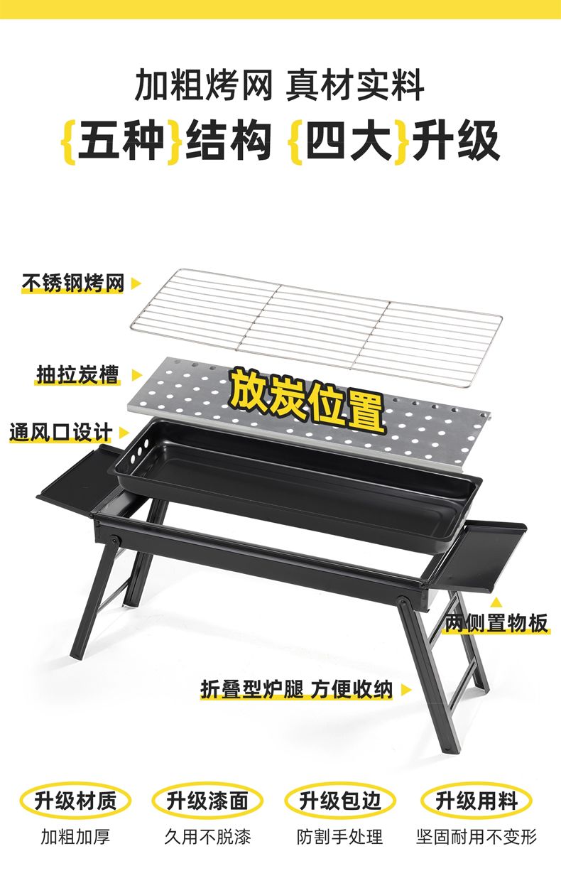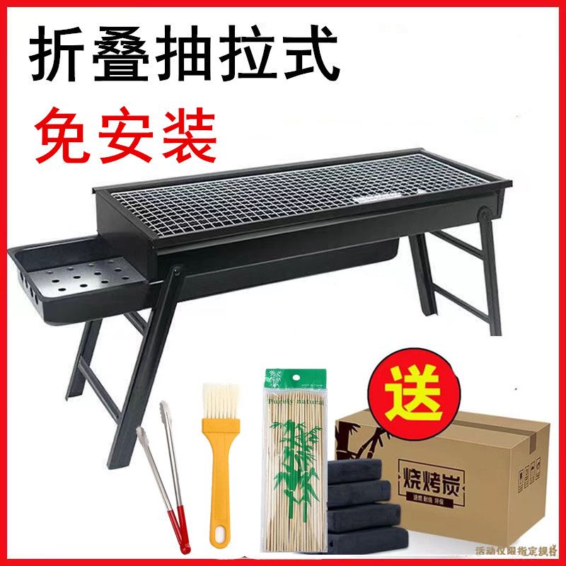 烧烤炉烧烤架子家用户外木炭烤肉全套抽拉便携式折叠烧烤炉子工具