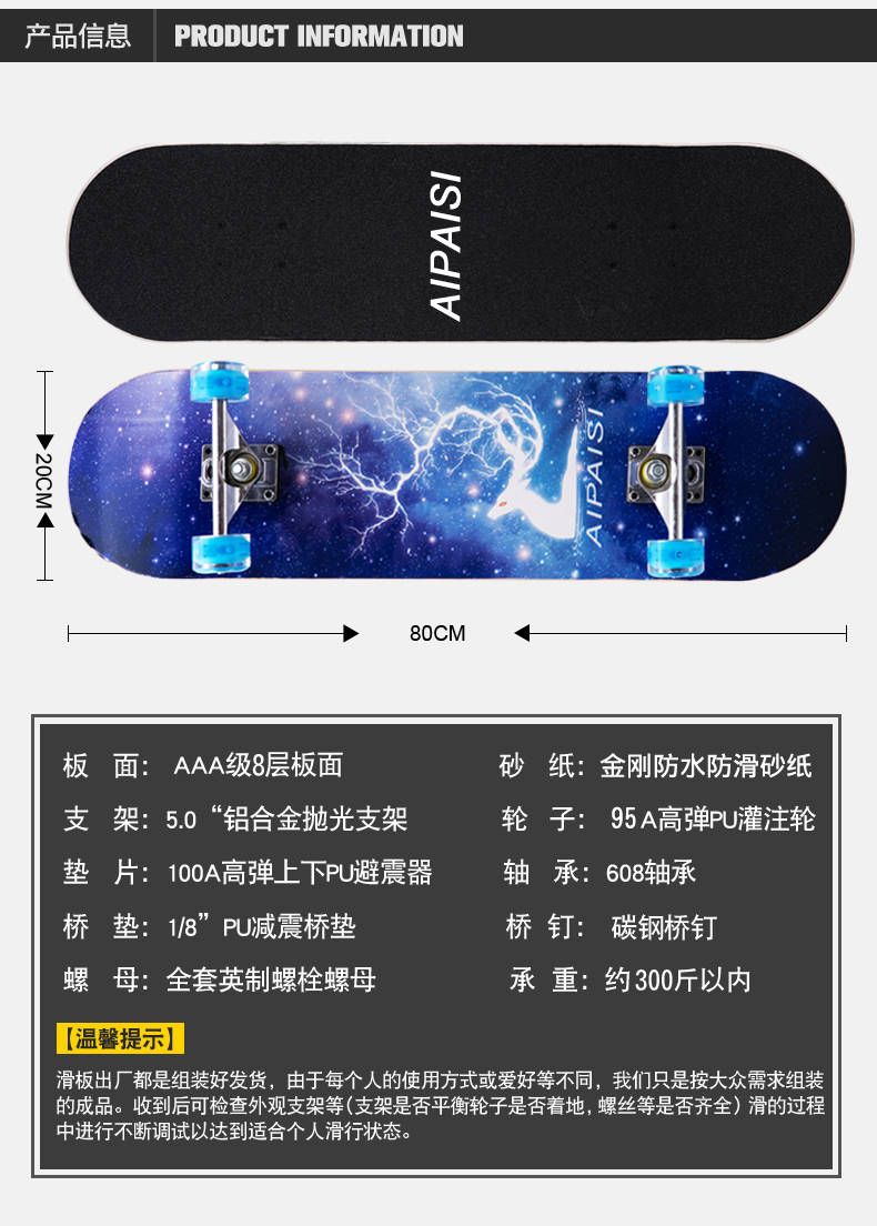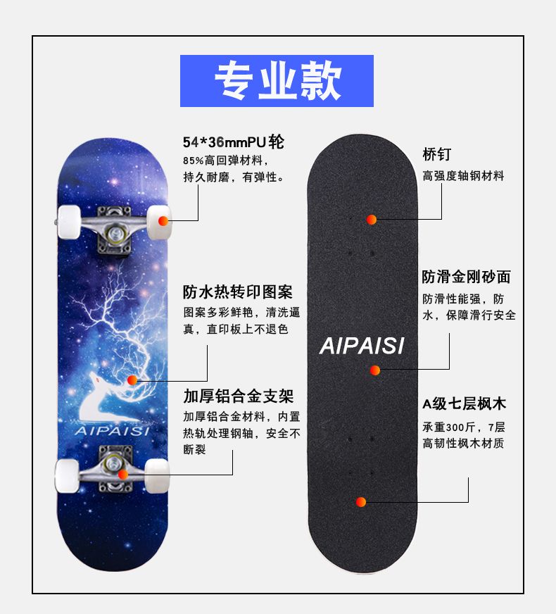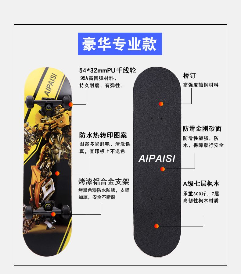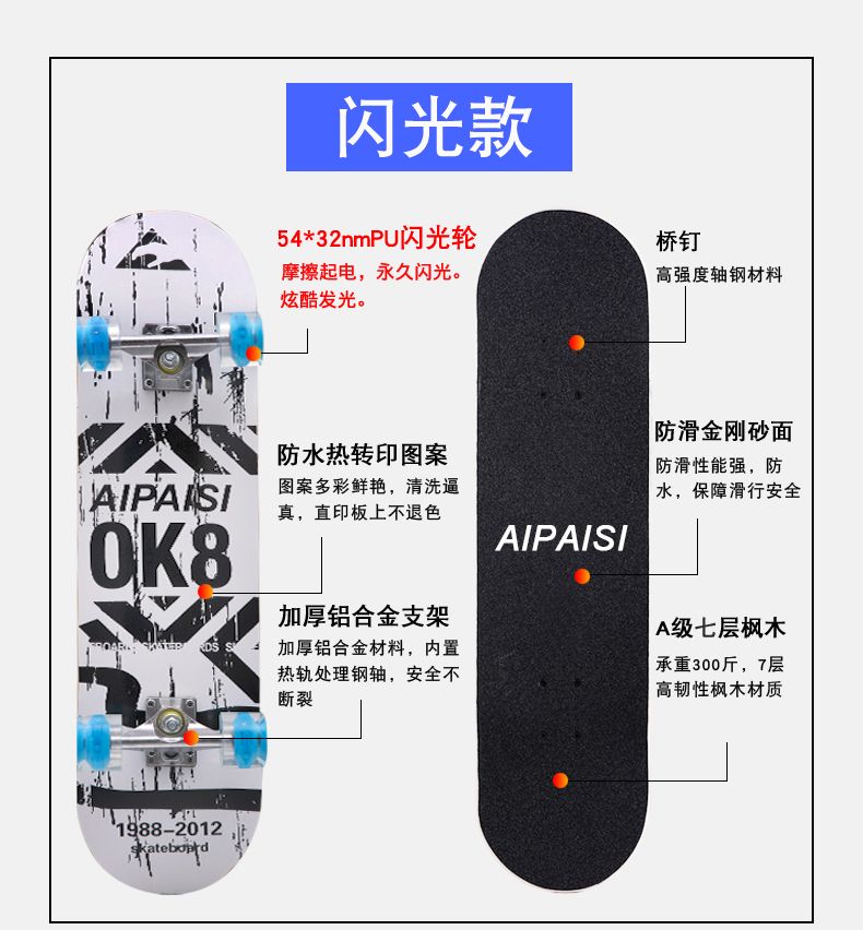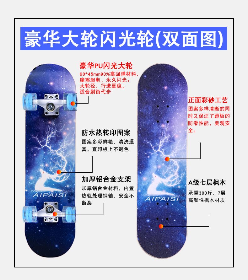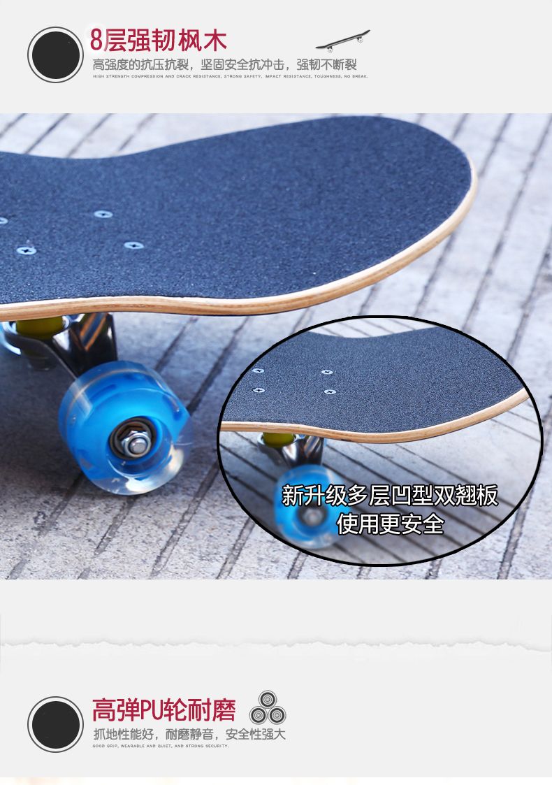 滑板成人儿童初学者四轮专业刷街板滑板车长板男女学生双翘青少年