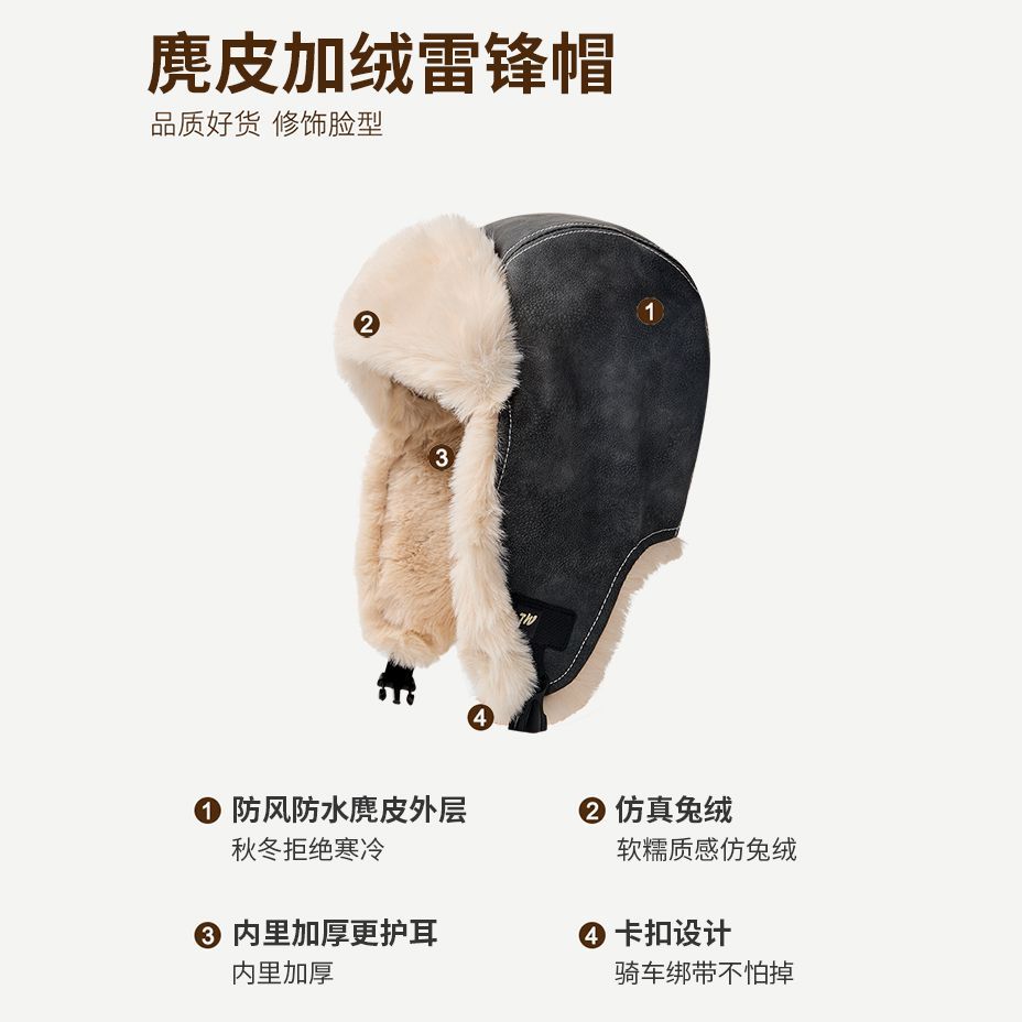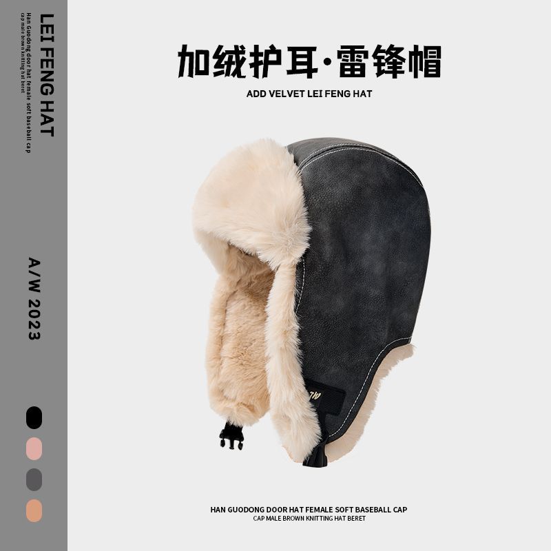 雷锋冬季男女帽子防风东北骑车护耳加绒户外飞行员加厚保暖防寒