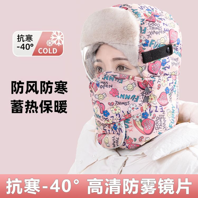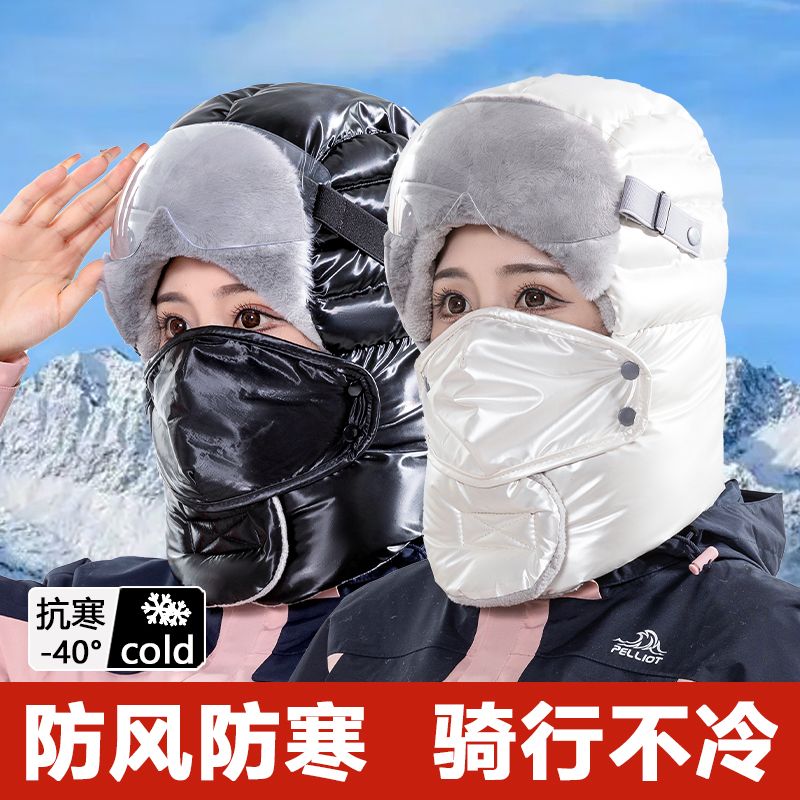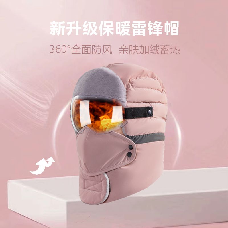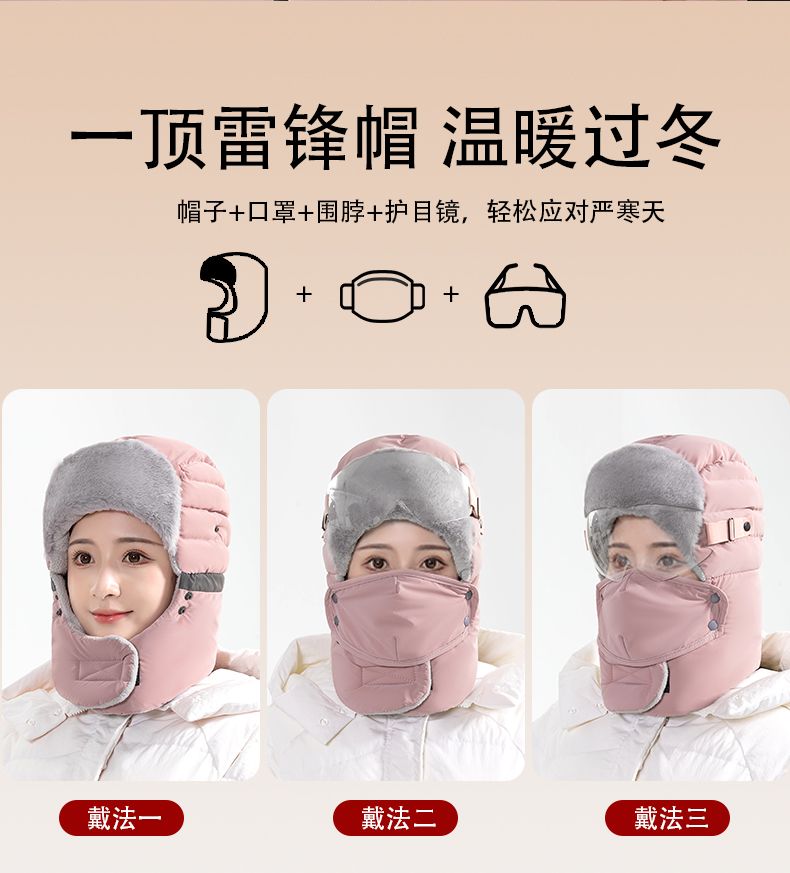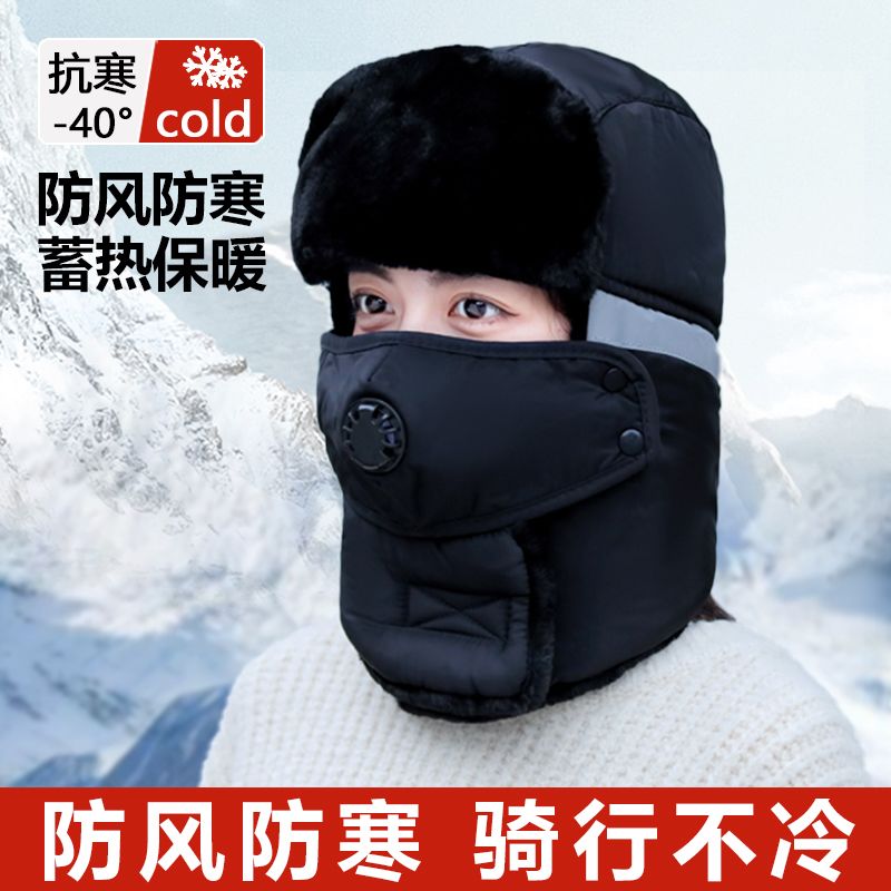 雷锋帽女冬季电动车保暖神器棉帽加绒加厚骑车防风防寒帽子男冬天