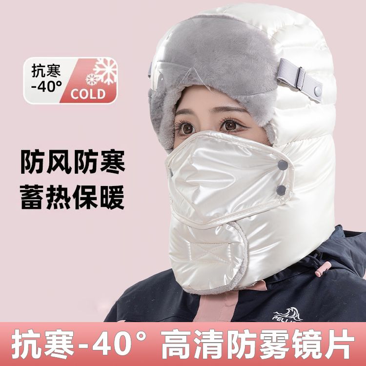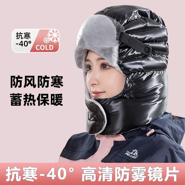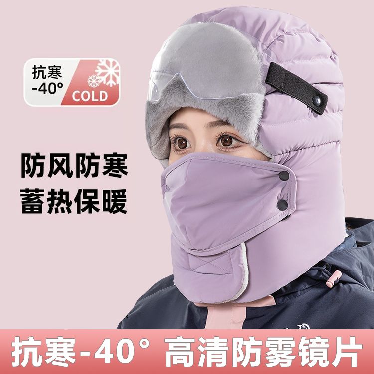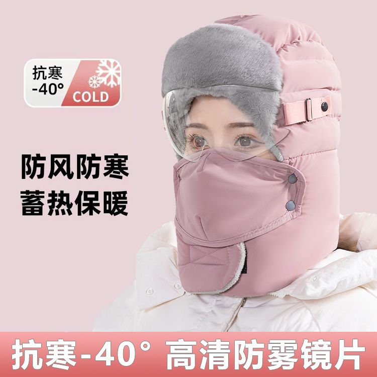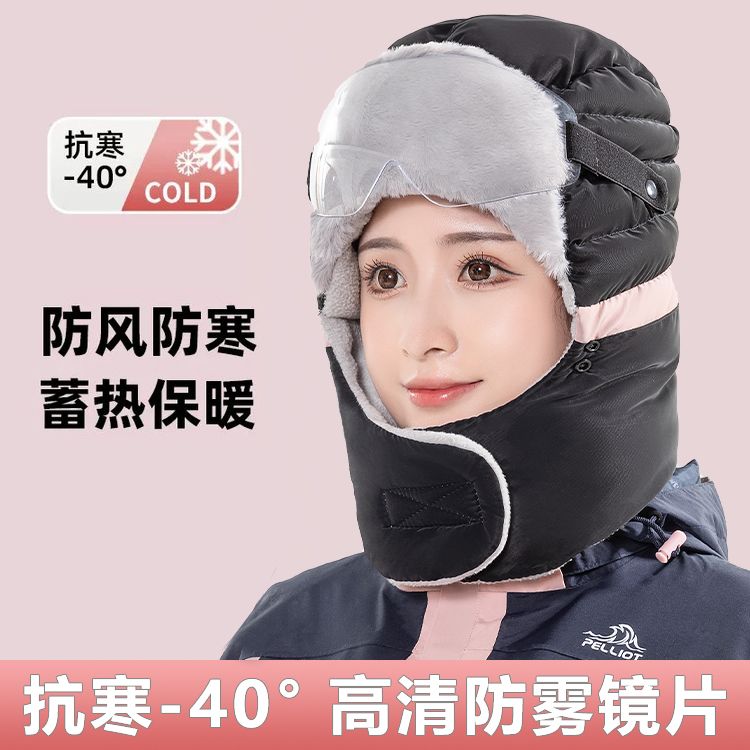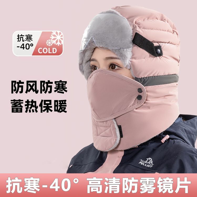 雷锋帽女冬季电动车保暖神器棉帽加绒加厚骑车防风防寒帽子男冬天
