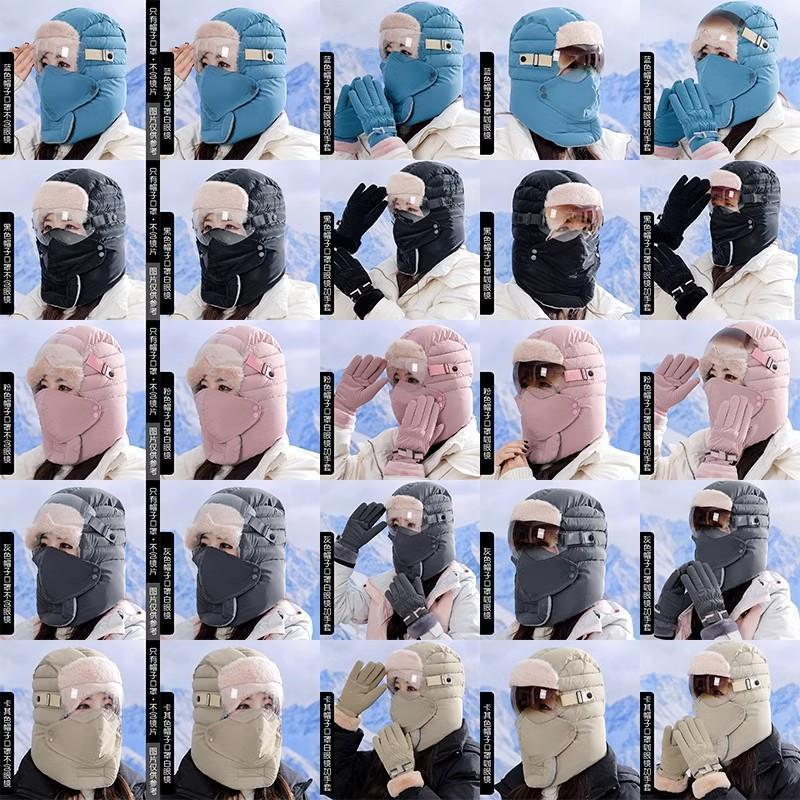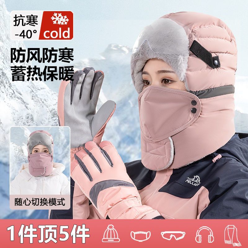 零下40东北哈尔滨加绒加厚保暖女冬帽围脖手套三件套眼镜雷锋帽男