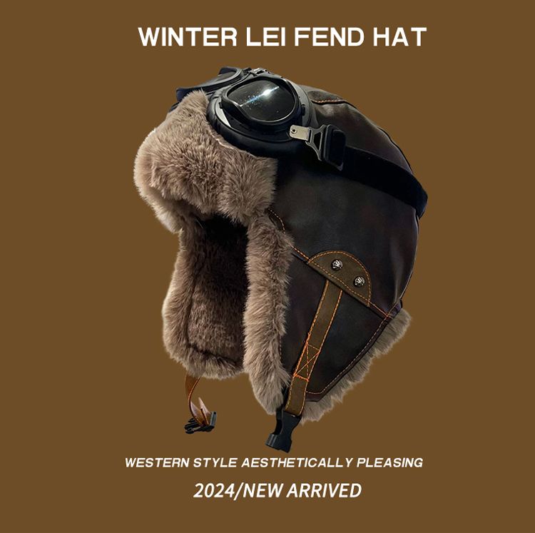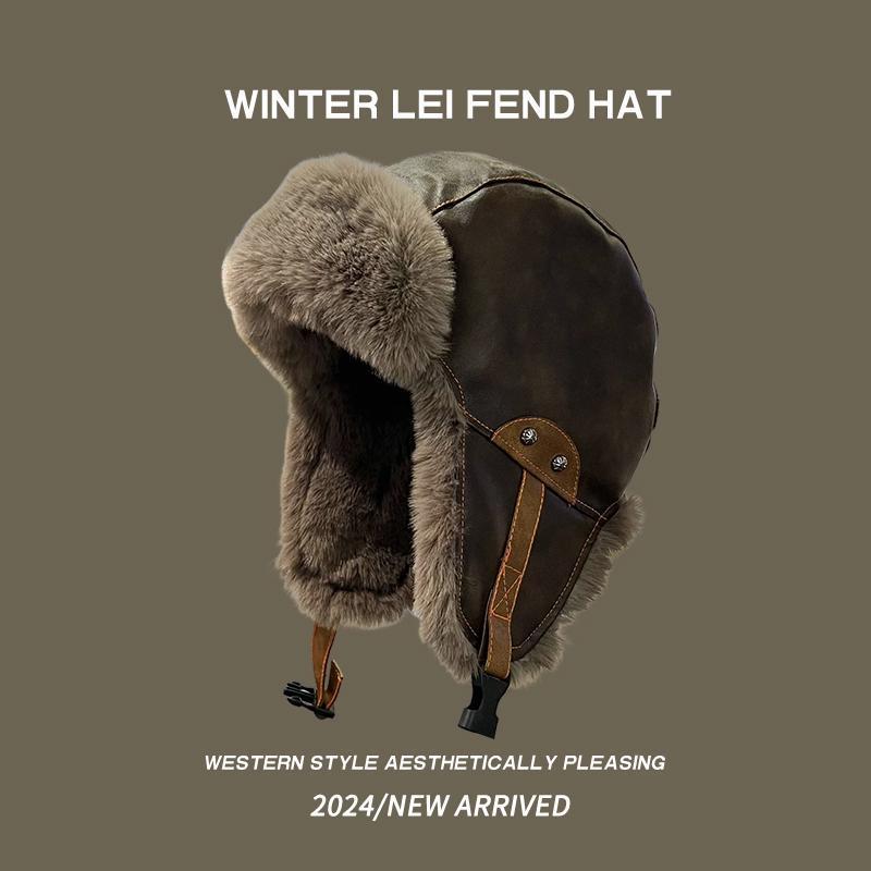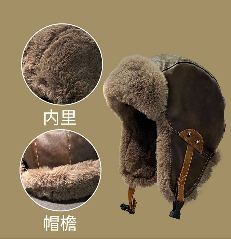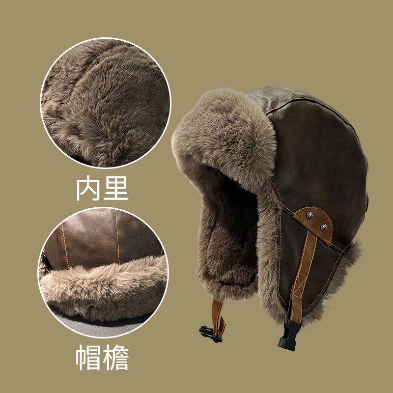 飞行员帽复古帽子冬天毛茸茸雷锋帽加厚防风护耳保暖毛绒学生潮