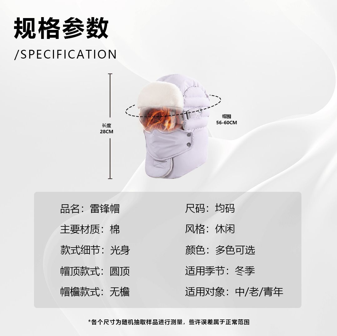 冬天东北帽子加绒加厚保暖护耳棉帽冬季电动车防风雷锋帽防寒骑车