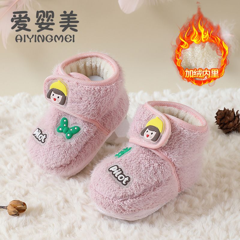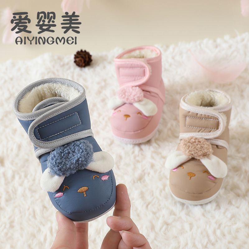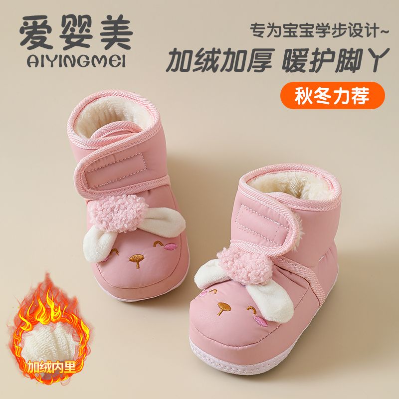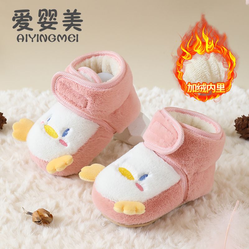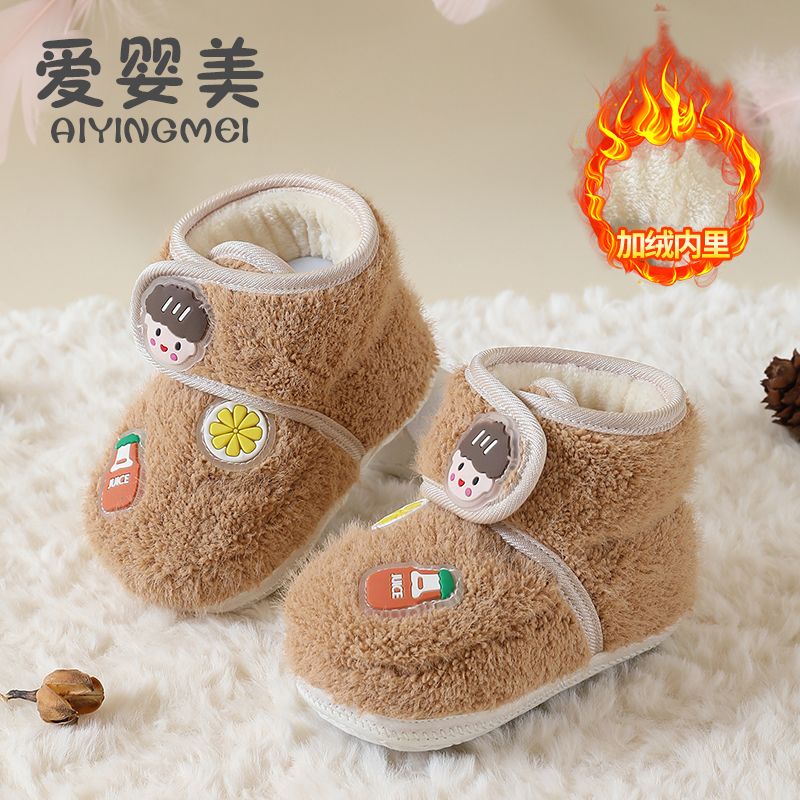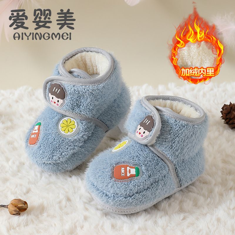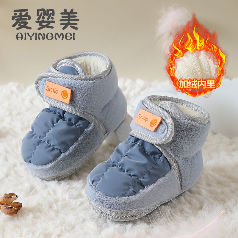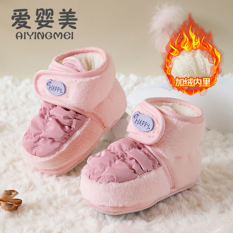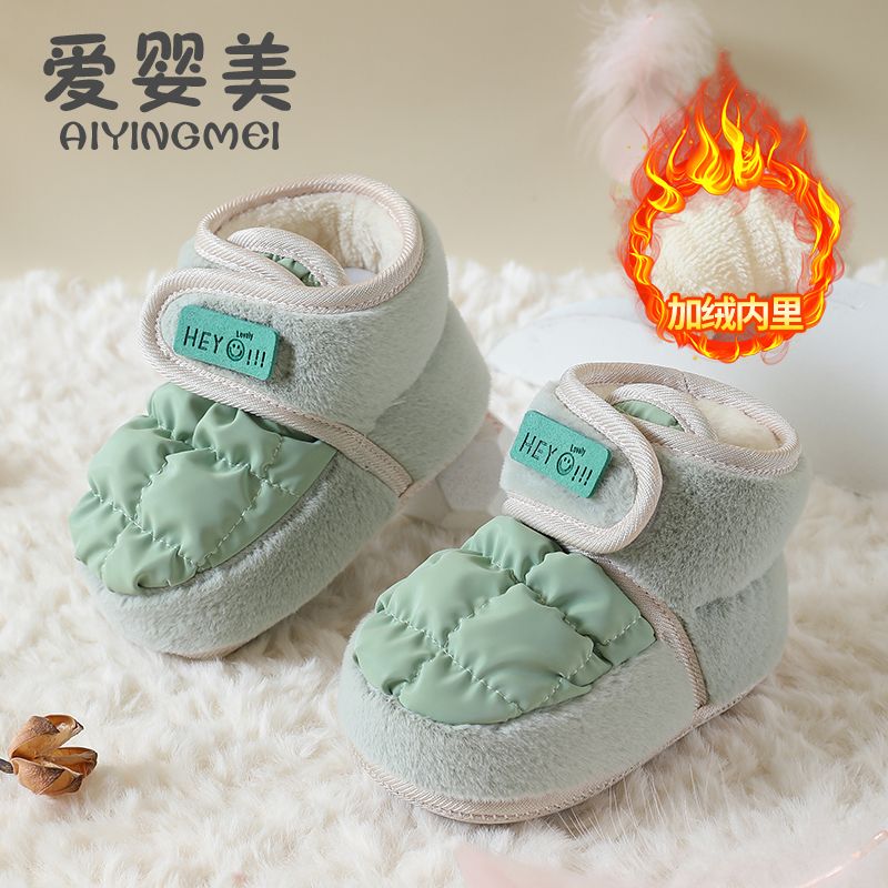 爱婴美0-1岁防掉宝宝棉鞋加绒保暖婴儿学步鞋软底防滑魔术贴冬季