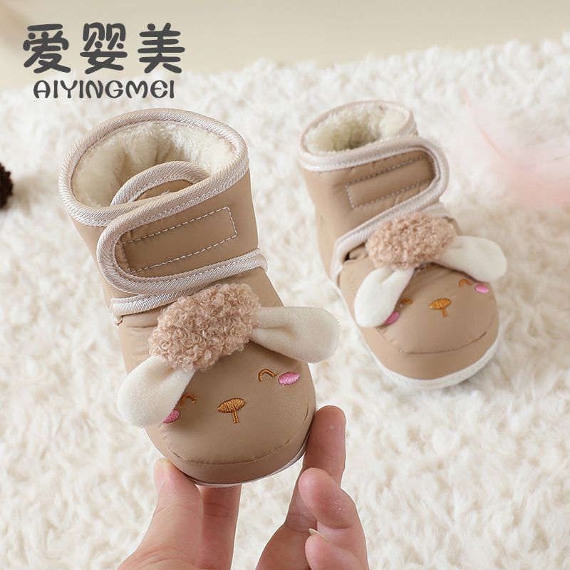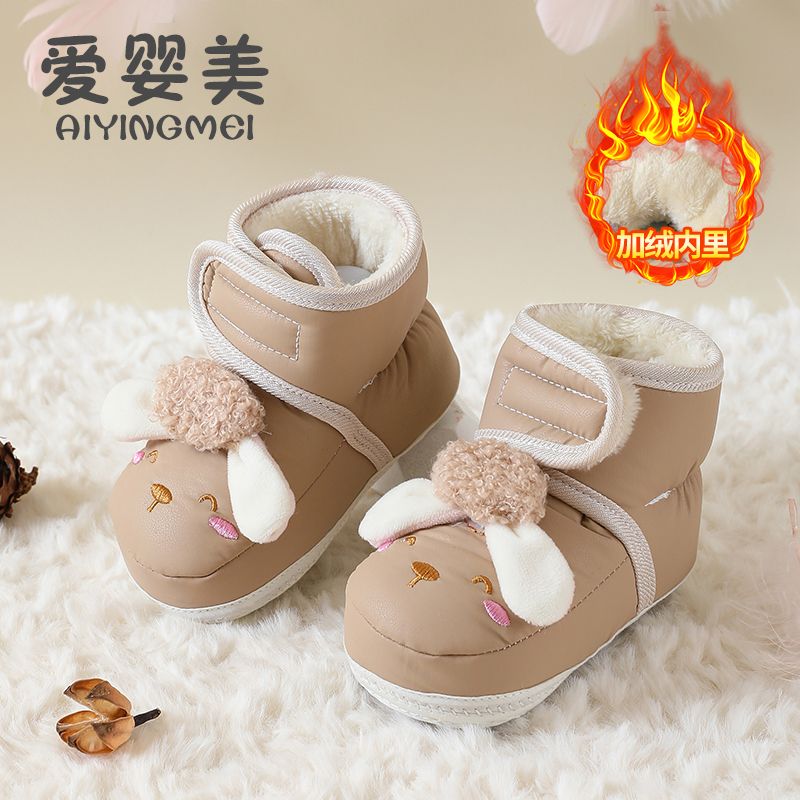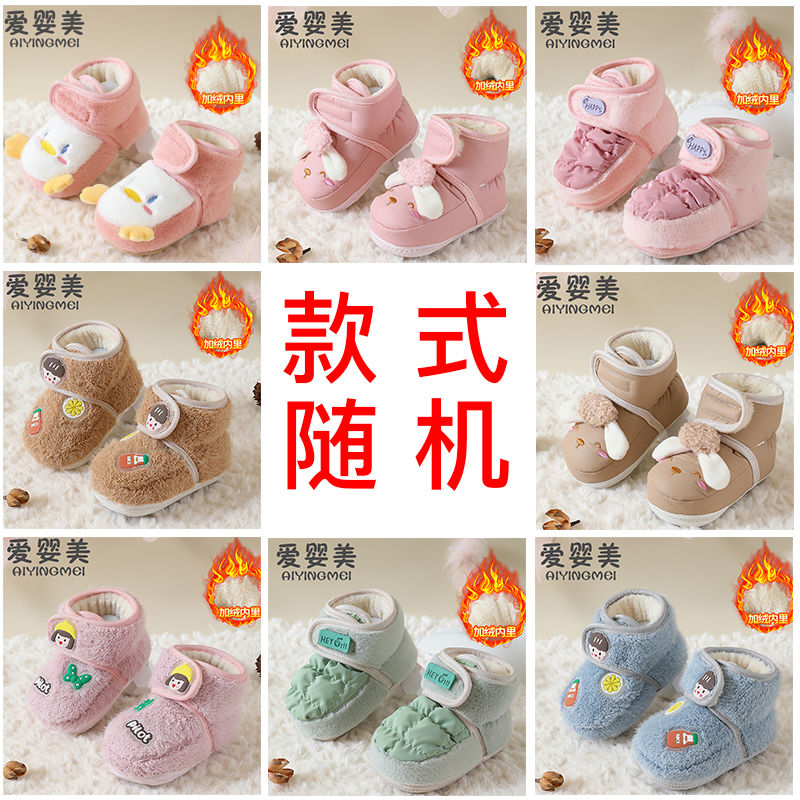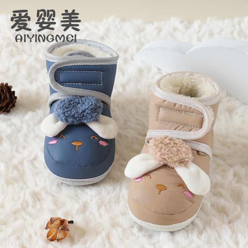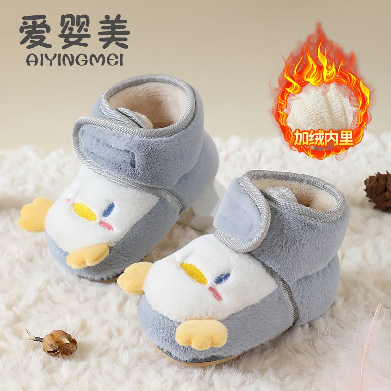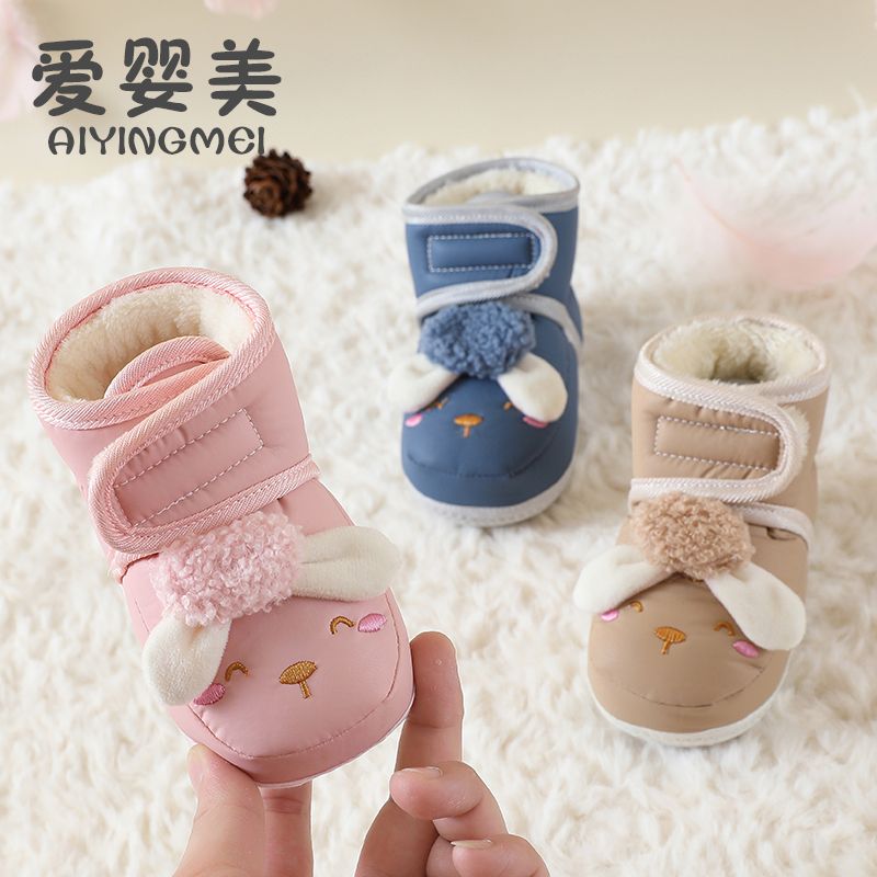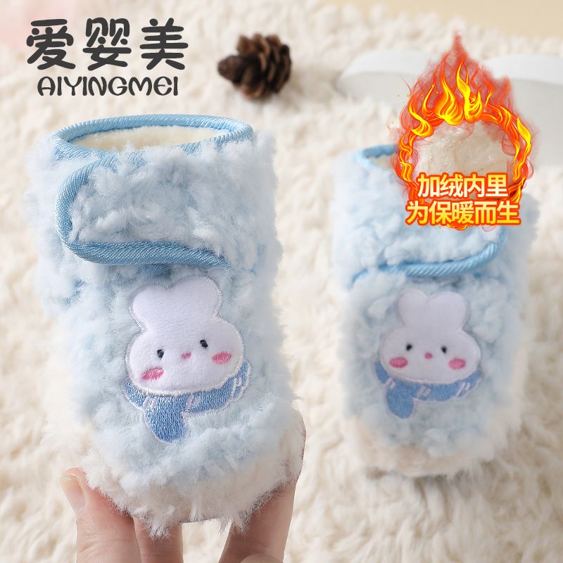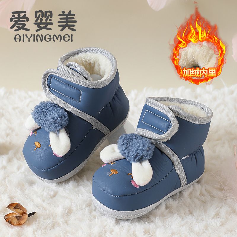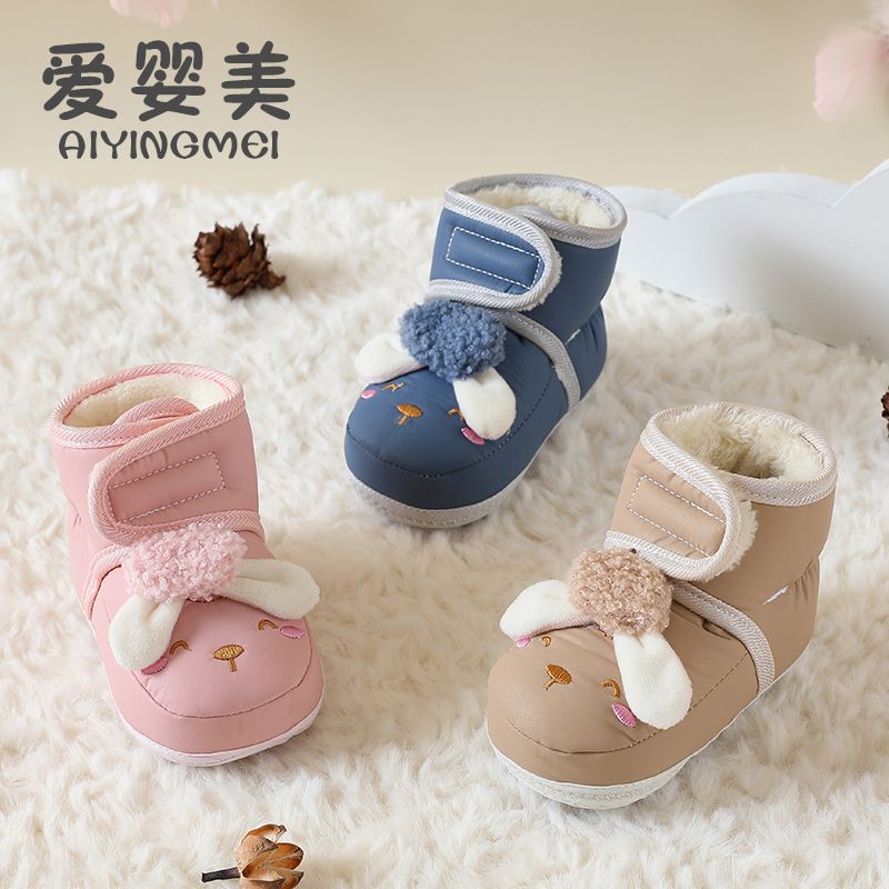 爱婴美0-1岁防掉宝宝棉鞋加绒保暖婴儿学步鞋软底防滑魔术贴冬季