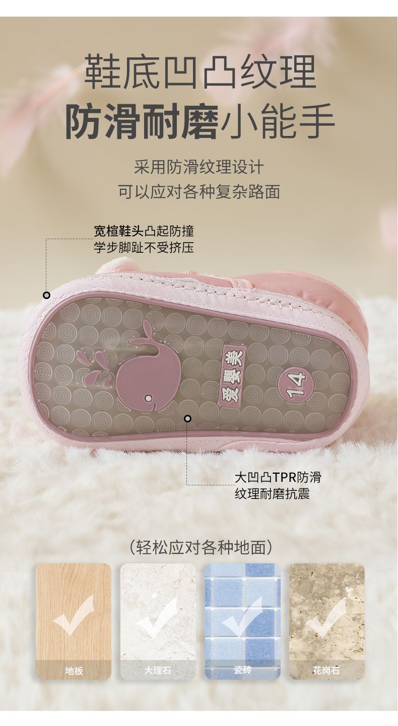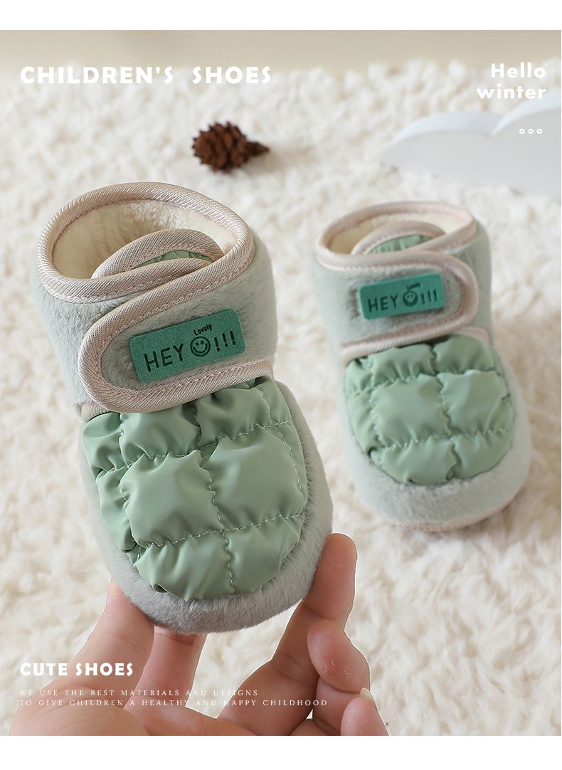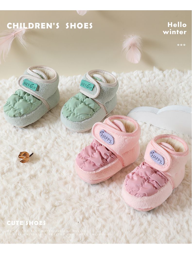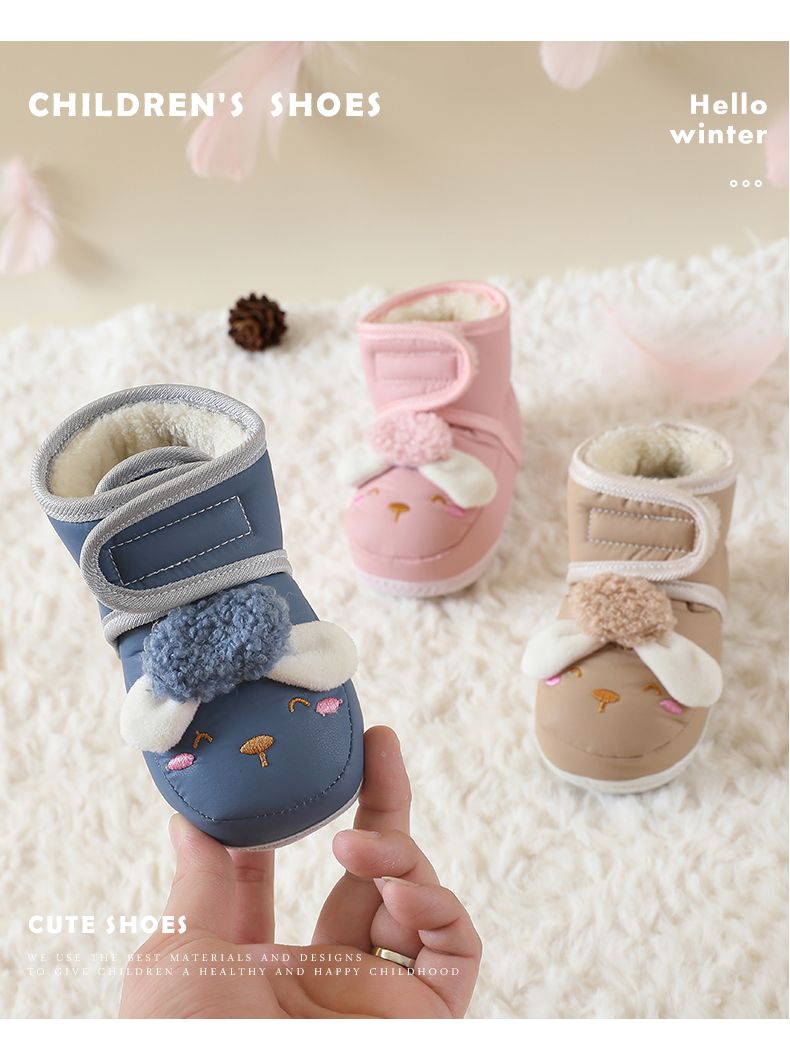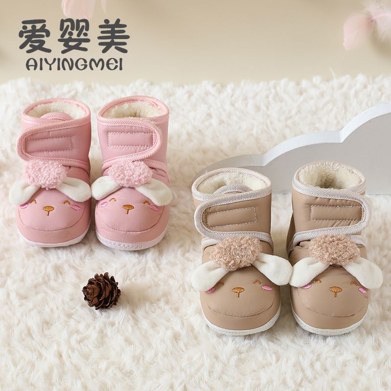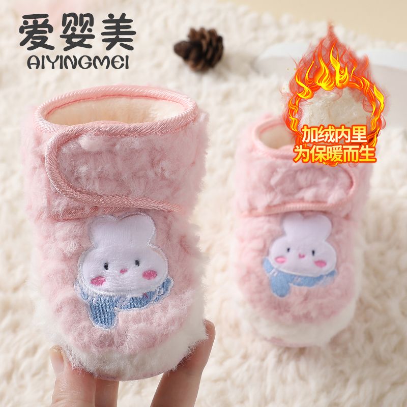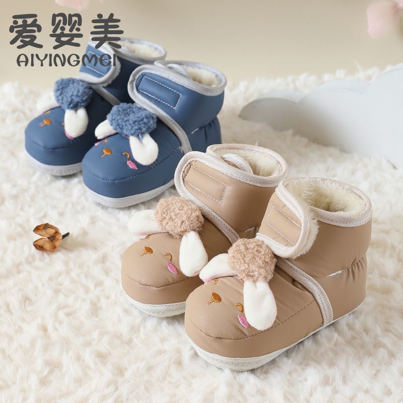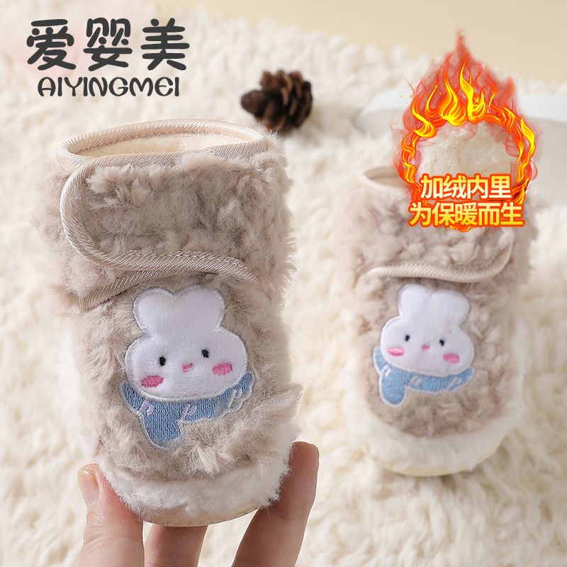爱婴美0-1岁防掉宝宝棉鞋加绒保暖婴儿学步鞋软底防滑魔术贴冬季