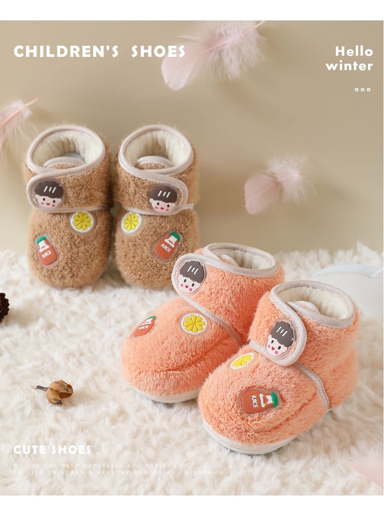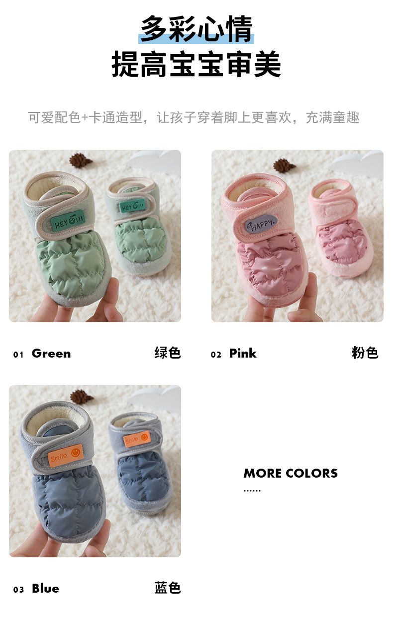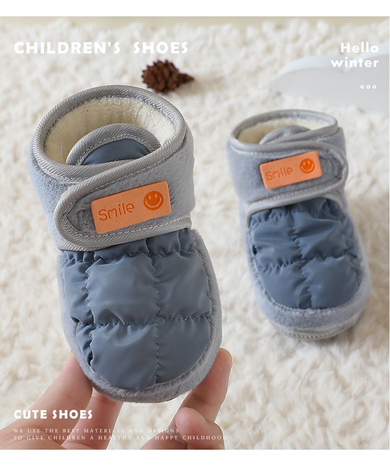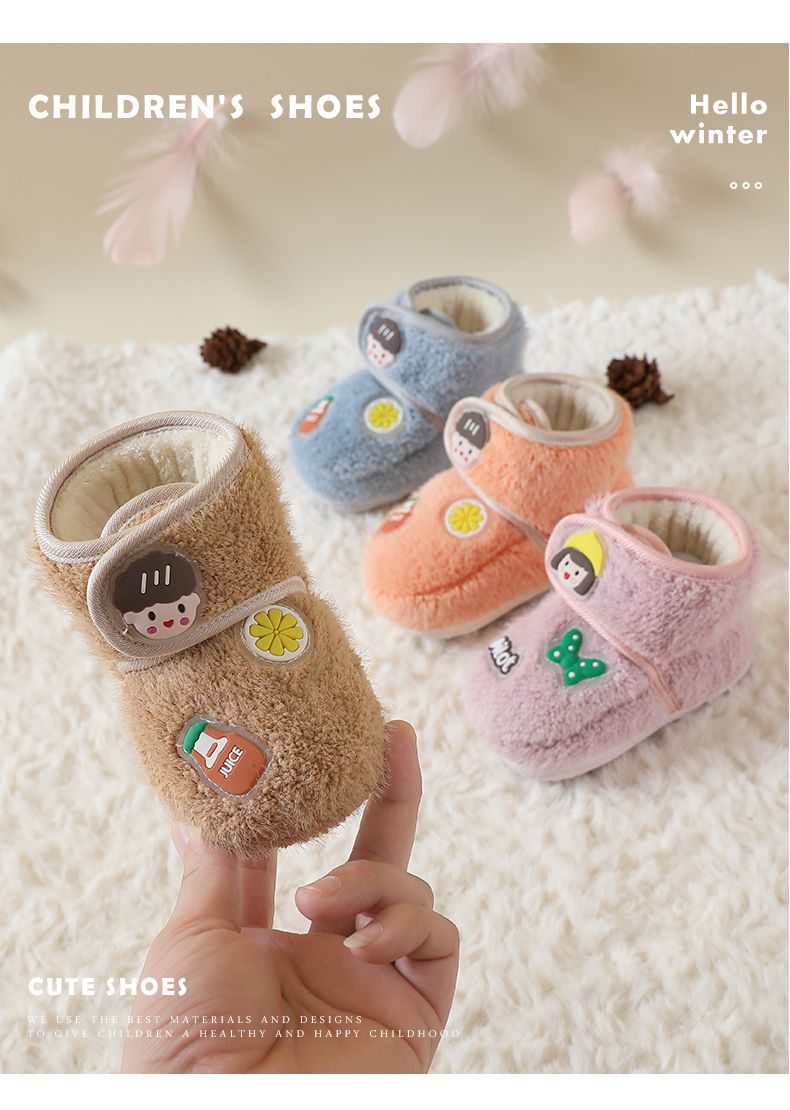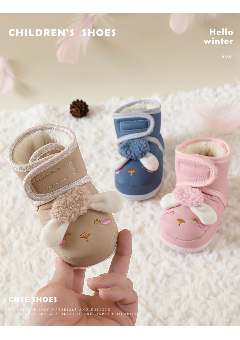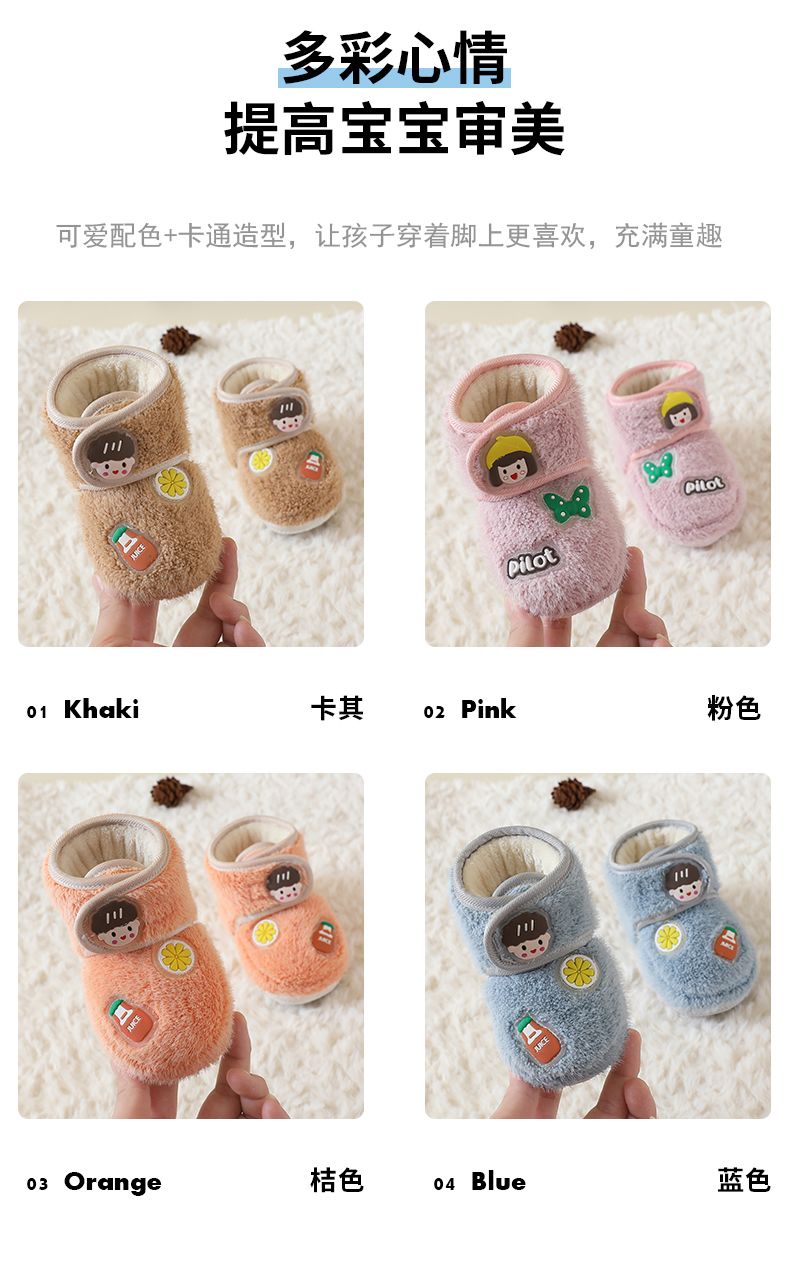 爱婴美0-1岁防掉宝宝棉鞋加绒保暖婴儿学步鞋软底防滑魔术贴冬季