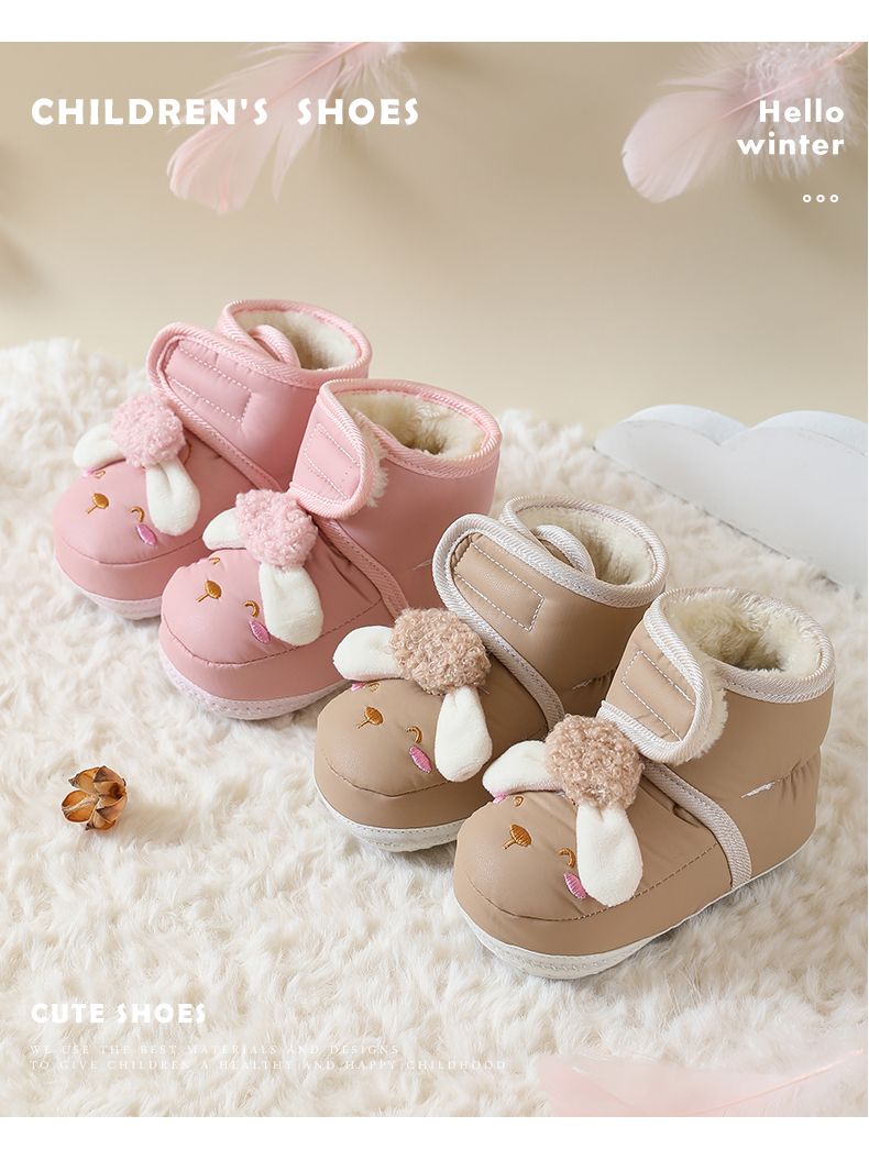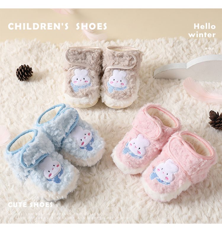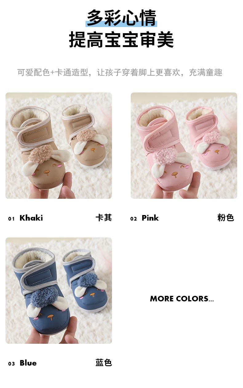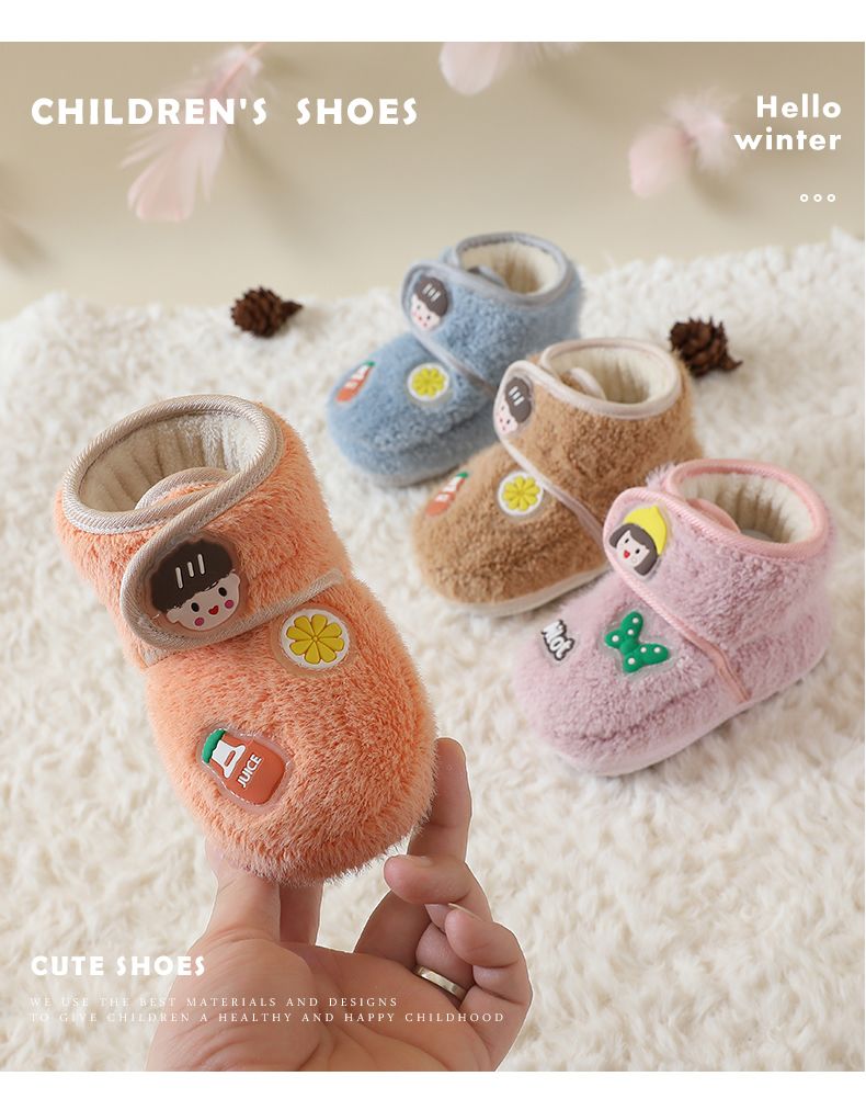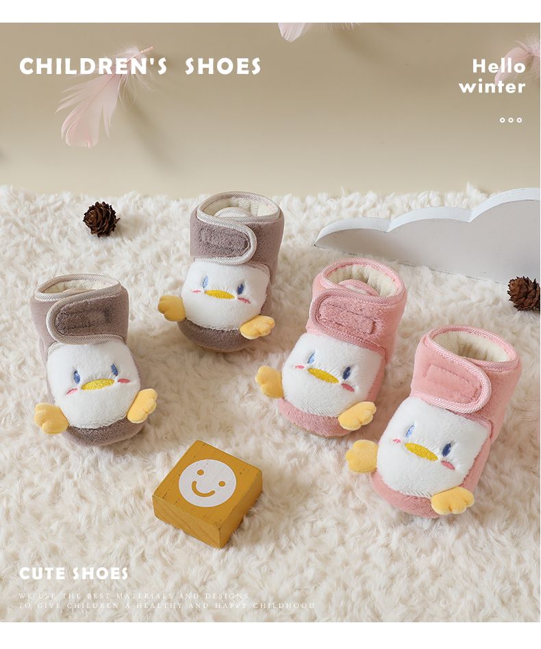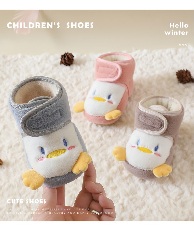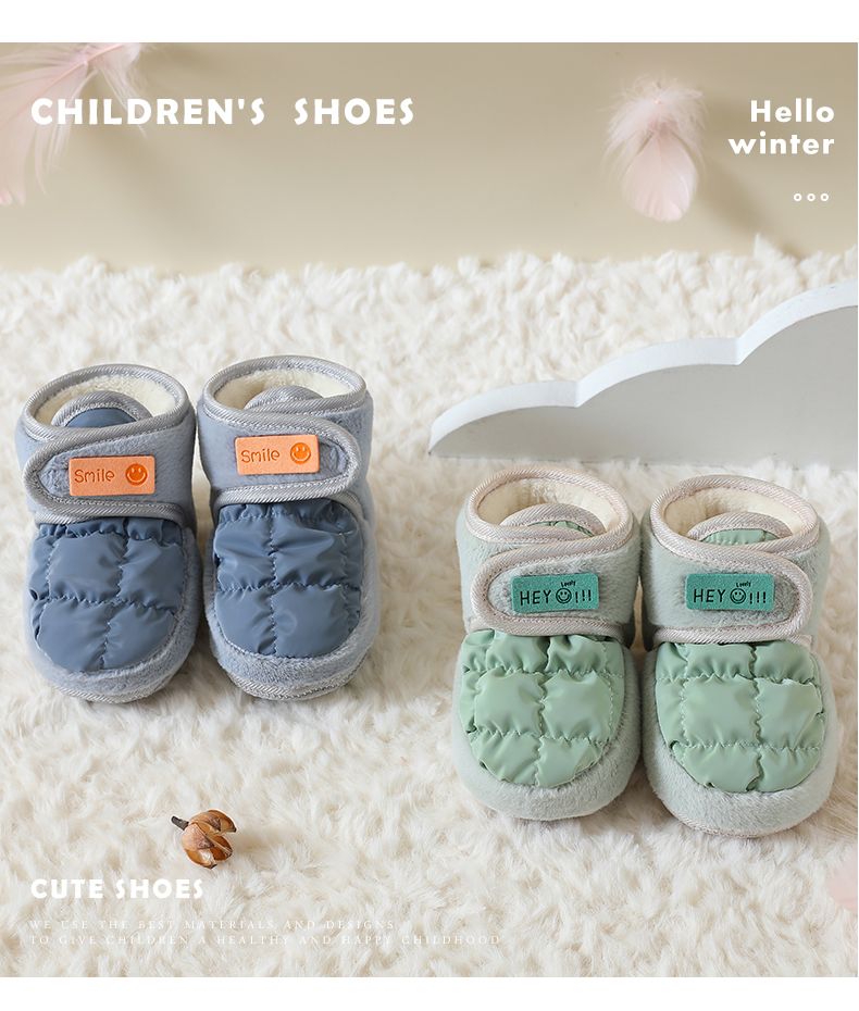 爱婴美0-1岁防掉宝宝棉鞋加绒保暖婴儿学步鞋软底防滑魔术贴冬季
