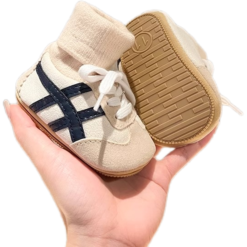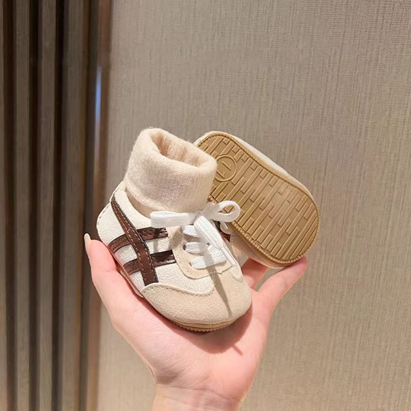 秋冬新生婴儿0-1岁男女宝宝保暖加厚鞋袜一体不掉跟加绒护脚棉鞋