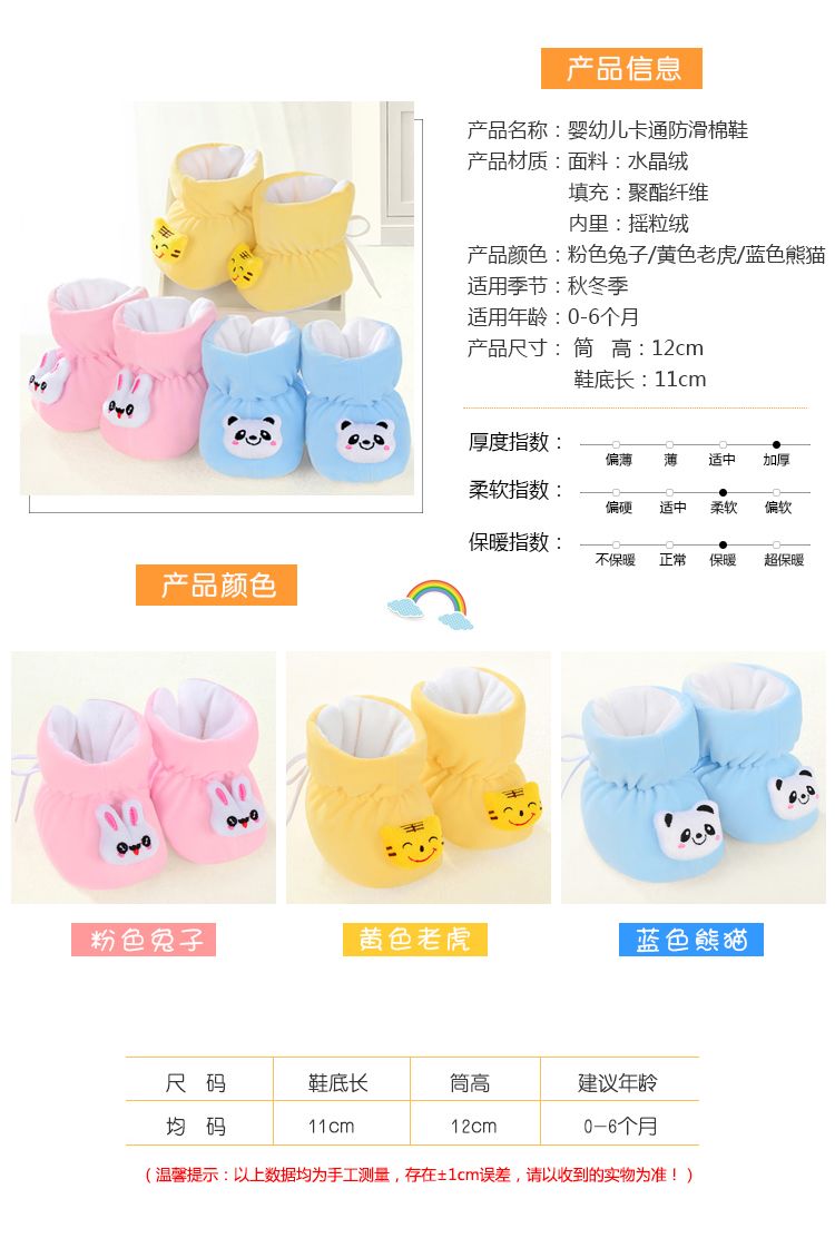 | free size (sole length 11cm/0-6 months)(均码(鞋底长11厘米/0-6个月)) | USD $1.98 | 999999 piece available |