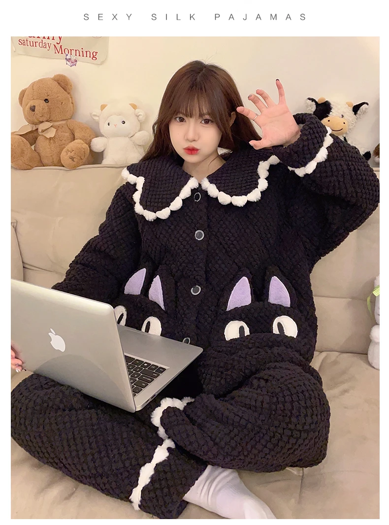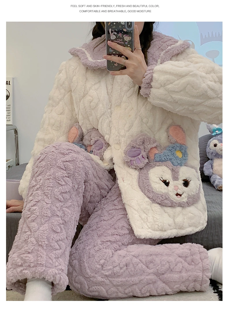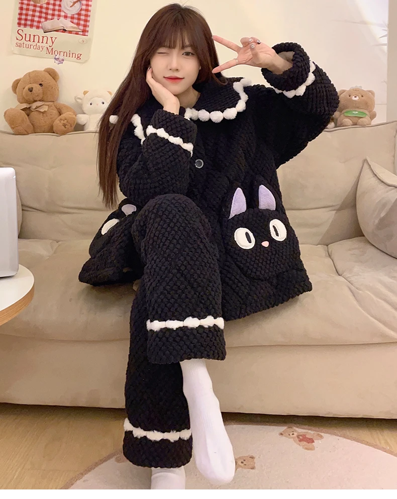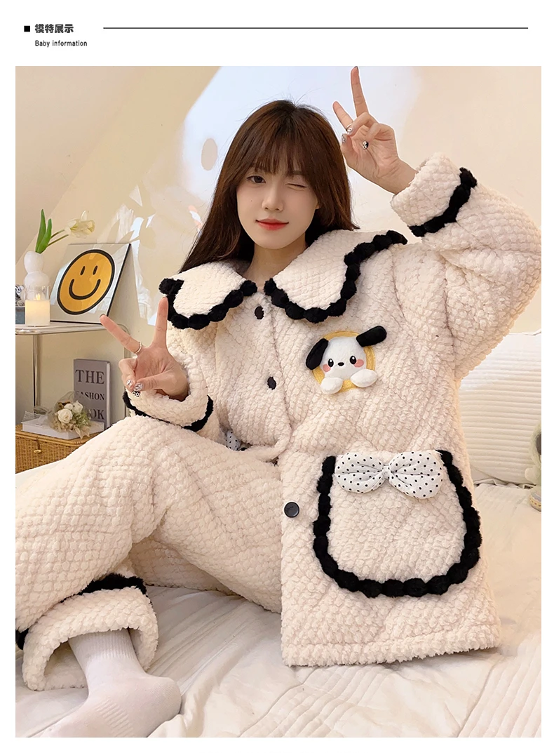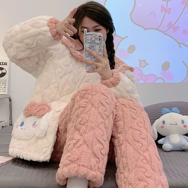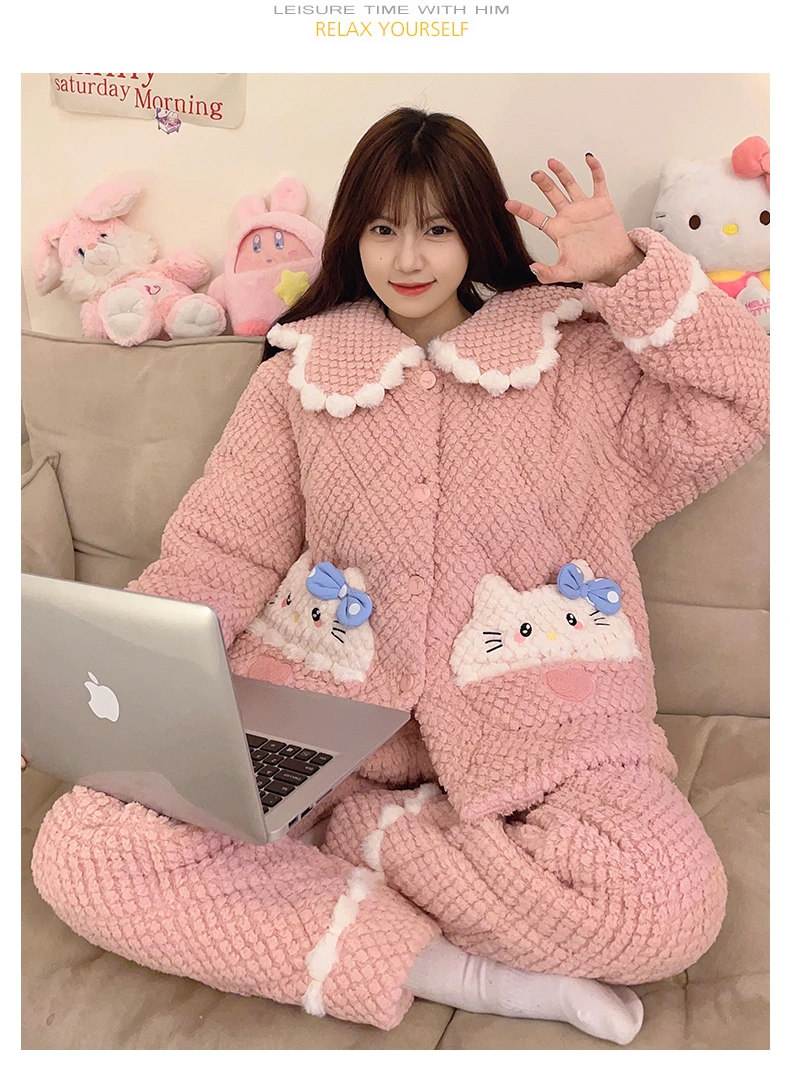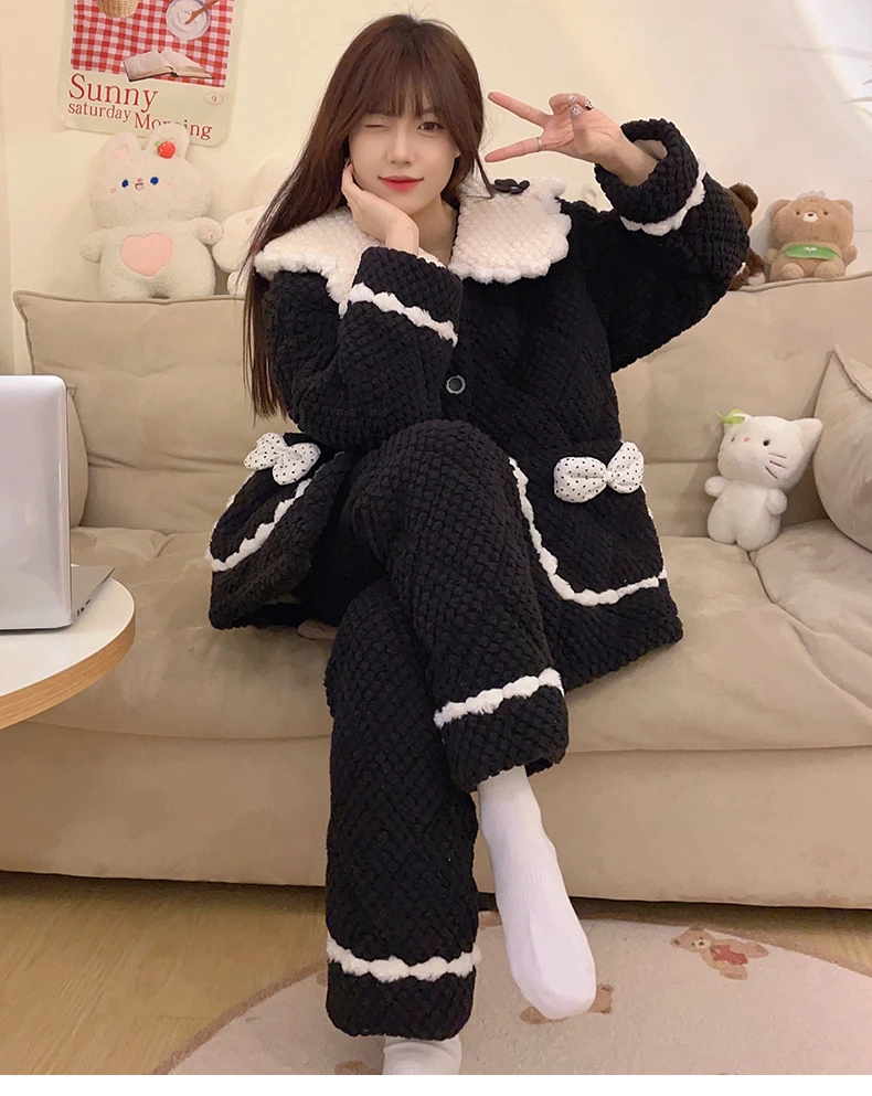 睡衣女秋冬款加厚三层夹棉珊瑚绒冬季长袖套装新款保暖家居服冬天
