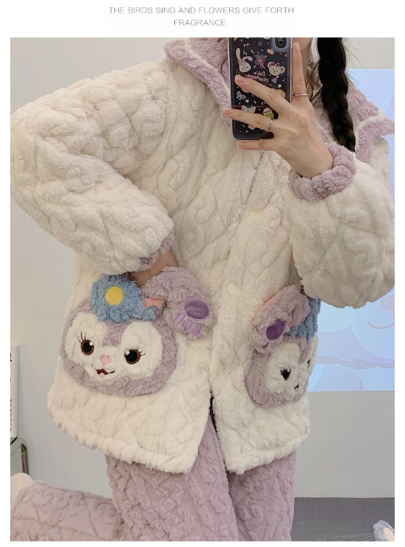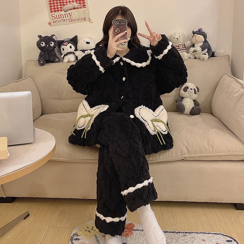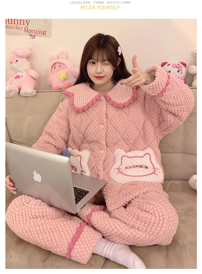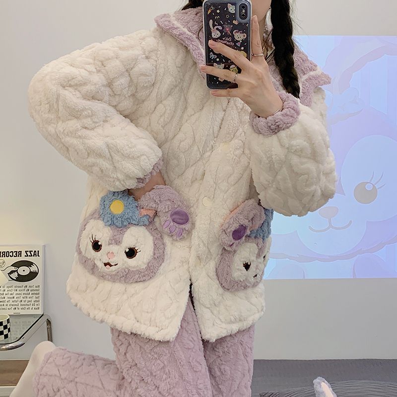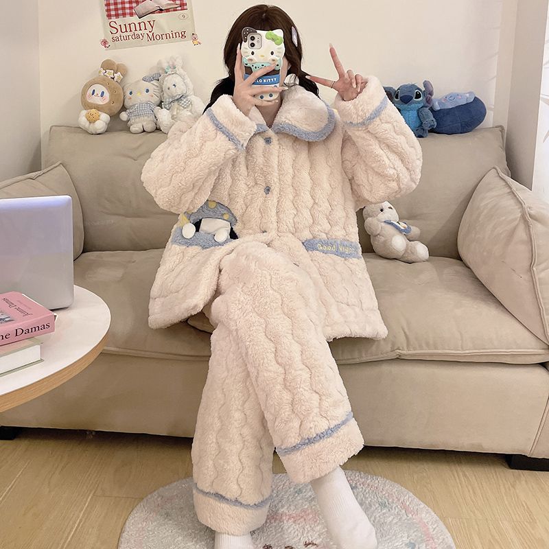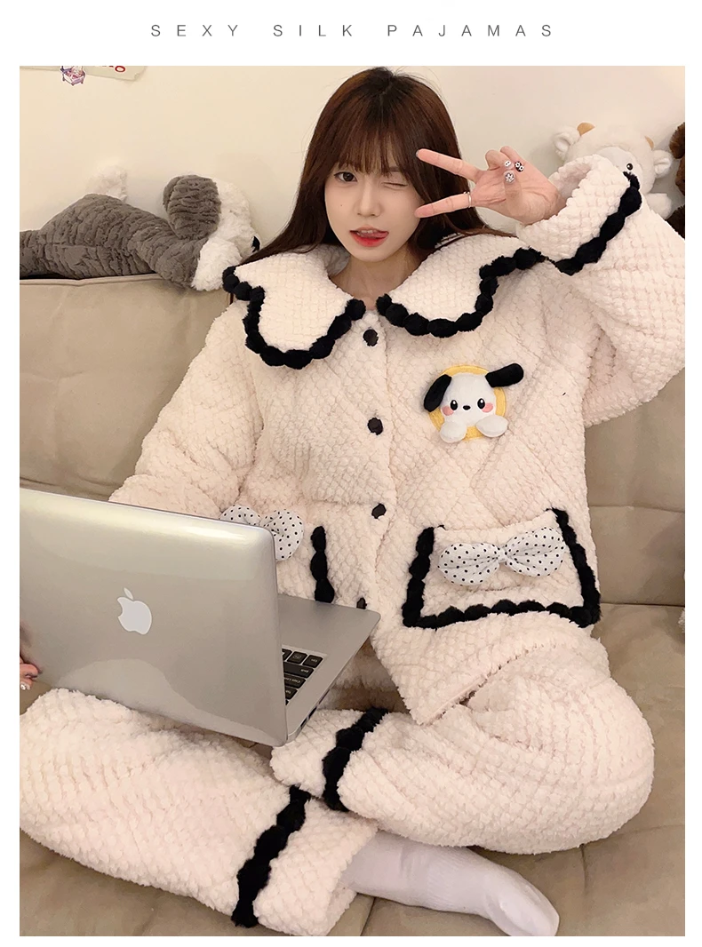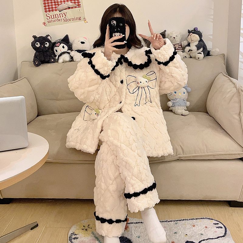 睡衣女秋冬款加厚三层夹棉珊瑚绒冬季长袖套装新款保暖家居服冬天